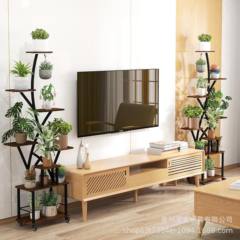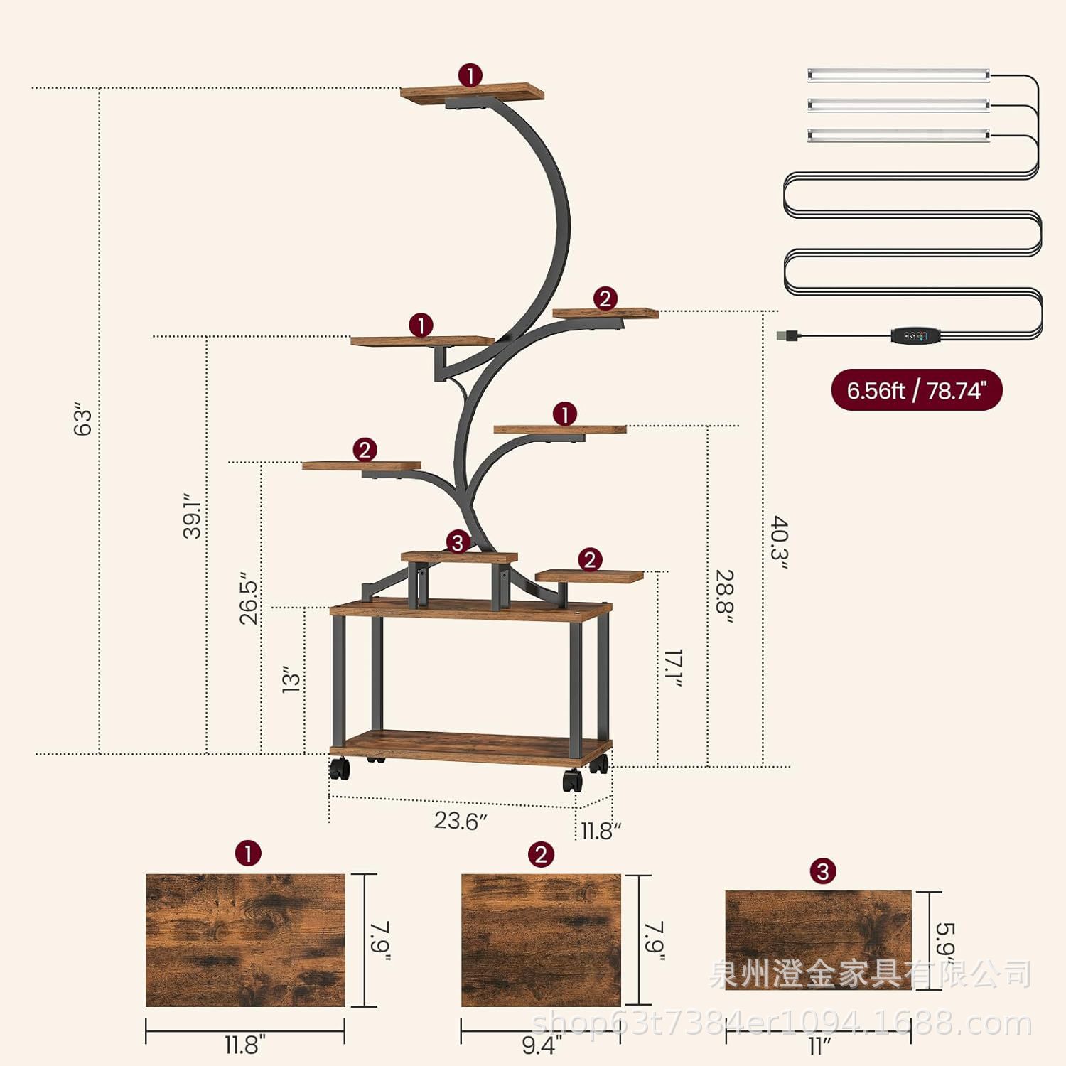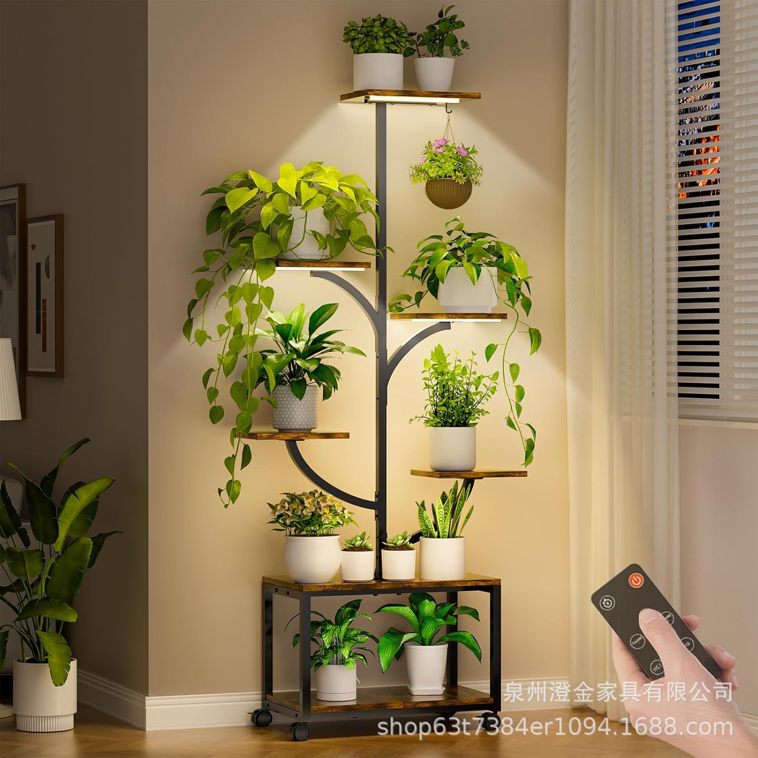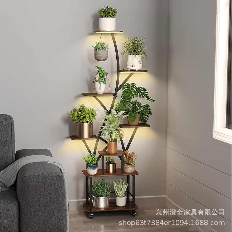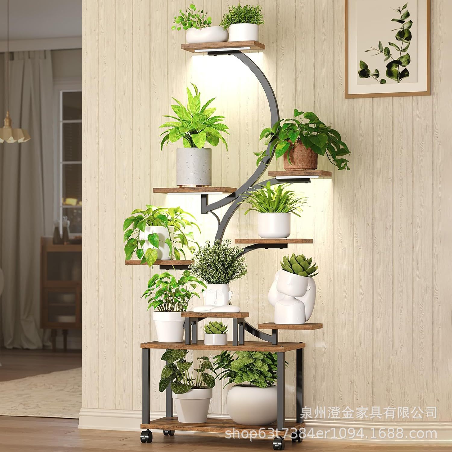 客厅带灯花架生长灯植物支架多层花架室内外阳台带生长灯植物支架