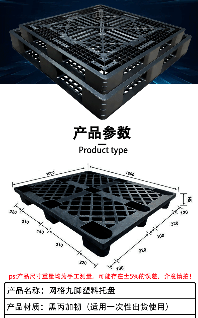 塑料卡板黑色一次性出货海运不回收货柜托盘集装箱黑丙加韧叉车板