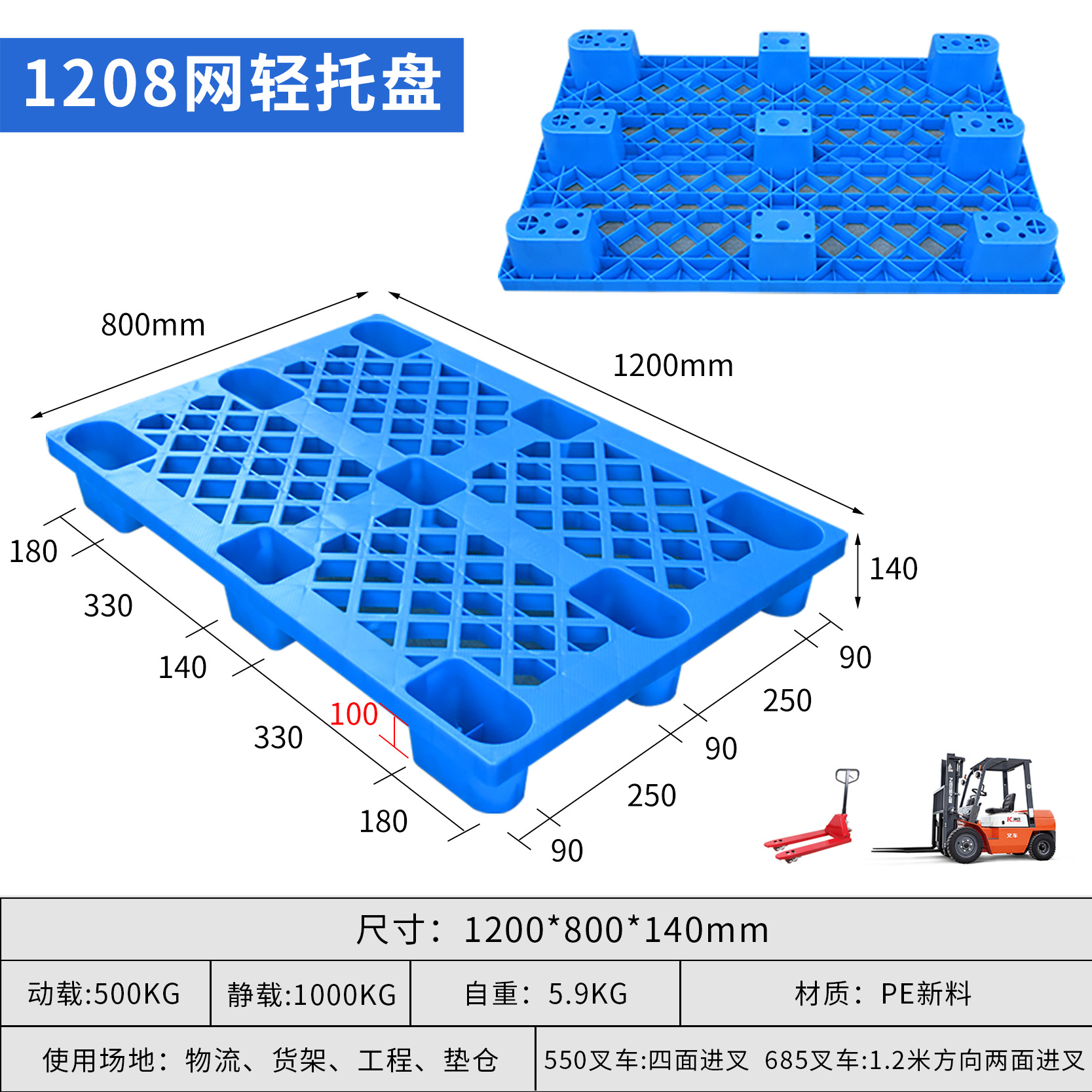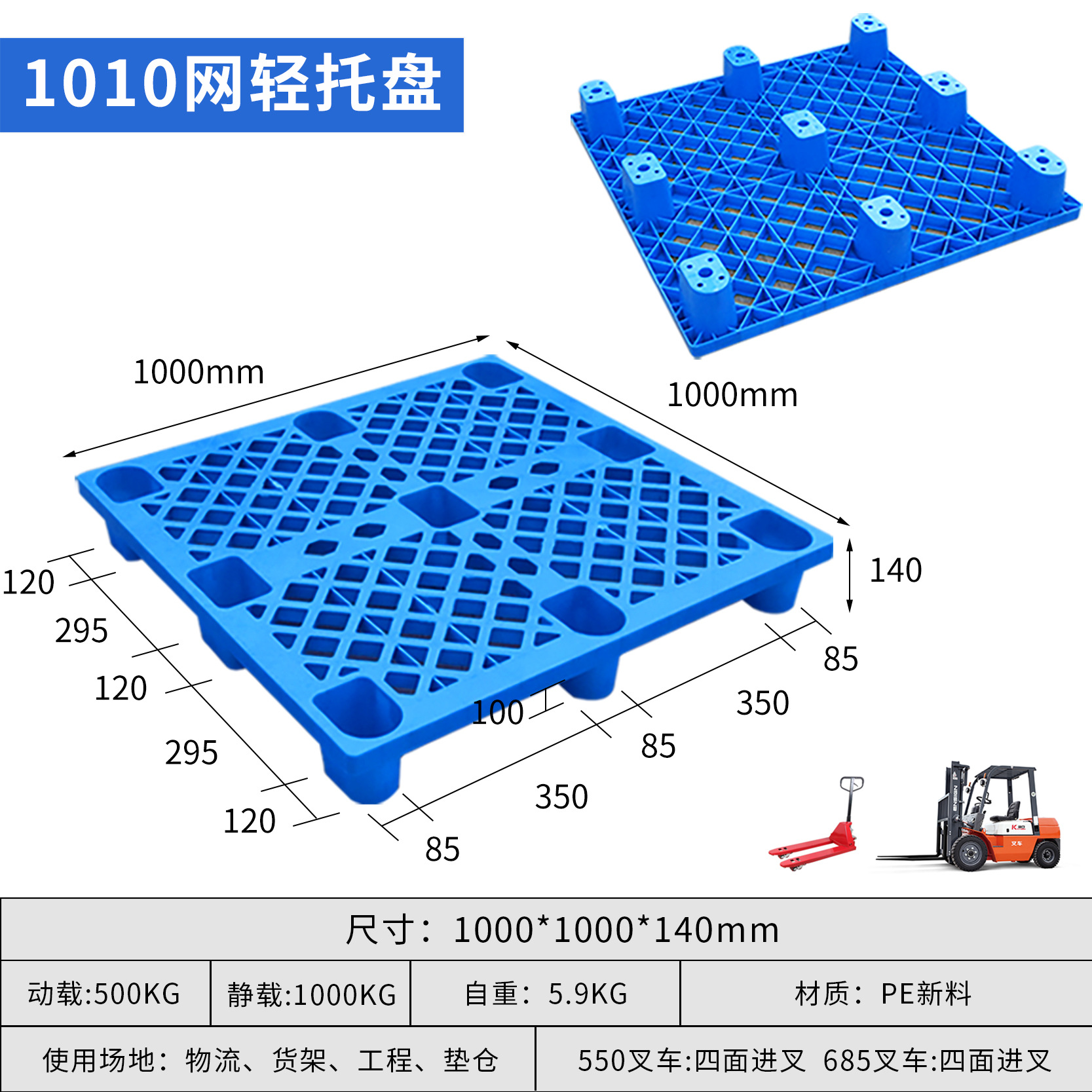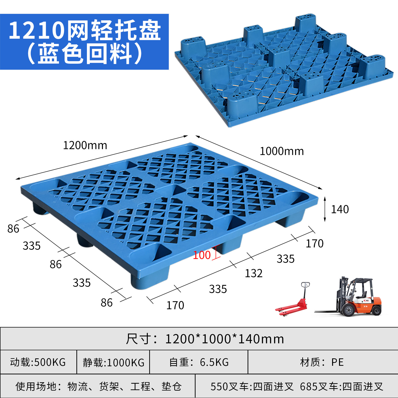 富立卡1210网格九脚轻型塑料托盘仓库防潮垫板物流叉车用塑胶卡板