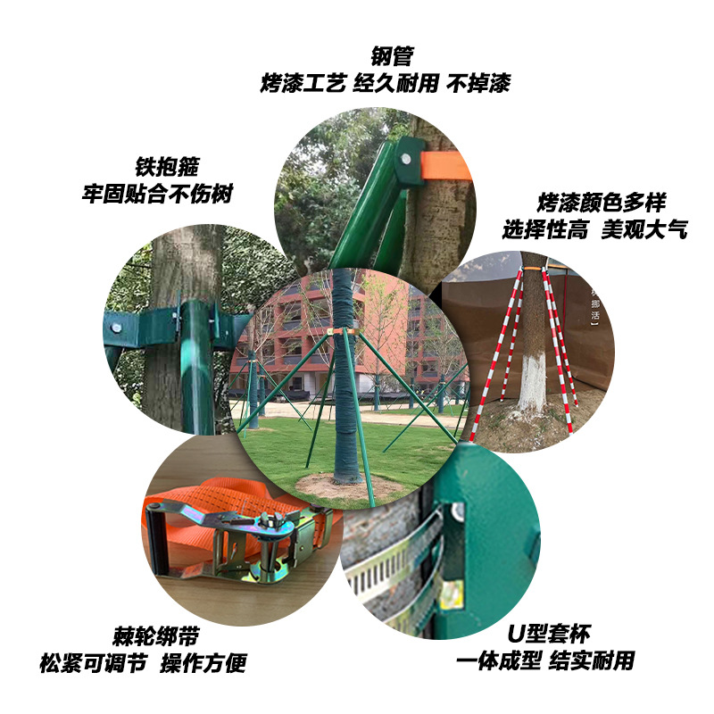 树木支撑架钢管固定器大树支撑杆规格多防风金属树支撑支架套园艺