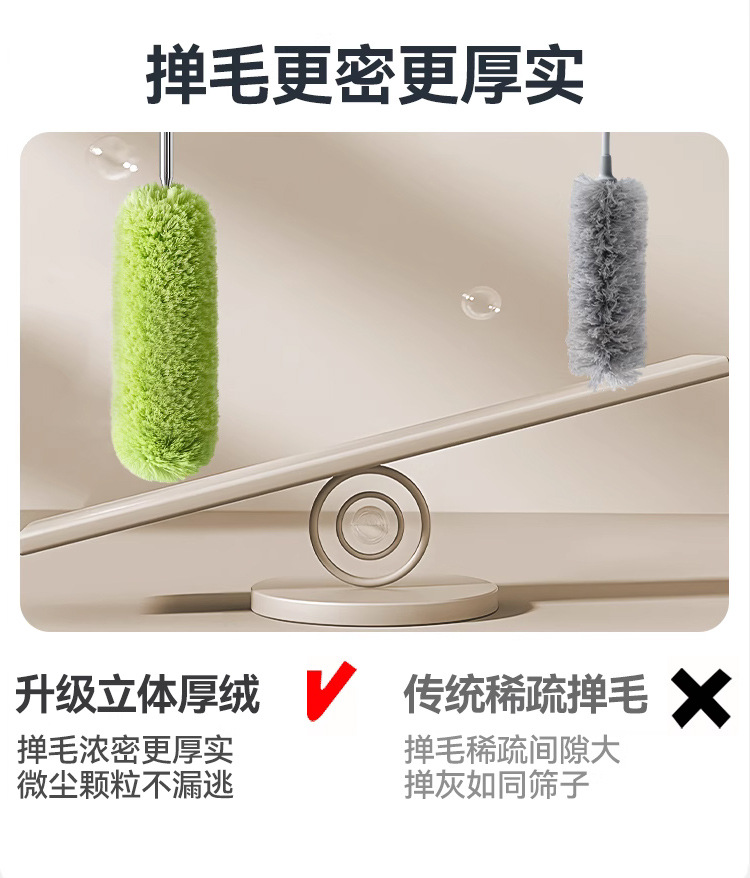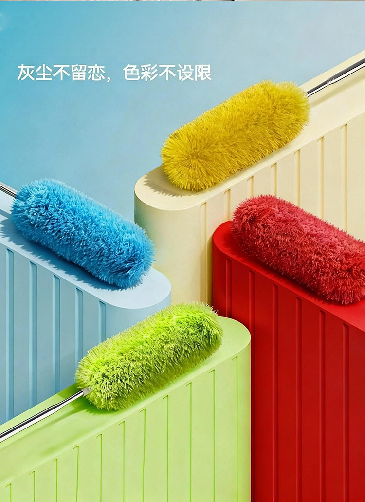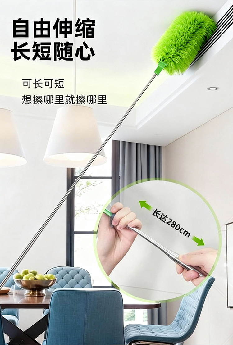 2.8米静电除尘掸加长彩色杆鸡毛掸子弯曲家用清扫天花板蜘蛛