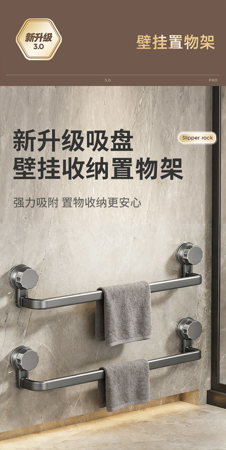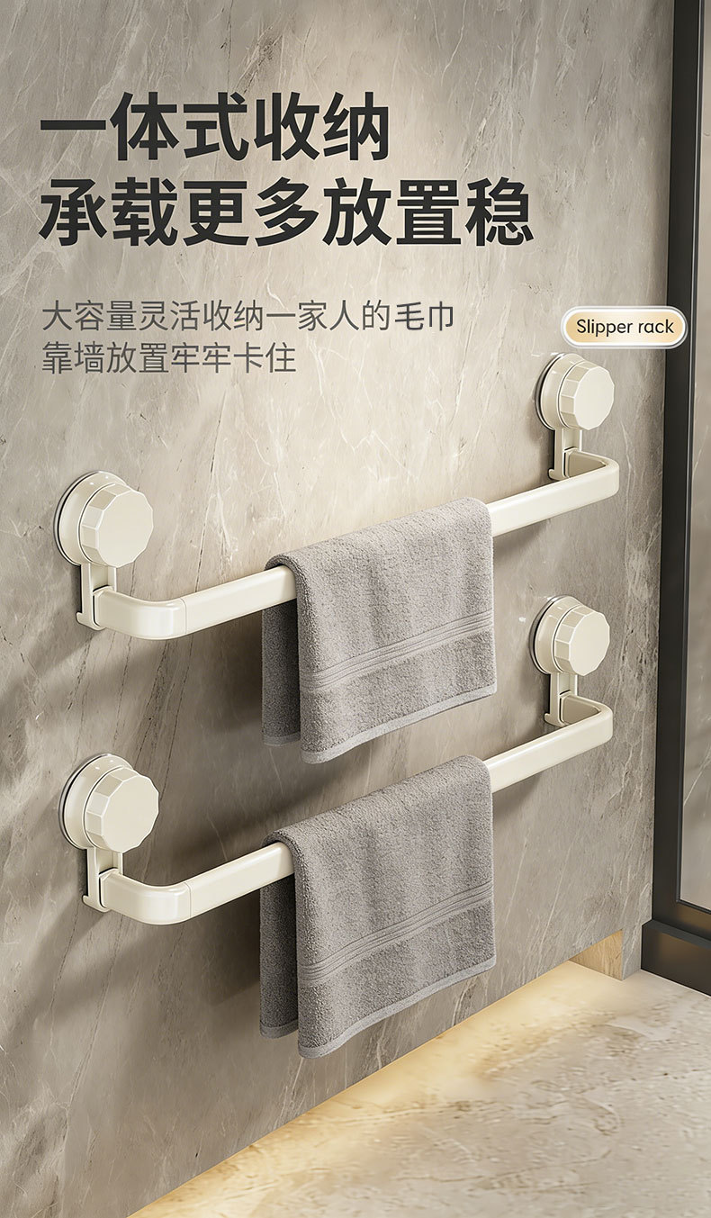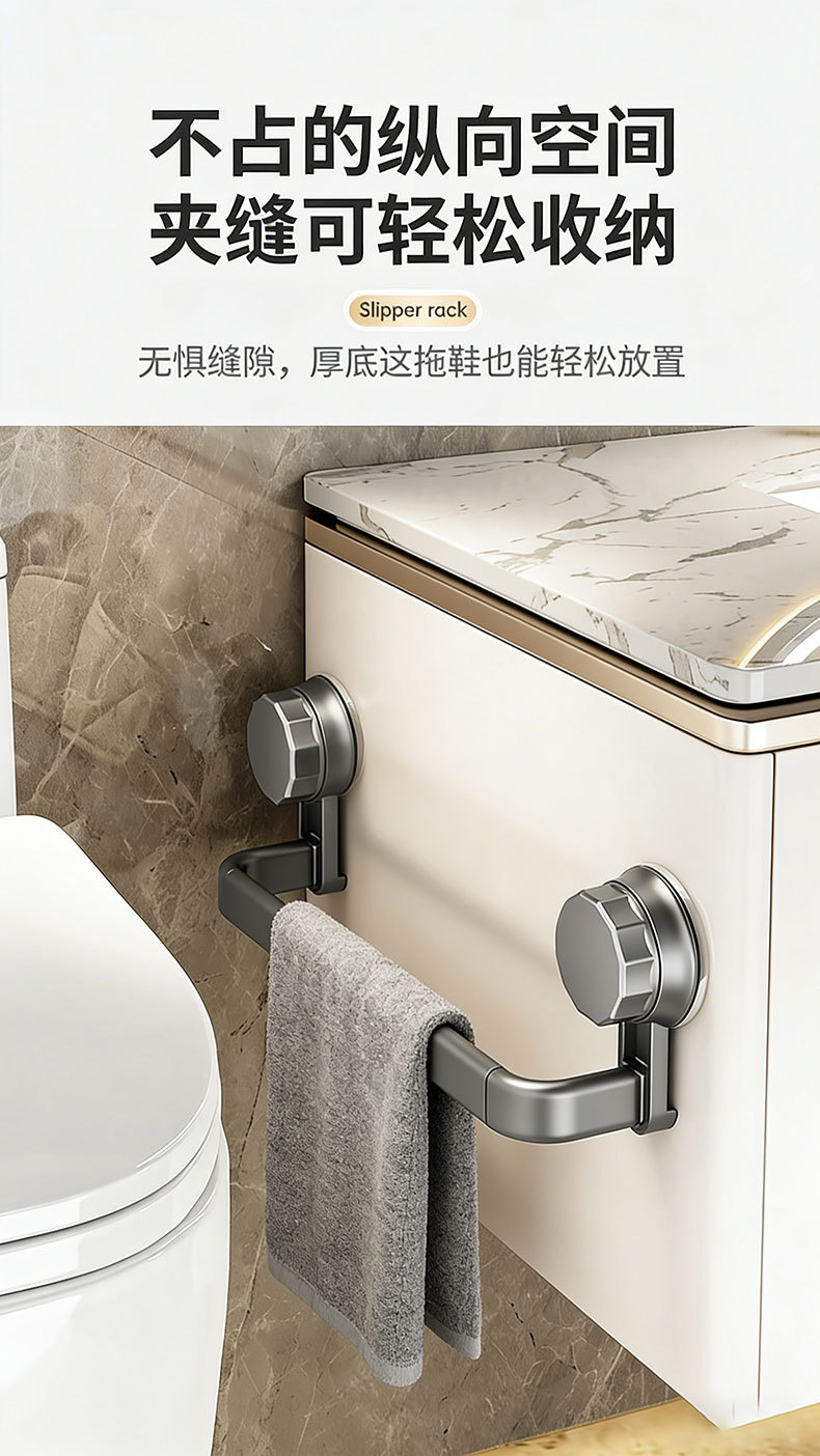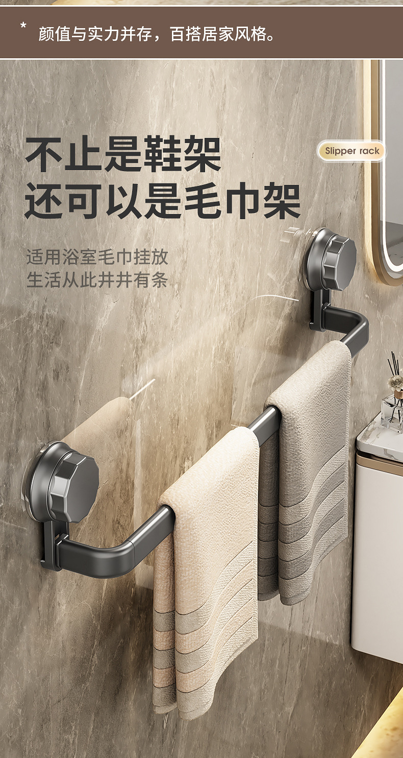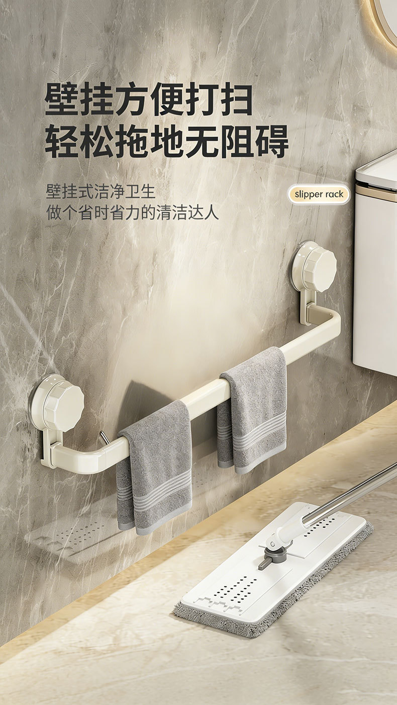 浴室可移动拖鞋置物一体靠墙卫生间免打孔吸盘收纳整理毛巾架批发