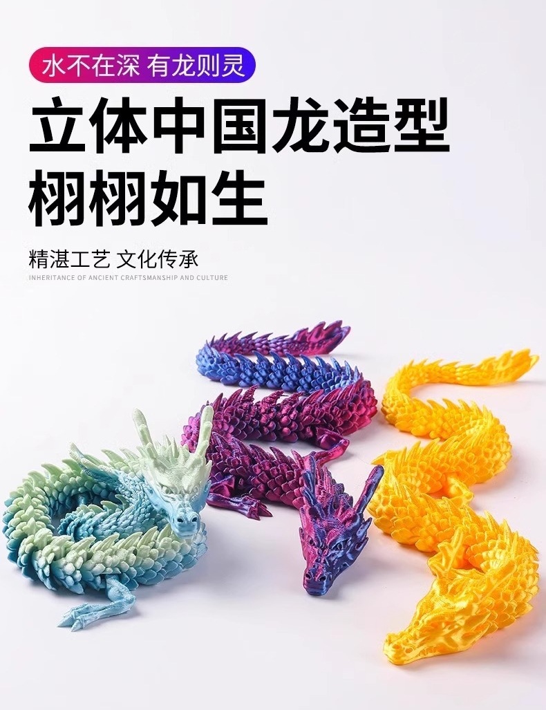 跨境爆款3d打印中国龙蛋套装儿童玩具网红关节活动中国龙摆件礼物