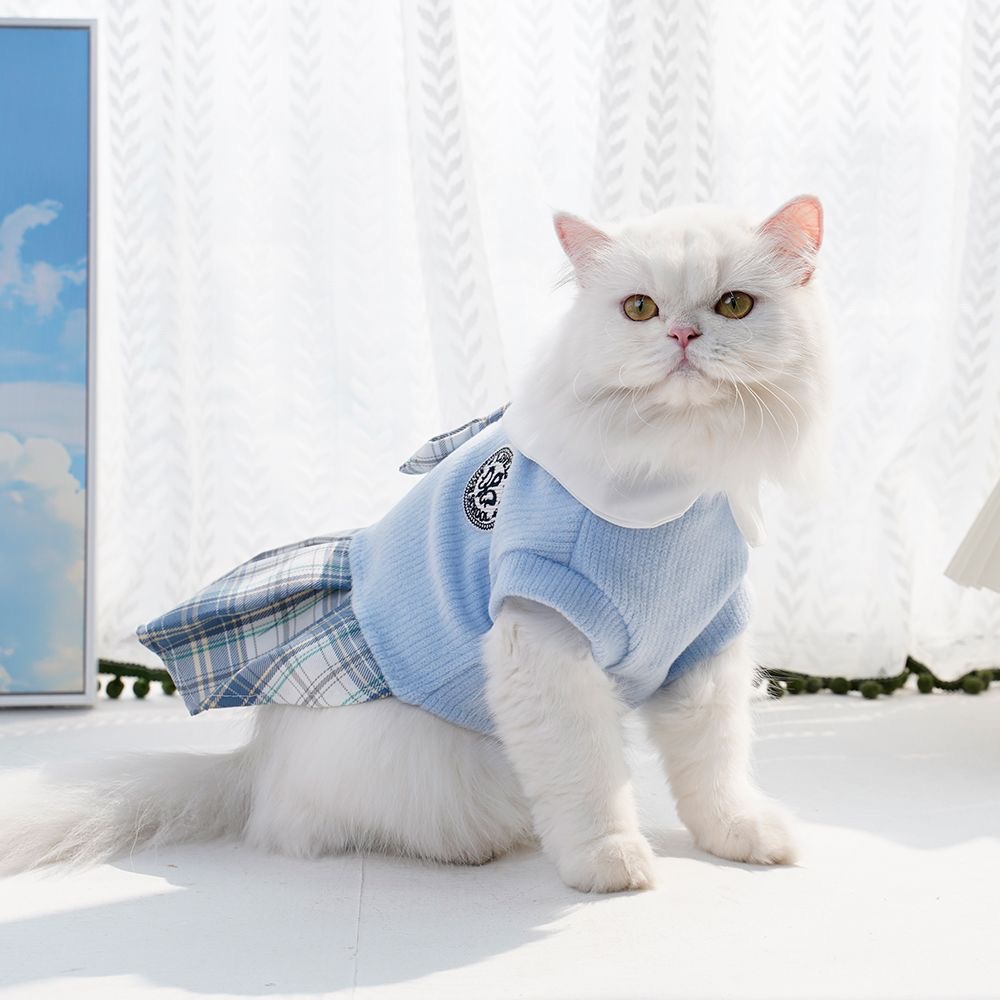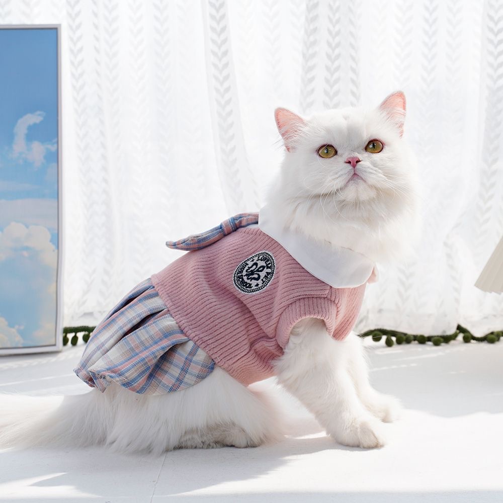 宠物裙子春季小清新针织连衣裙带蝴蝶结泰迪比熊柯基狗狗猫咪衣服