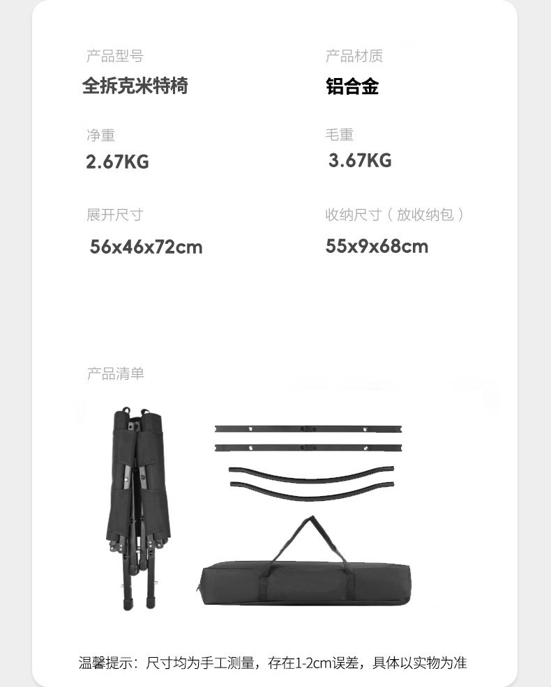 乐享户外群里铝合金可拆卸克米特椅折叠战术风露营椅子便携式代发