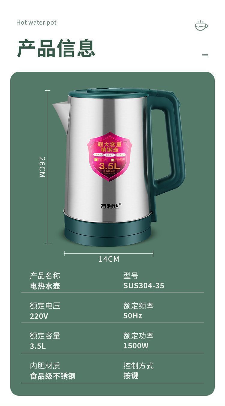 3.5L电热水壶大容量烧水壶煮茶壶一体智能保温自动断电开水壶家用