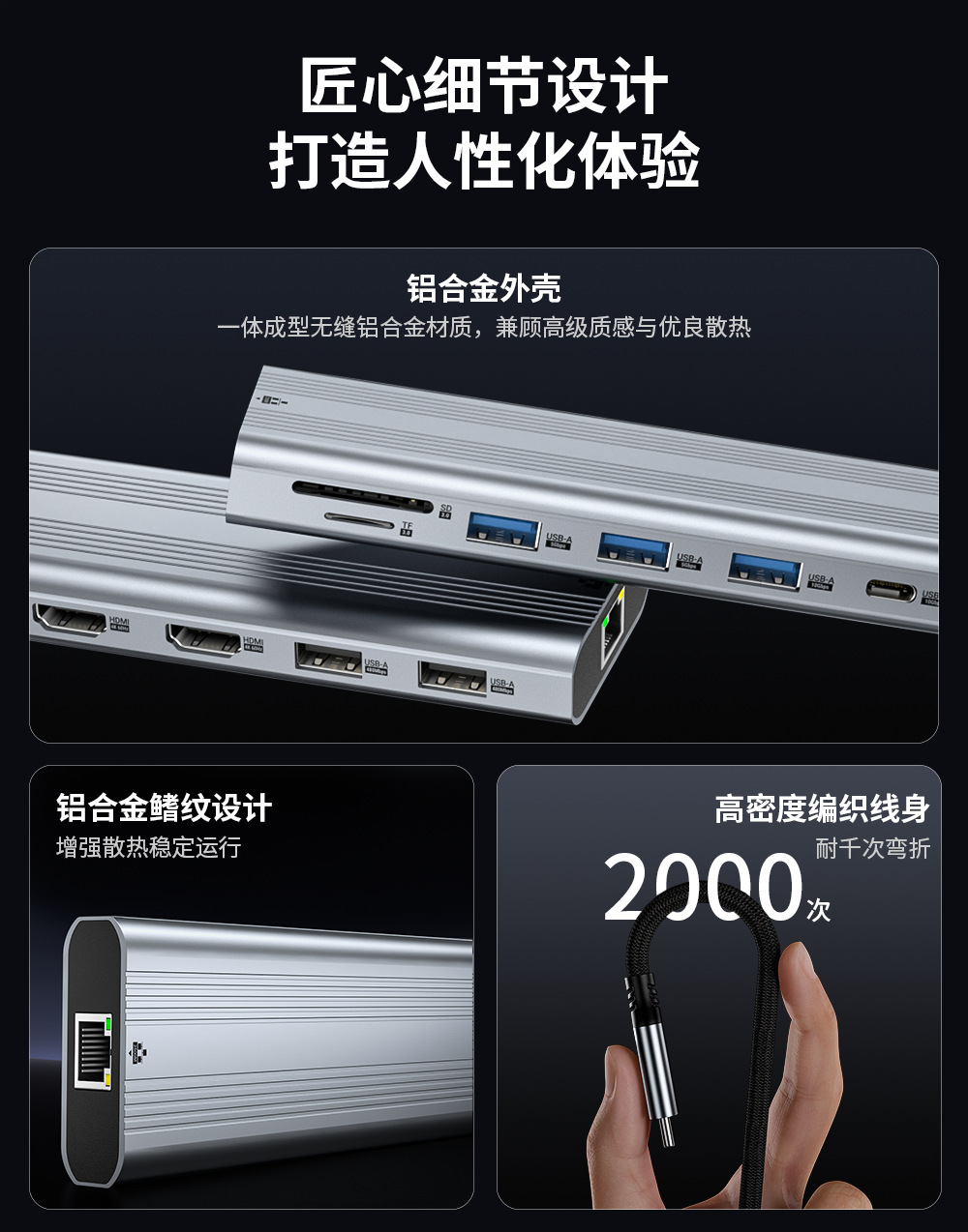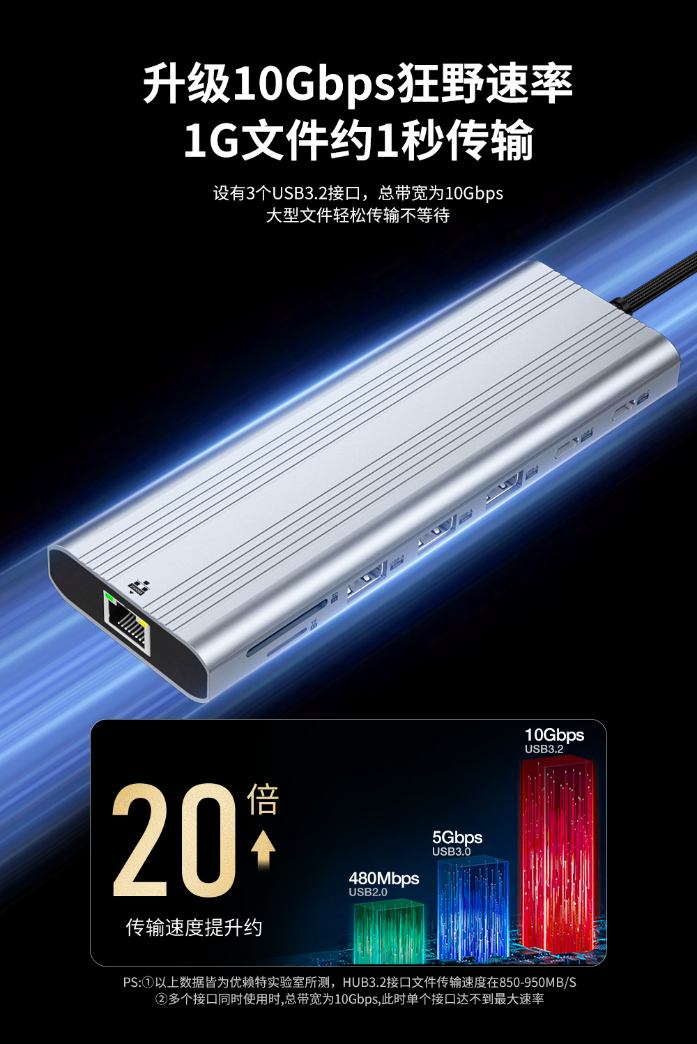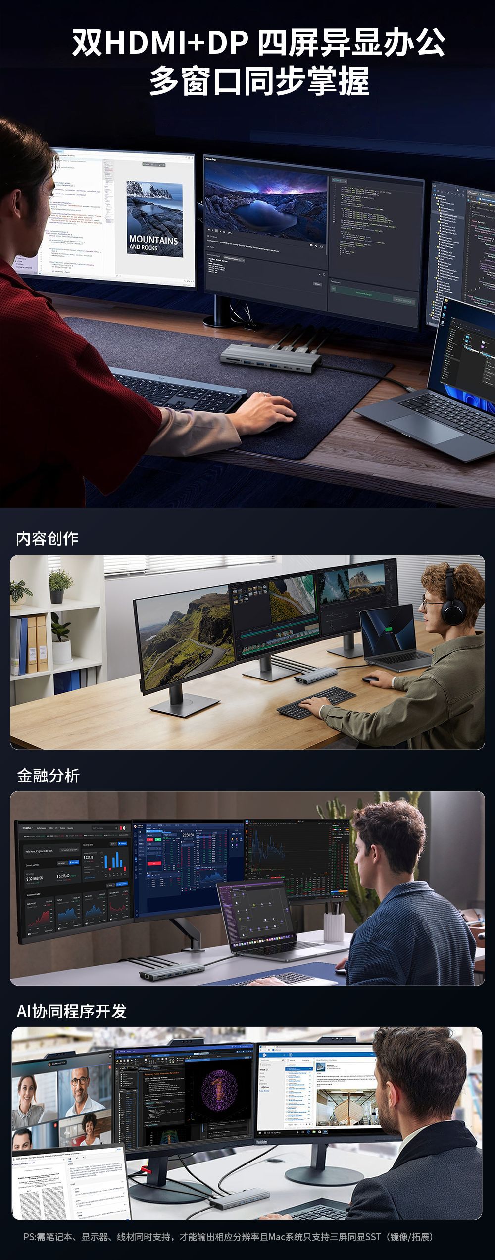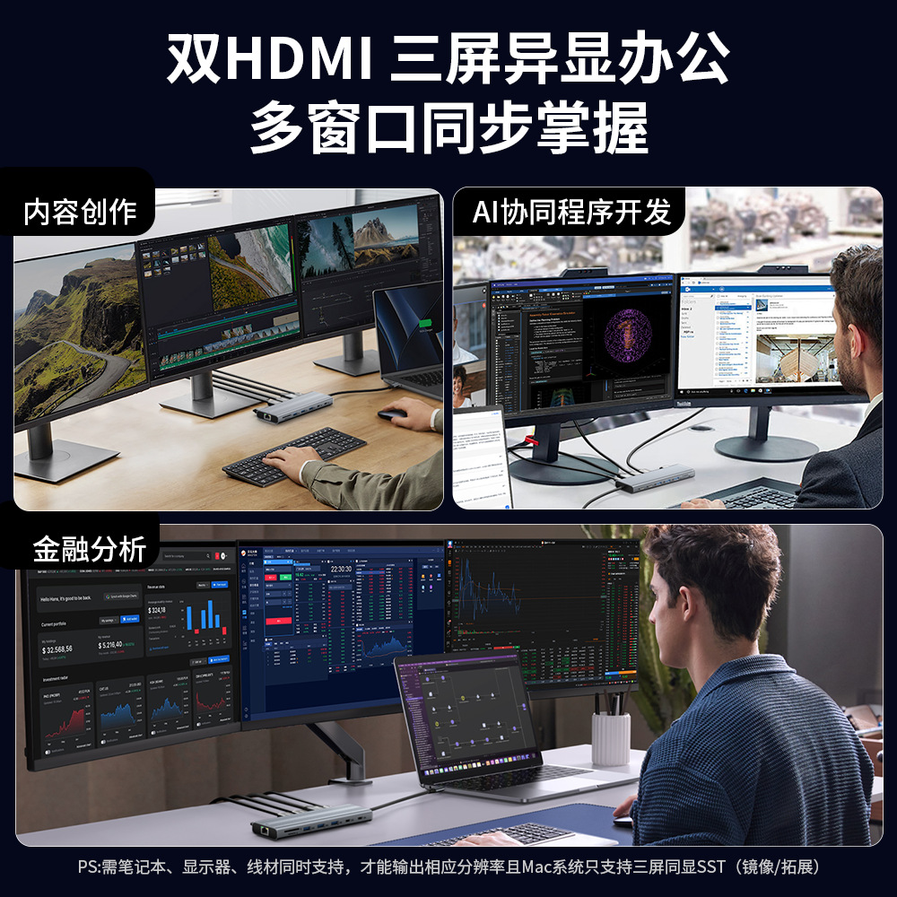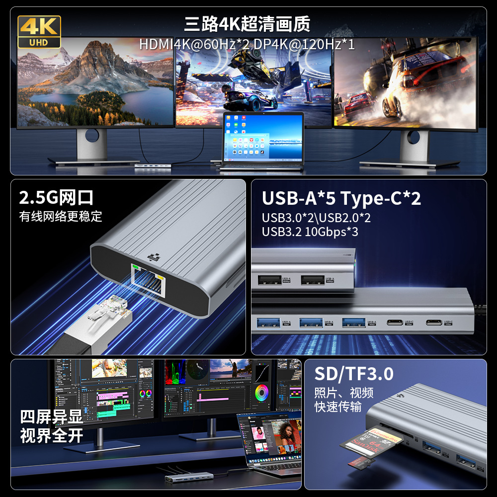 十四合一Type-C扩展坞 HDMI4K120Hz 三屏异显拓展坞usb3.0集线器
