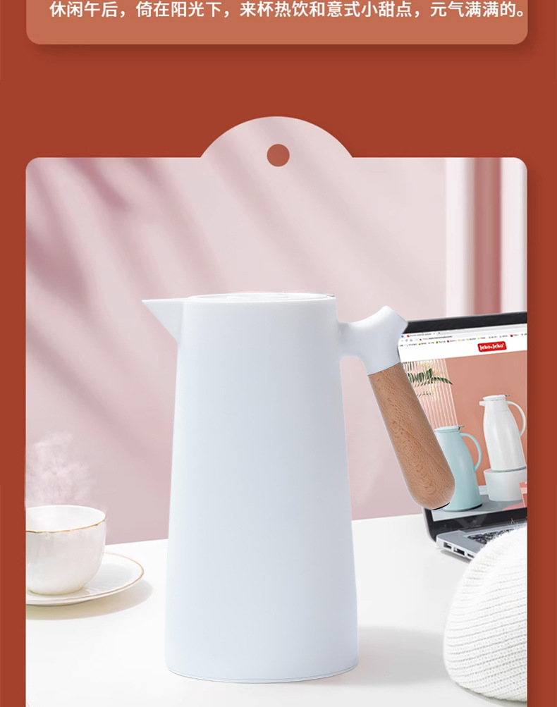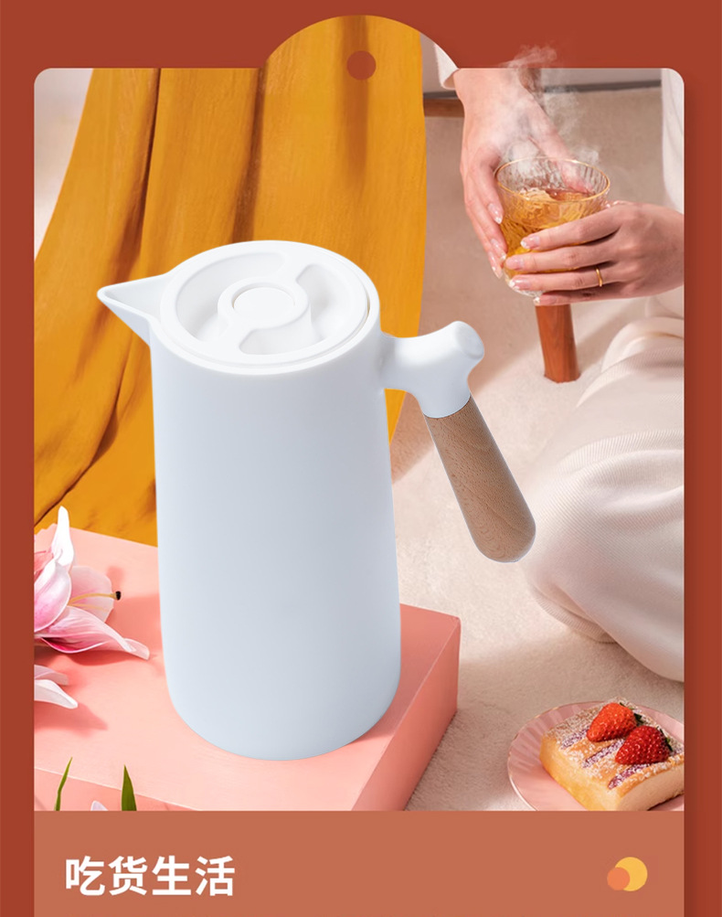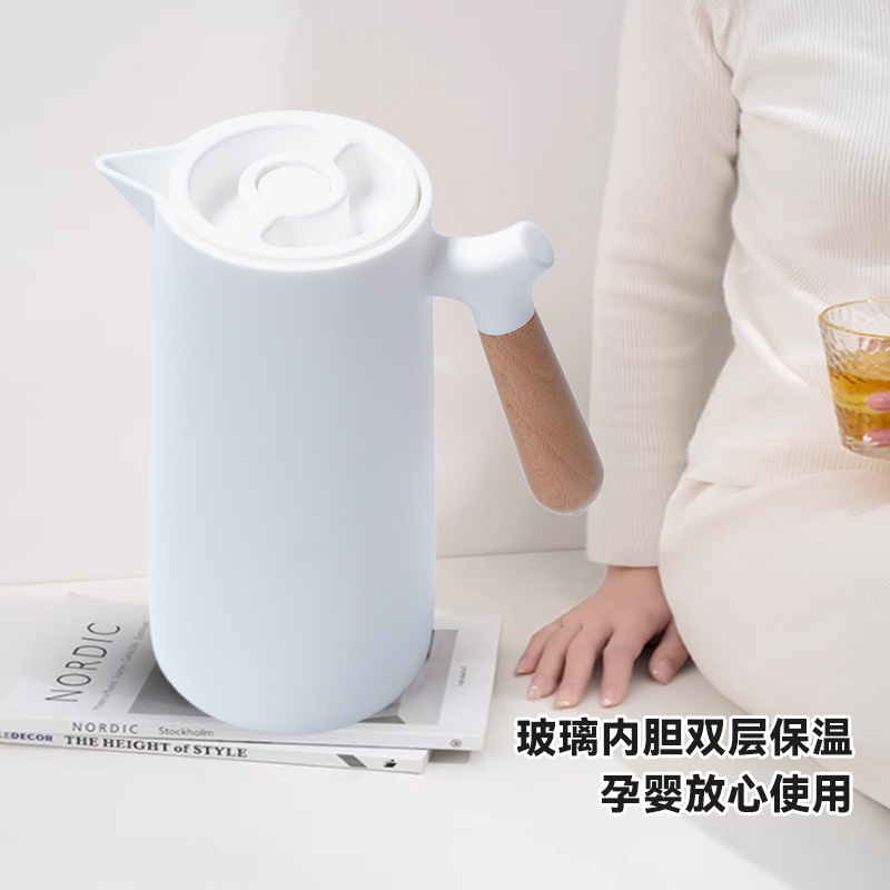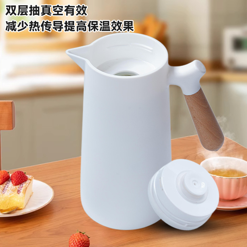 欧式保温壶家用热水壶木手柄保温瓶大容量暖水壶玻璃内胆保温杯