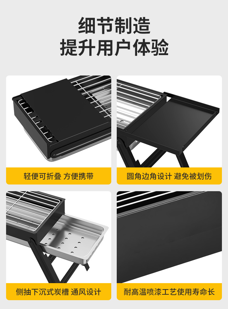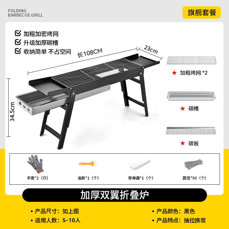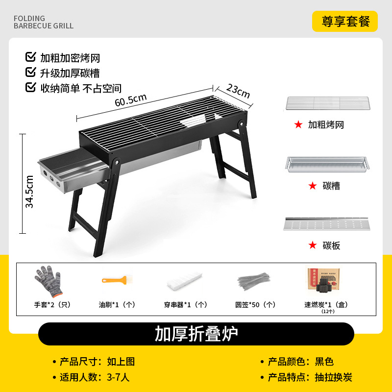 烧烤烧烤炉子家用户外便携锈钢烤肉小型碳烤炉5新烤肉炉折叠加厚