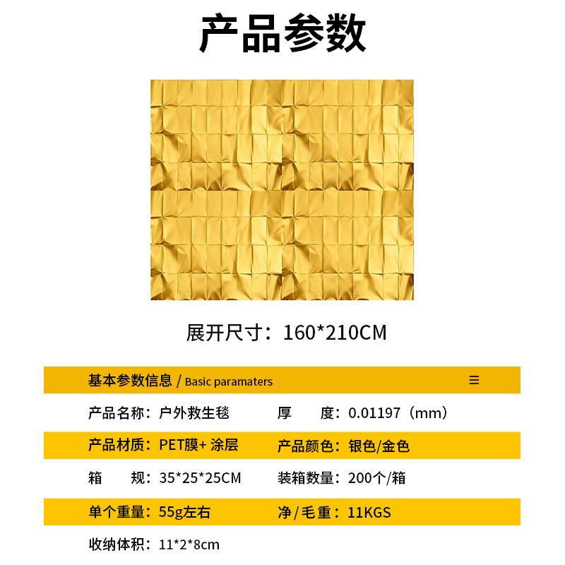 户外应急急救毯 救生毯求生保温毯防晒毯160*210cm 户外用品批发
