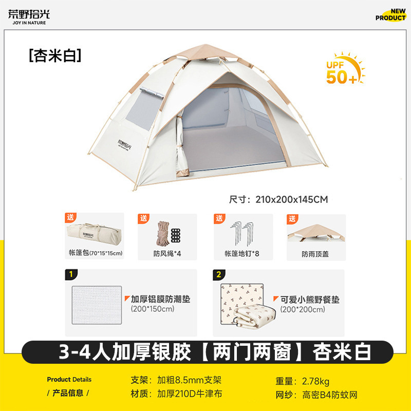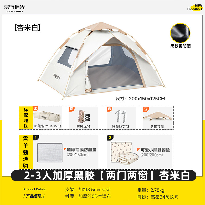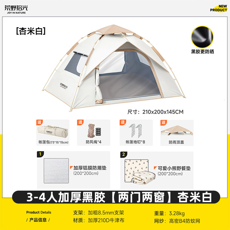 露营帐篷户外野营过夜折叠便携式防雨加厚沙滩野外帐篷户外防暴雨