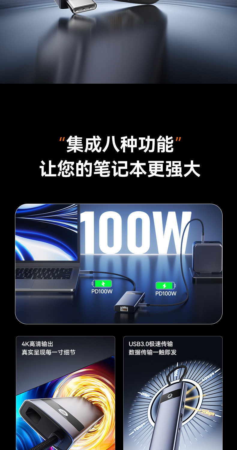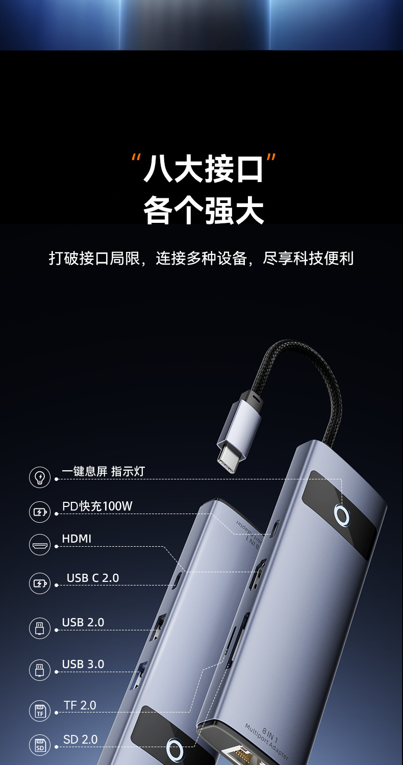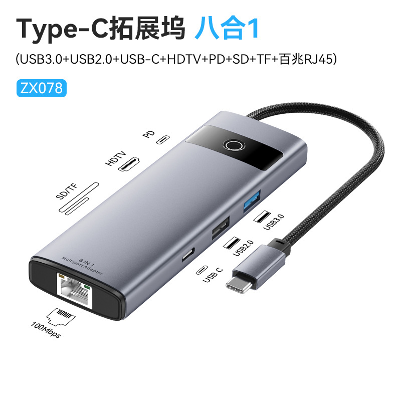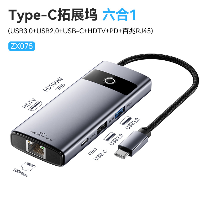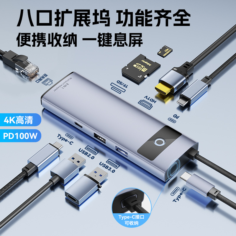 Type C扩展坞USB C拓展坞笔记本电脑分线器多功能HUB集线器带网卡