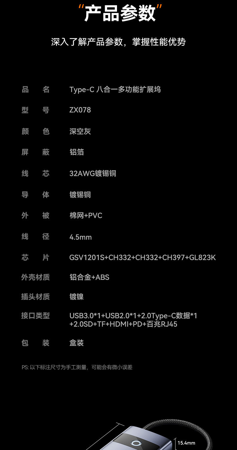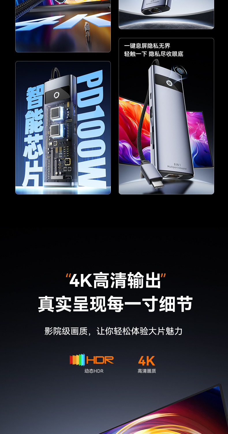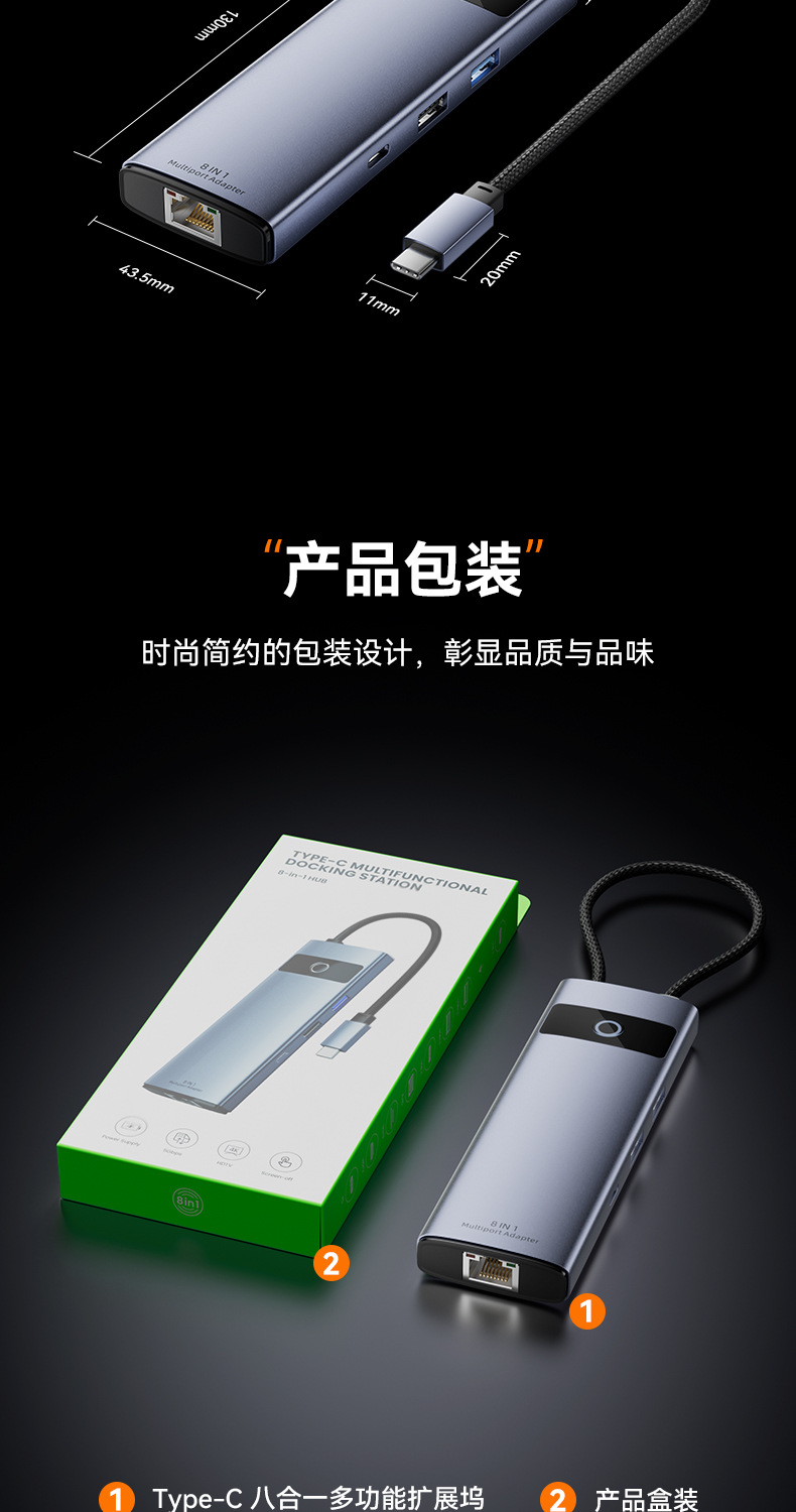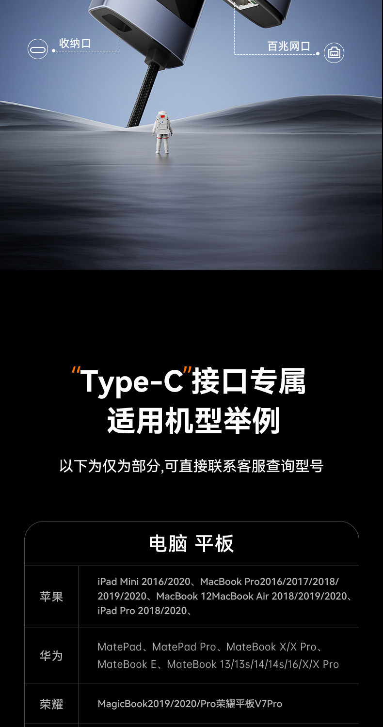 Type C扩展坞USB C拓展坞笔记本电脑分线器多功能HUB集线器带网卡