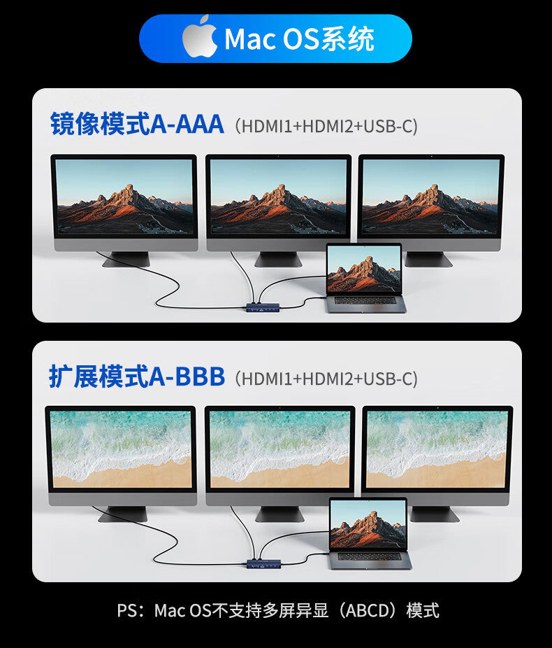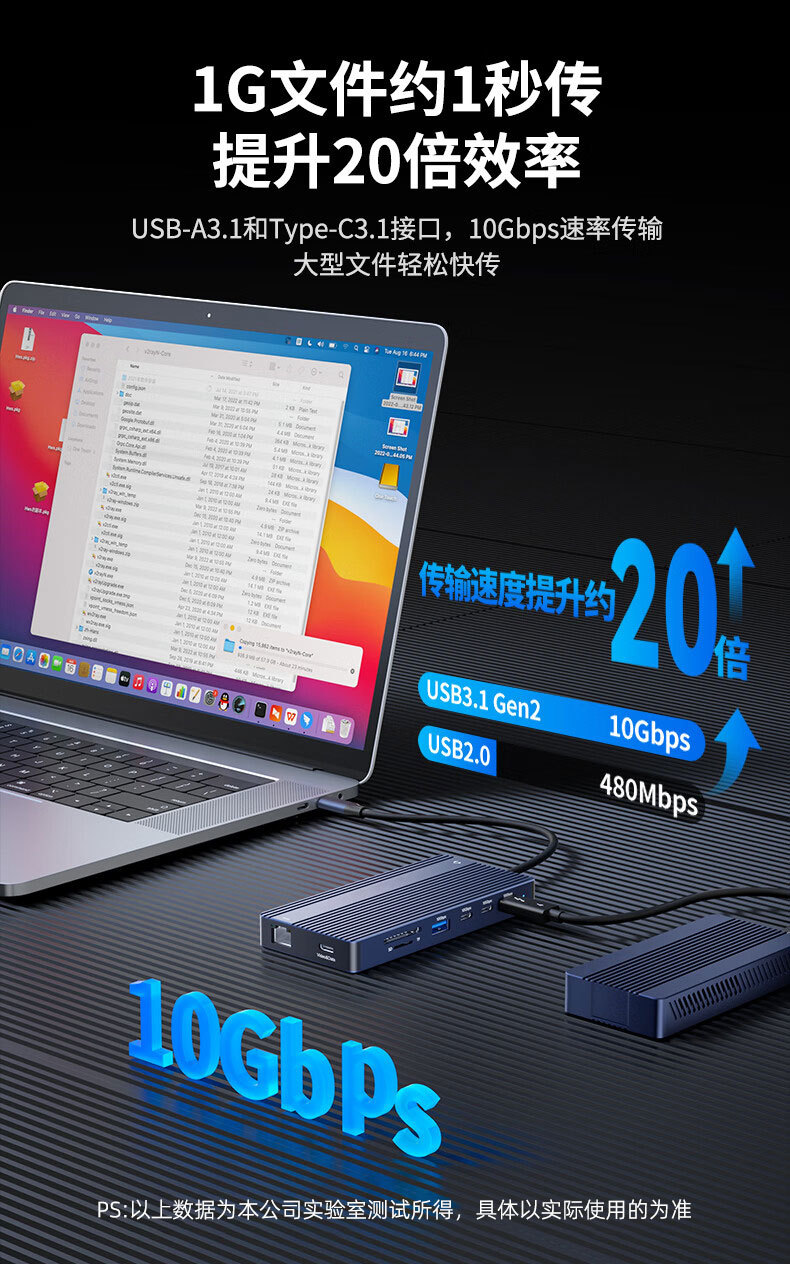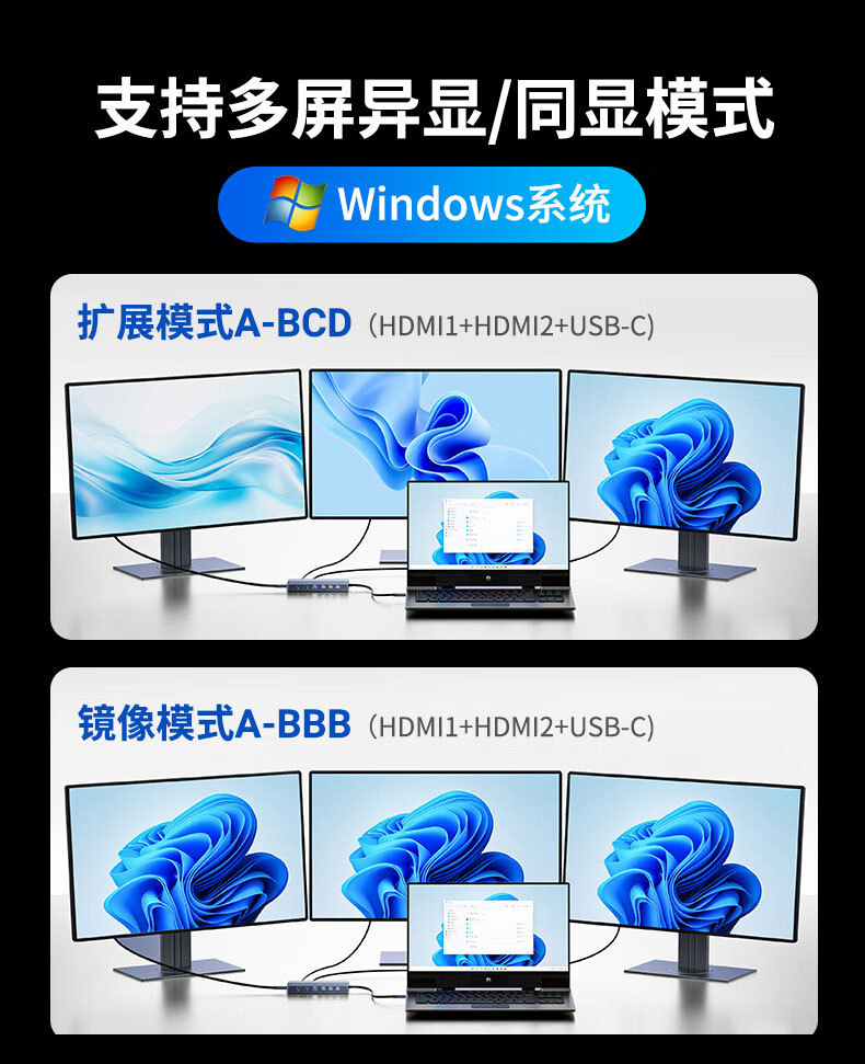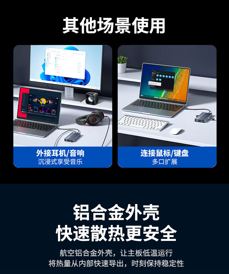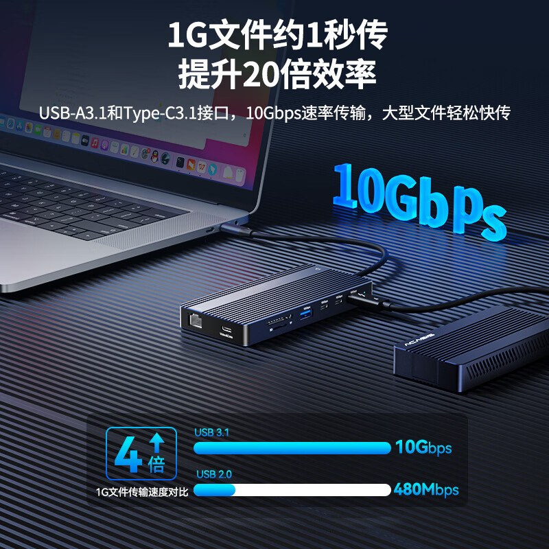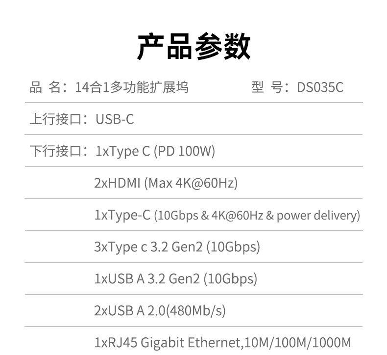 Type-C3.2扩展坞USB-C双HDMI拓展坞四屏异显4K60Hz全功能C视频口