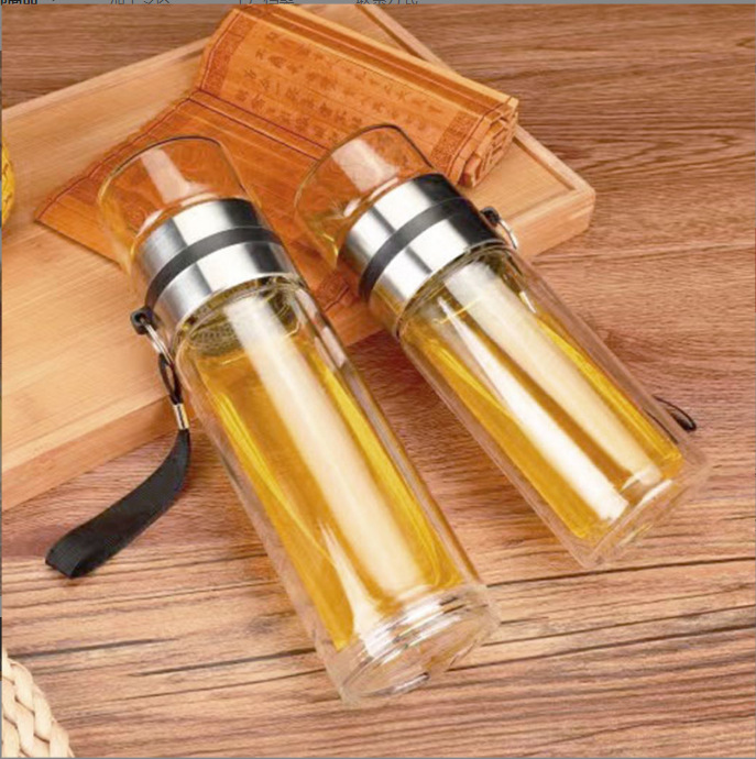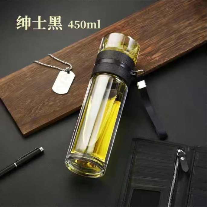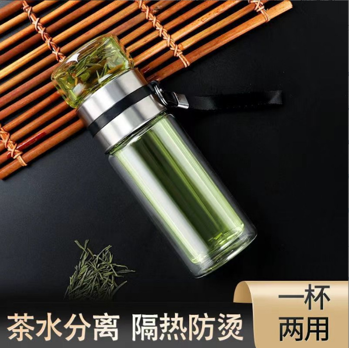 双层高硼硅茶水分离玻璃杯礼品印字耐热车载泡茶杯子批发商务礼赠