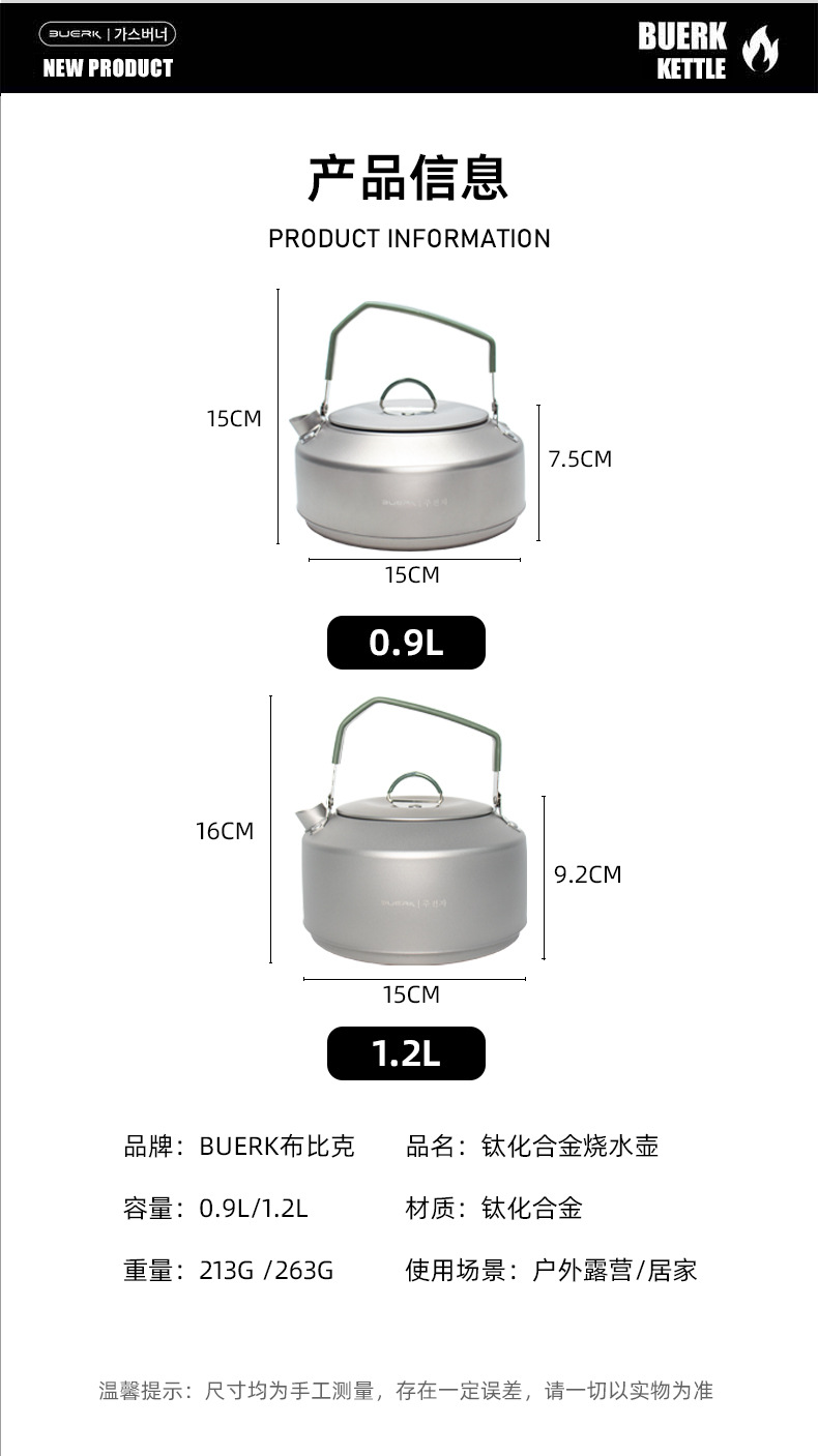 布比克户外露营旅游烧水壶家用野营野炊煮水喝茶壶便捷钛化水壶