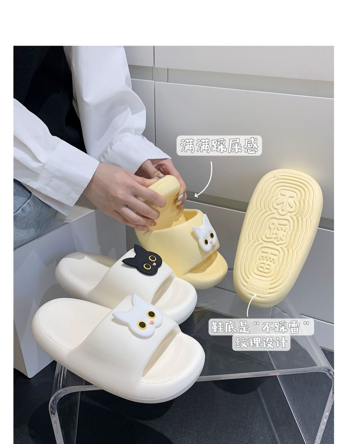 猫咪EVA松糕厚底踩屎感拖鞋女夏士季新款增高室内外穿防滑防臭拖