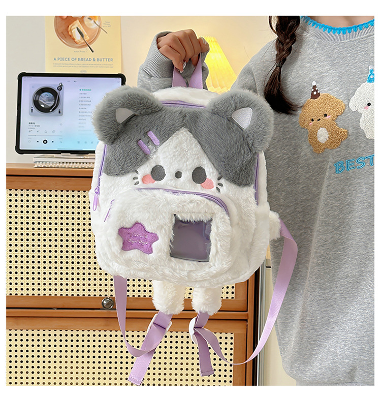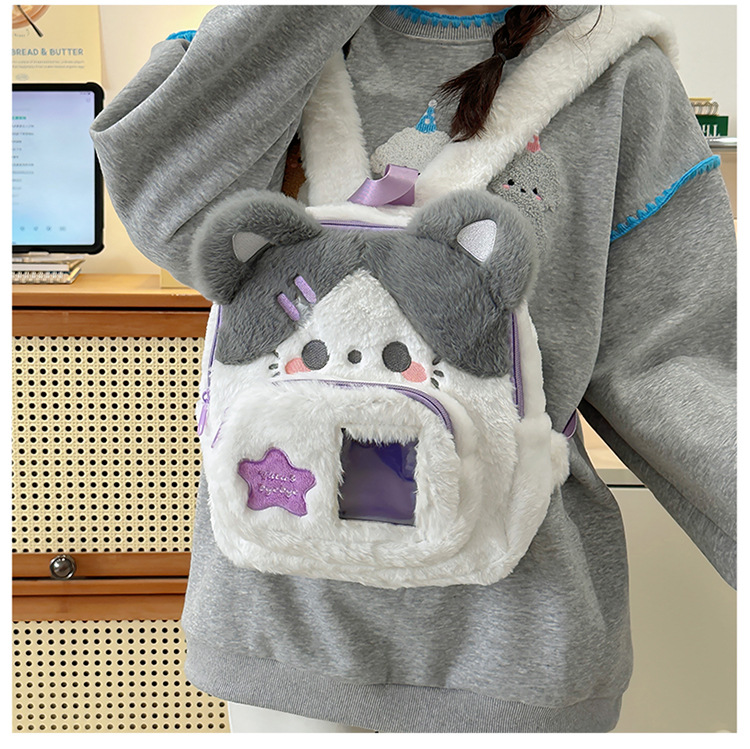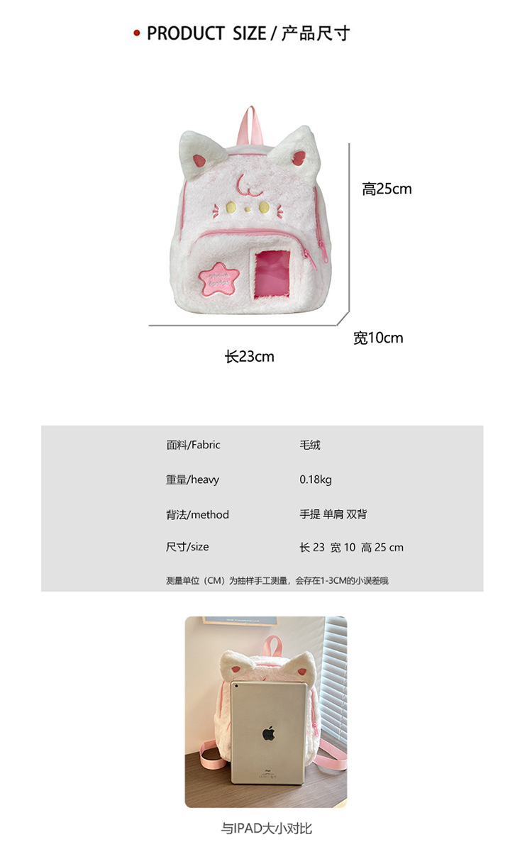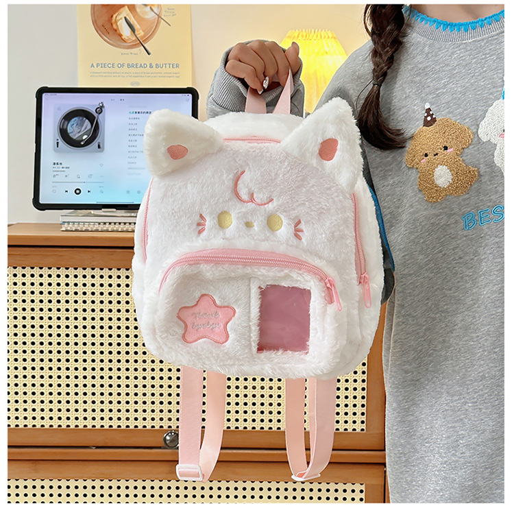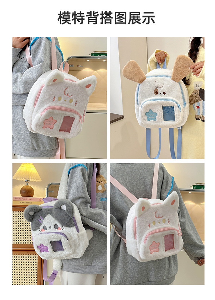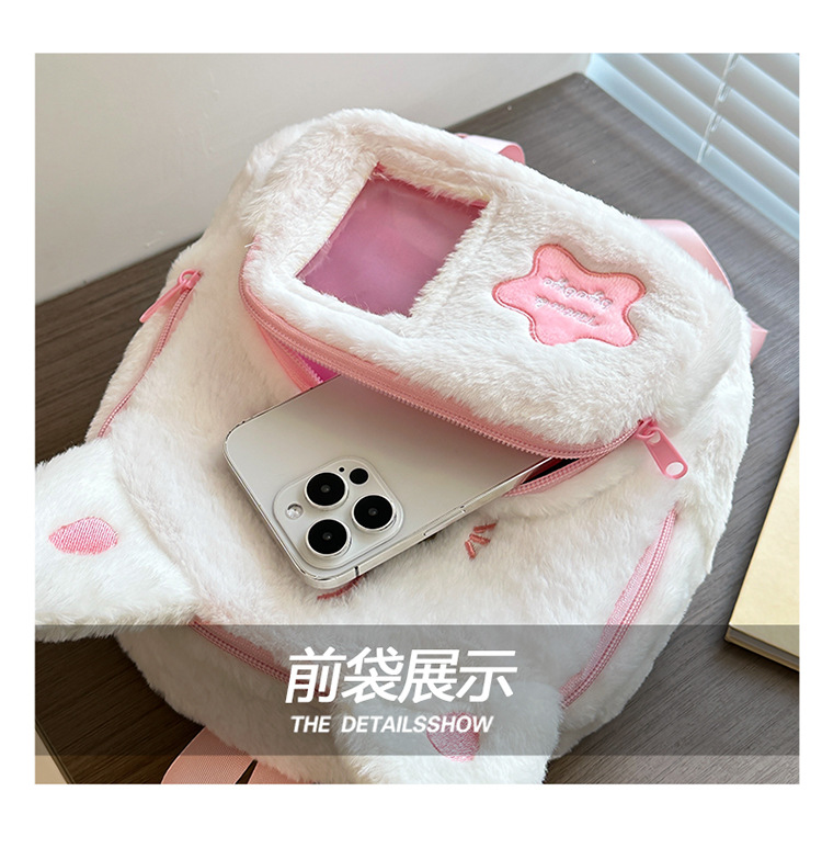 跨境新款可爱兔子毛绒双肩包新款卡通少女小背包日系jk软妹痛包学