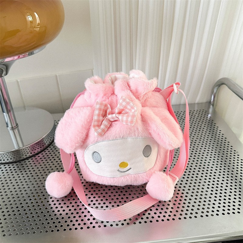 可爱少女心草莓熊拉束口收纳袋女生旅行化妆品斜挎包学生抽绳背包