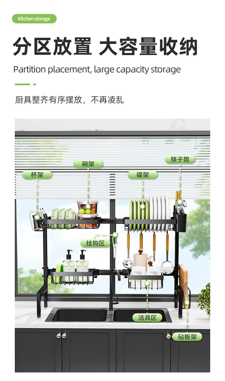 厨房置物架水槽碗架碗筷沥水架多功能家用洗碗池上厨具碗盘收纳架