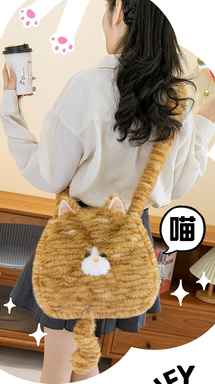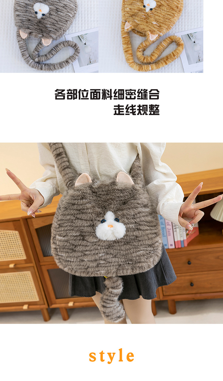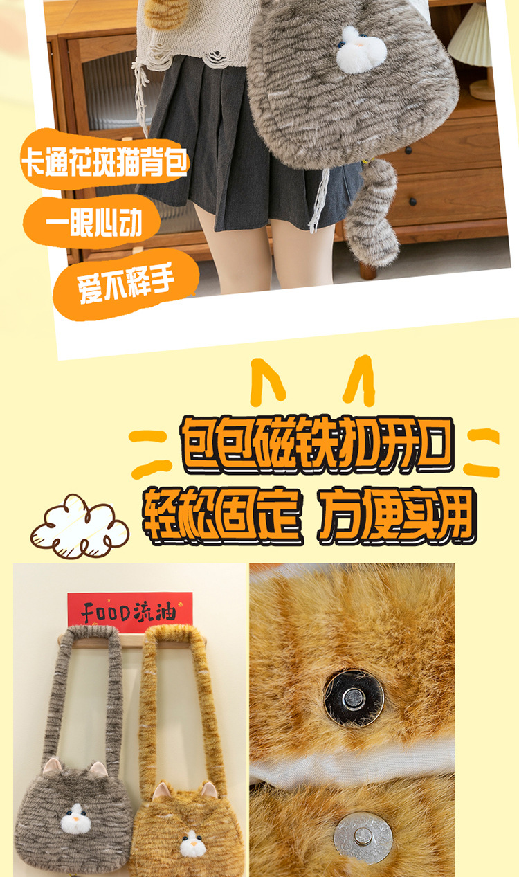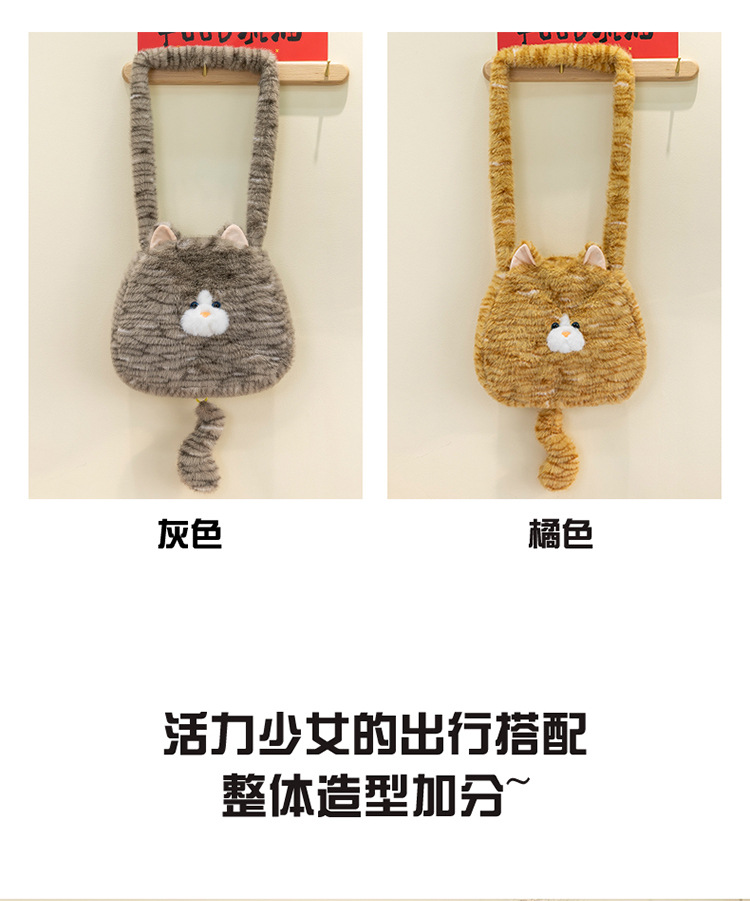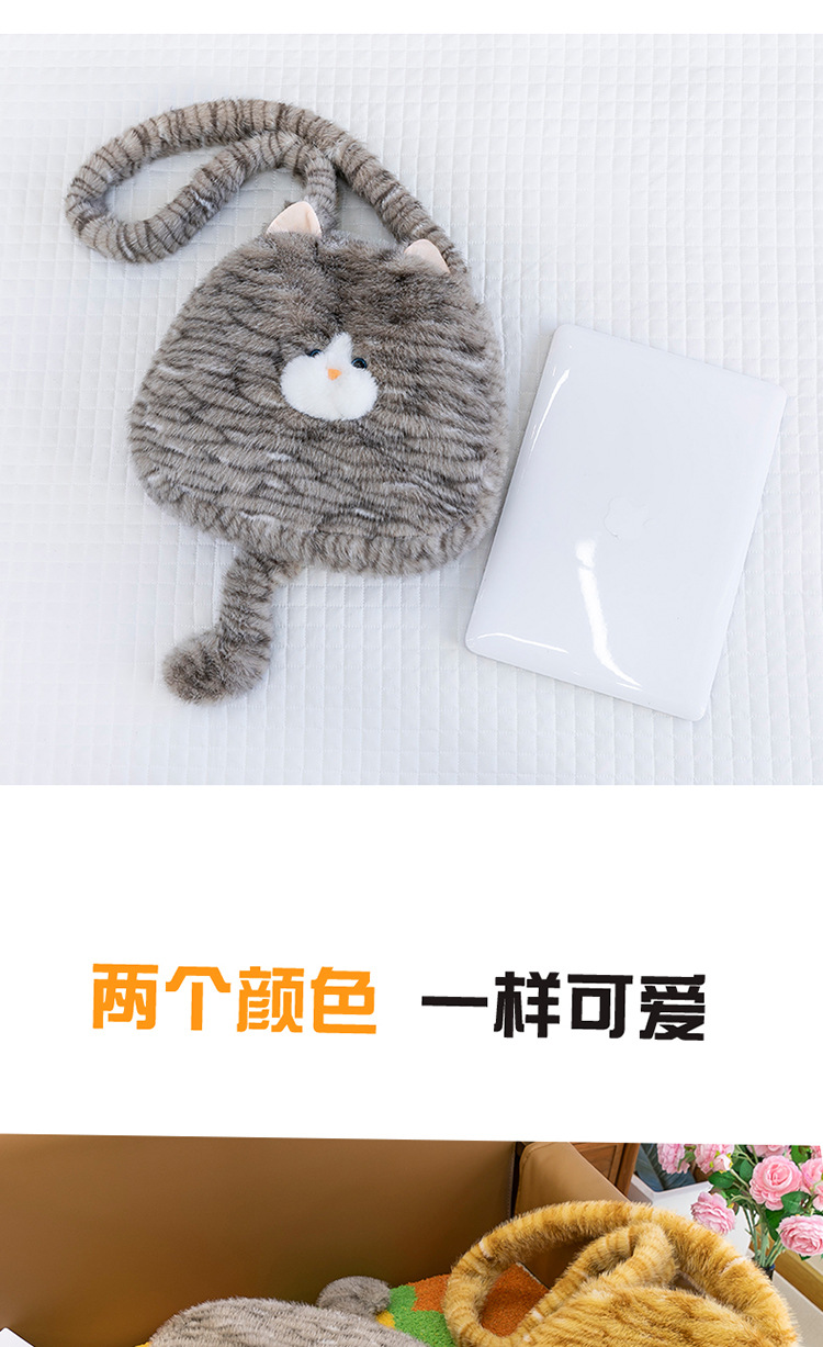 可爱毛绒猫咪斜挎包新款毛绒玩具包少女软萌毛茸茸大容量单肩包包