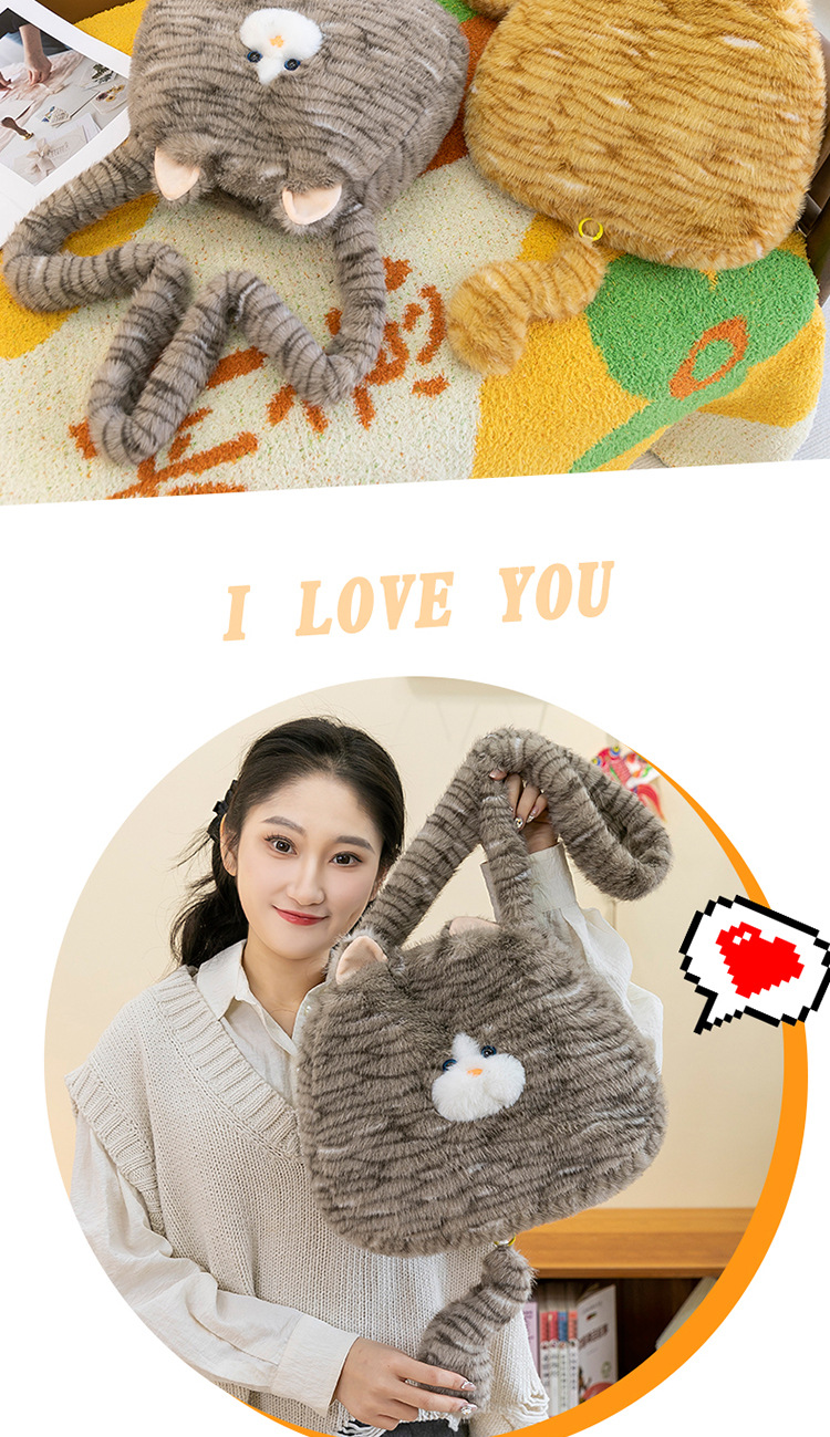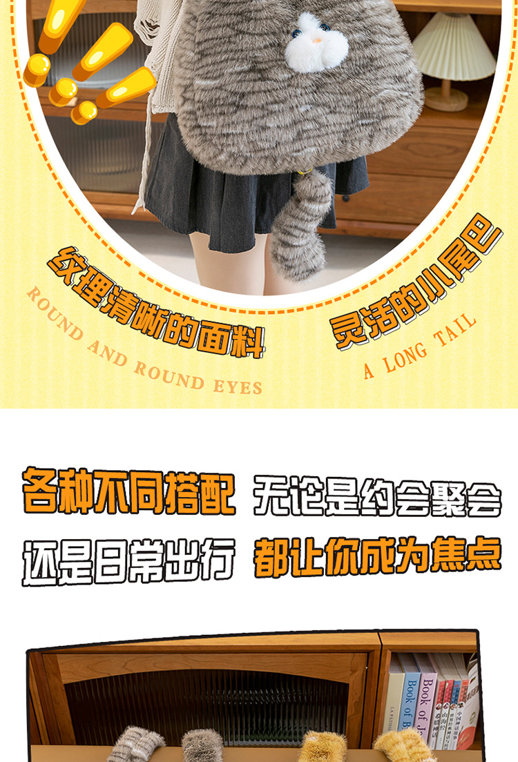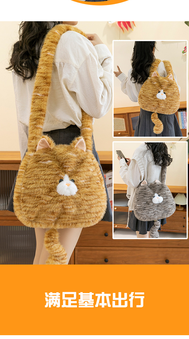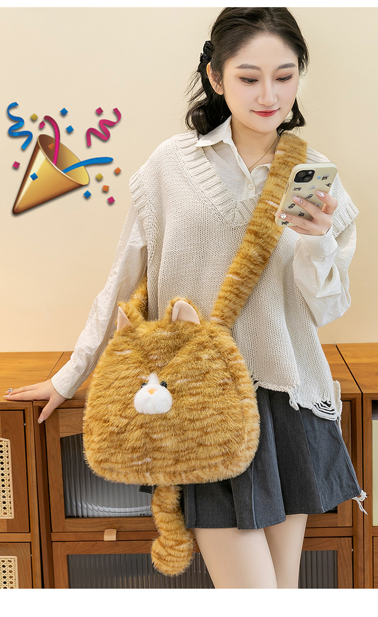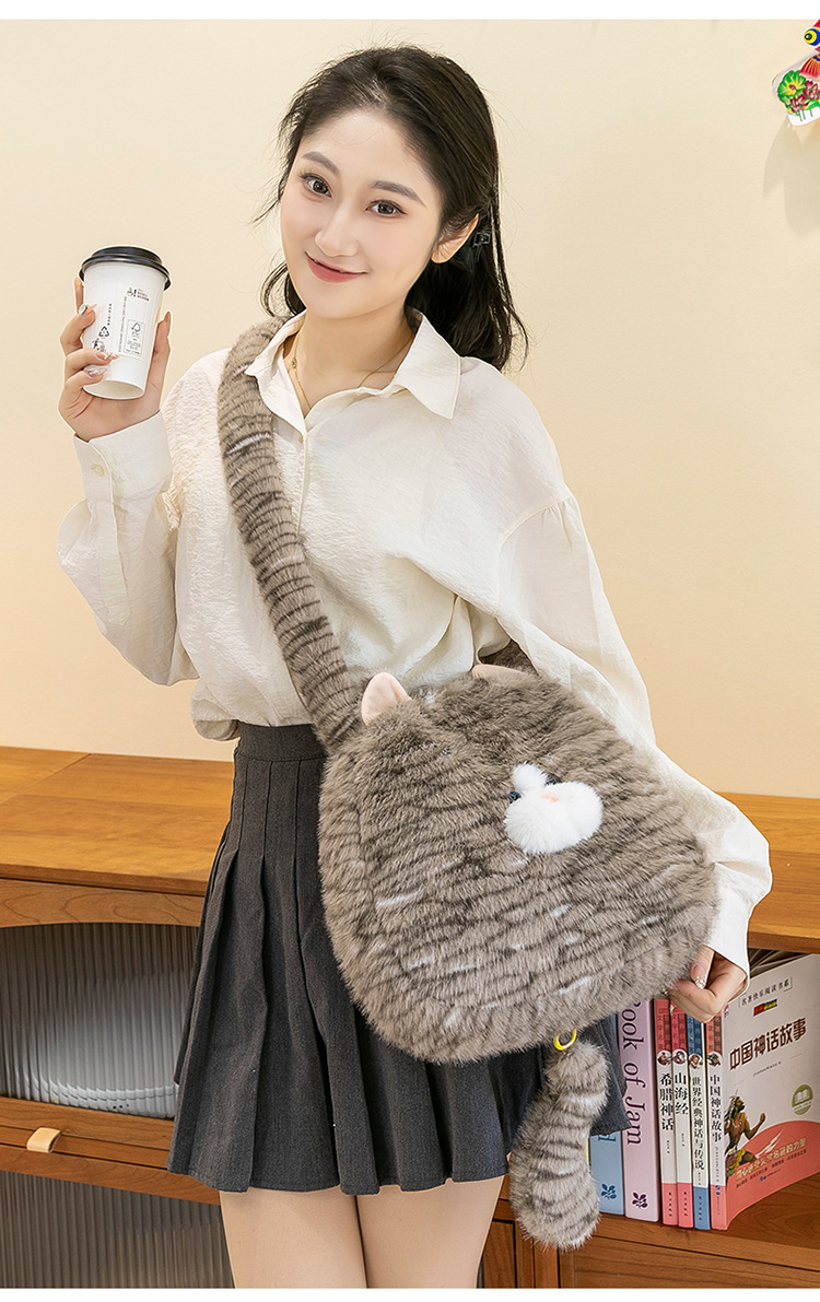 可爱毛绒猫咪斜挎包新款毛绒玩具包少女软萌毛茸茸大容量单肩包包