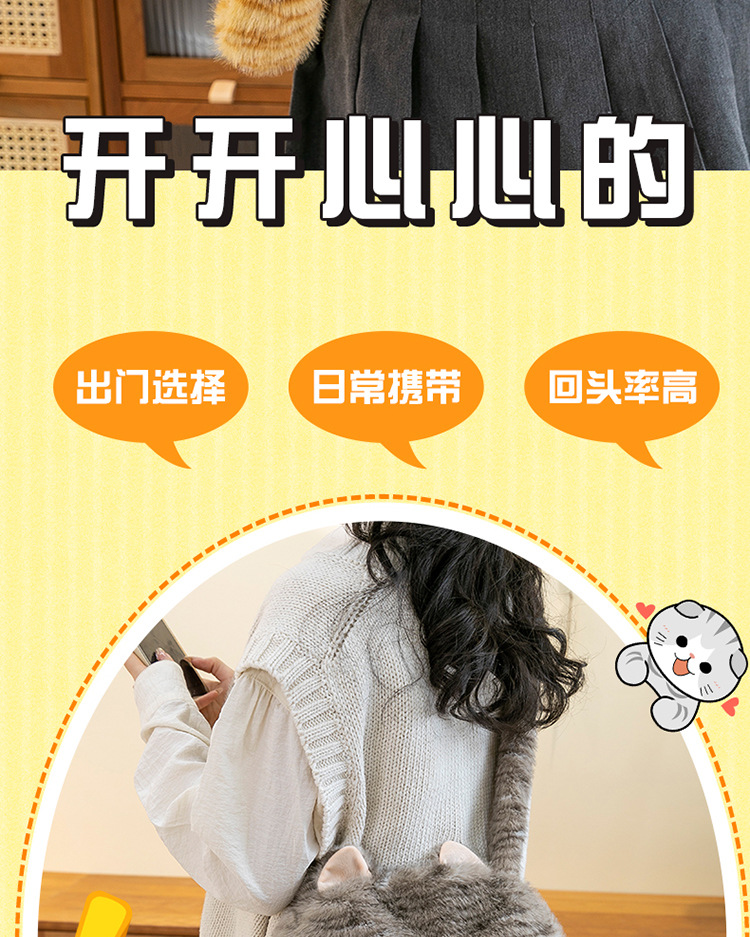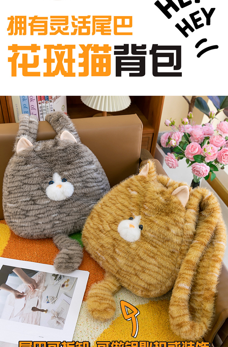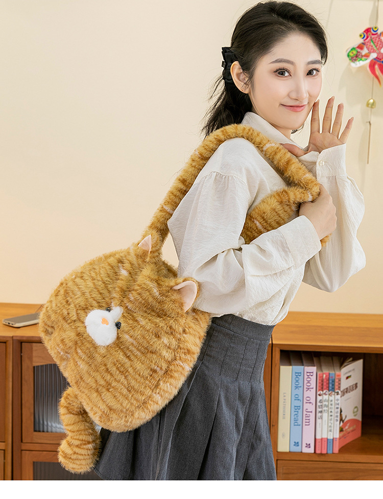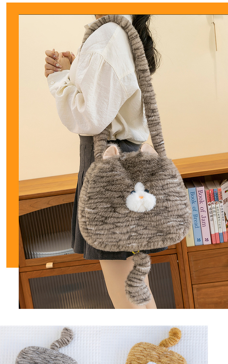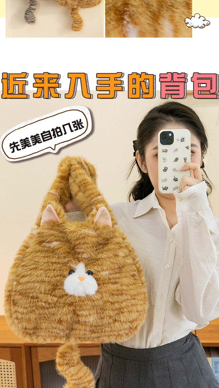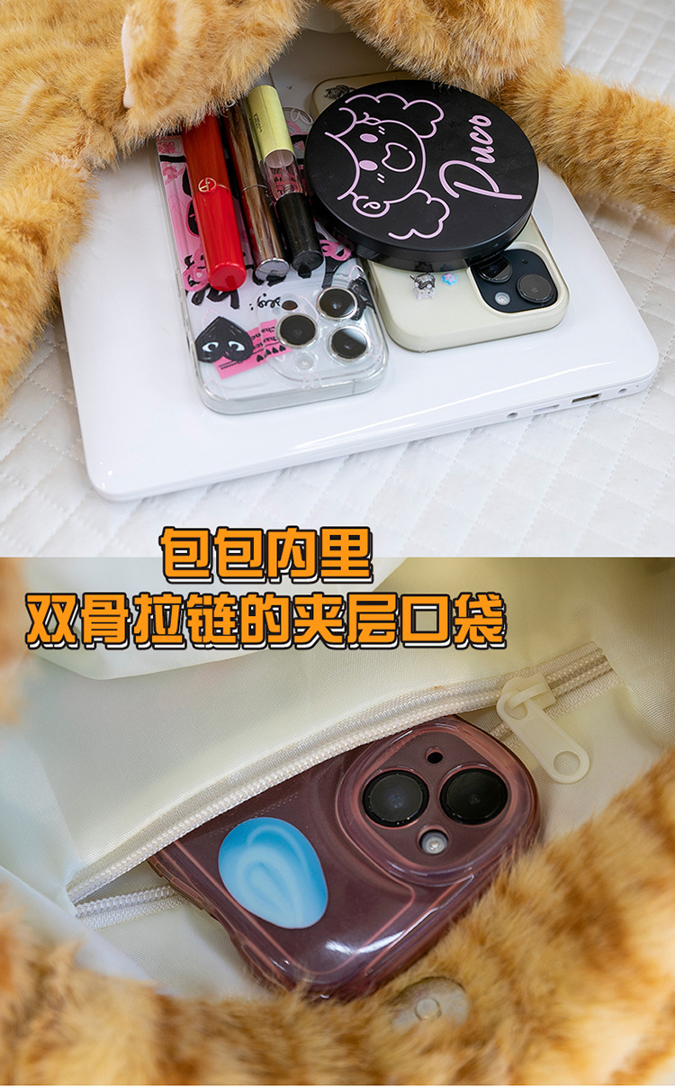 可爱毛绒猫咪斜挎包新款毛绒玩具包少女软萌毛茸茸大容量单肩包包