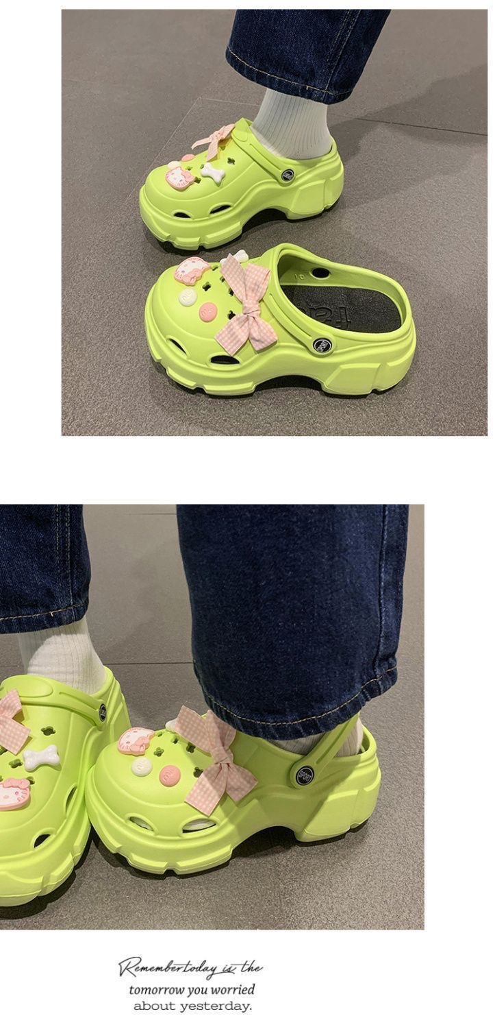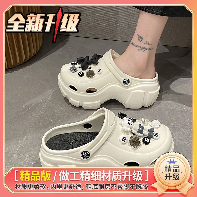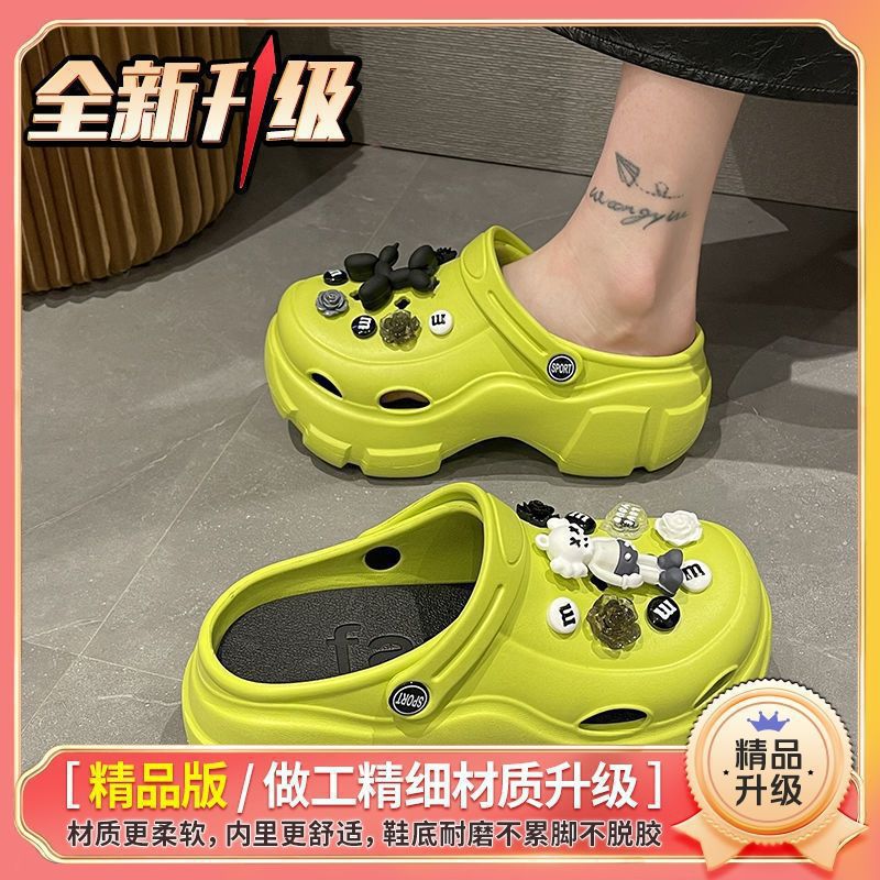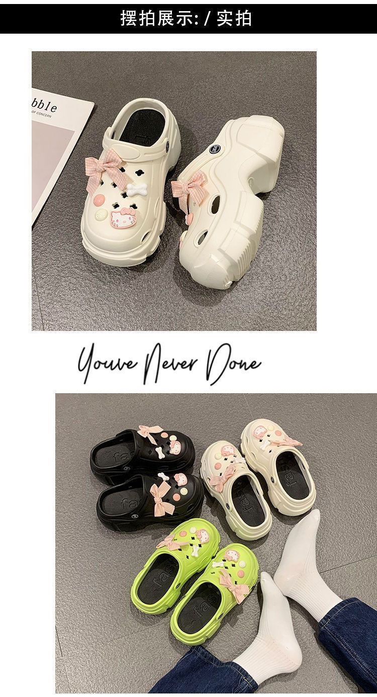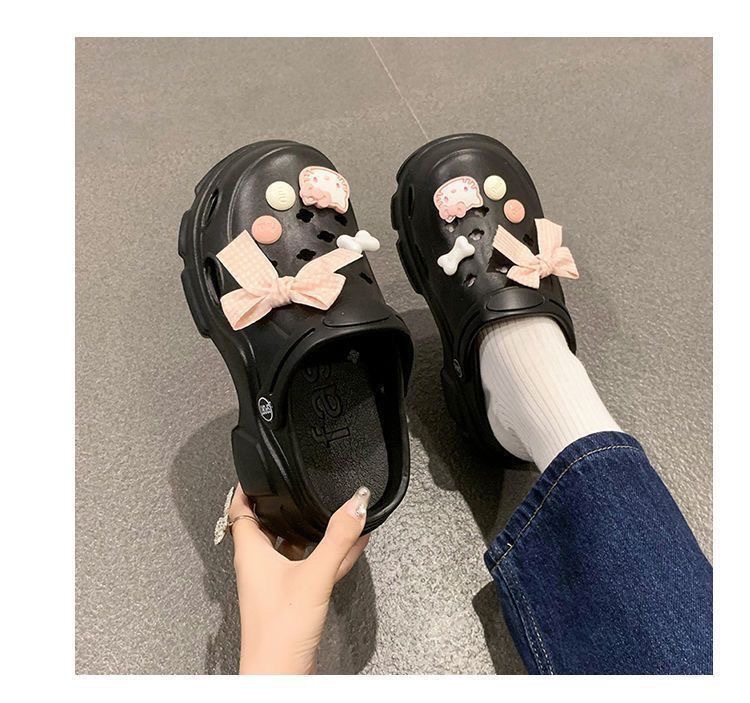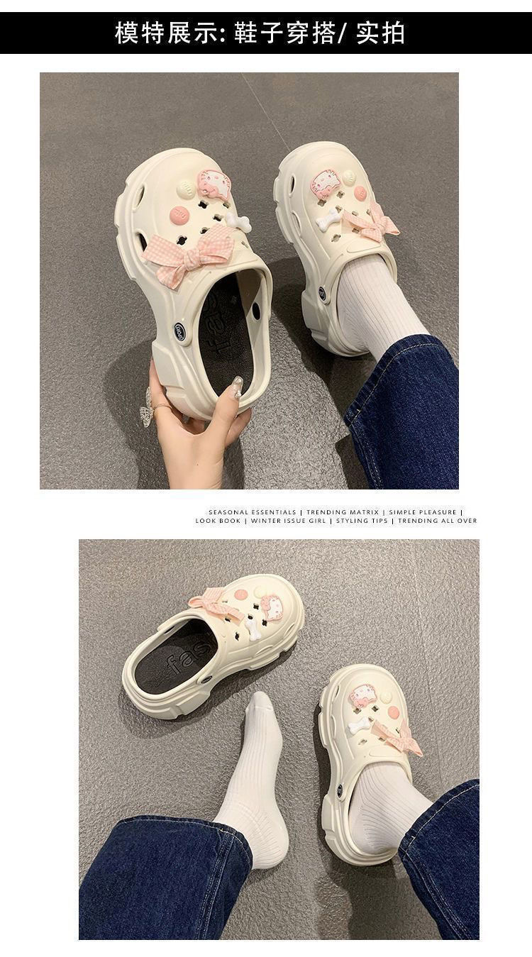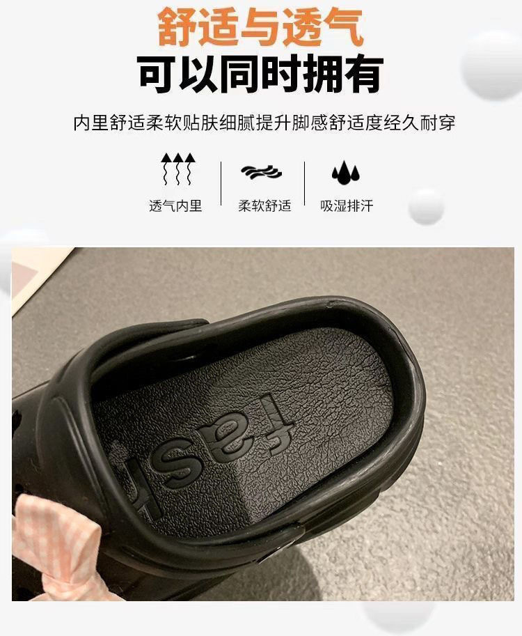 可爱厚底洞洞鞋女夏季新款增高防滑包头沙滩外穿凉拖鞋平底