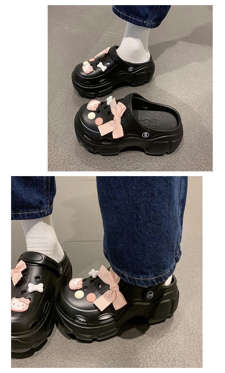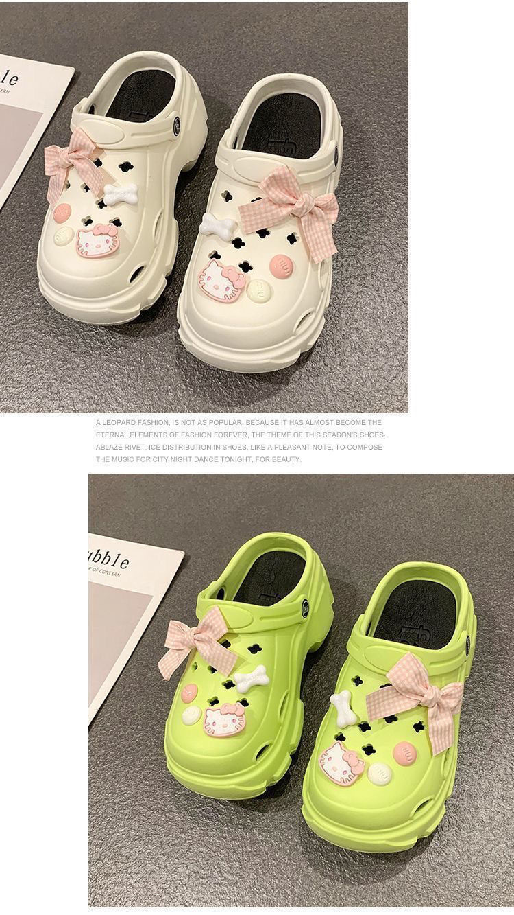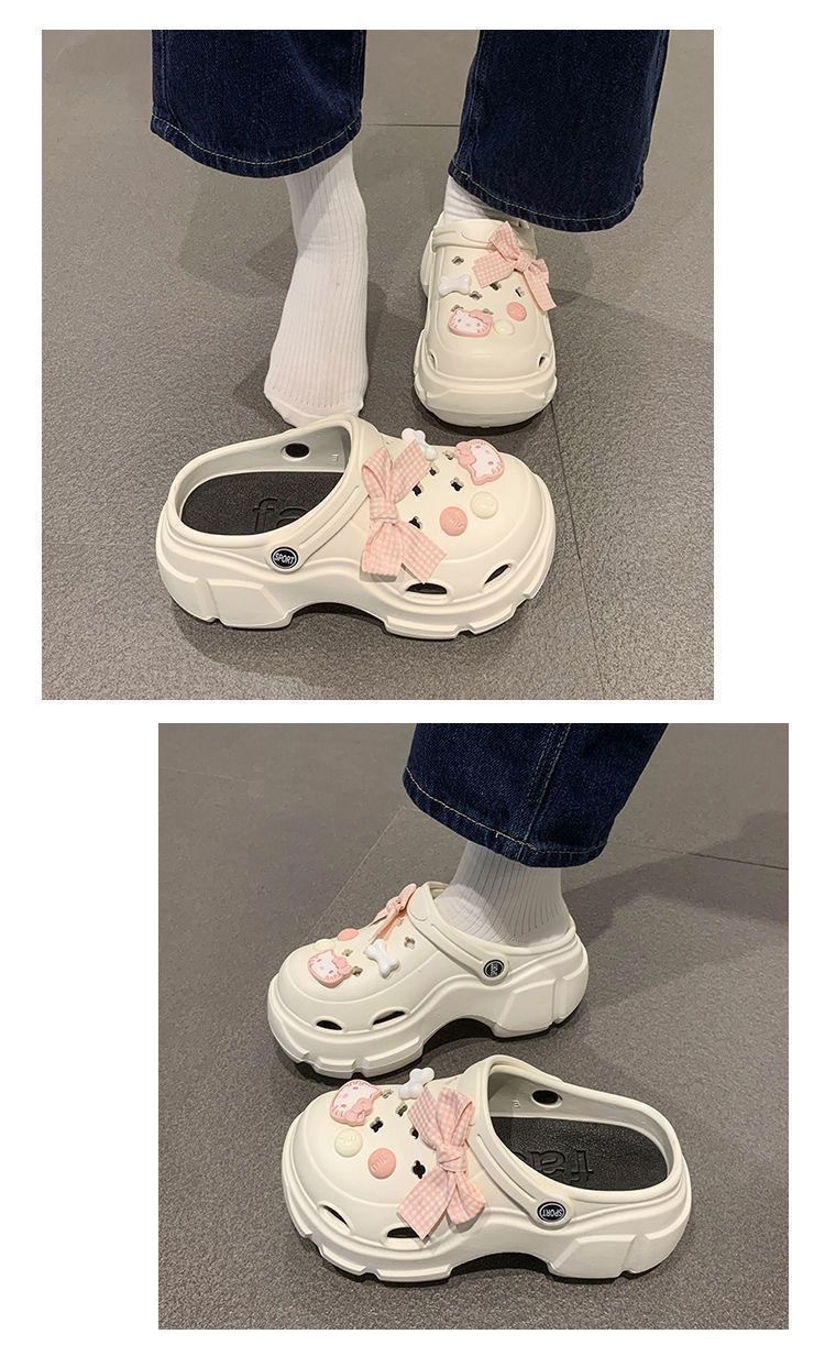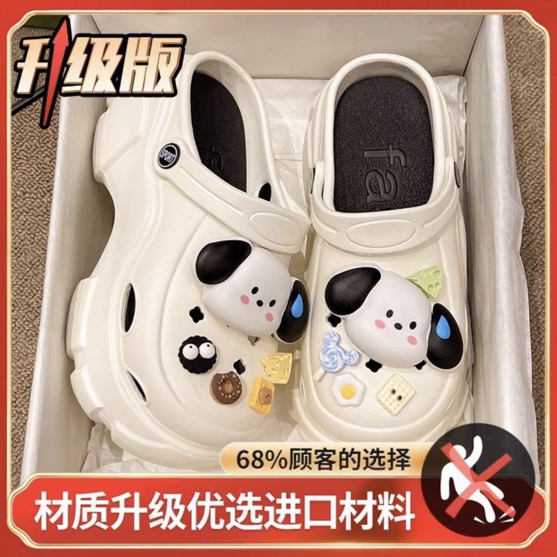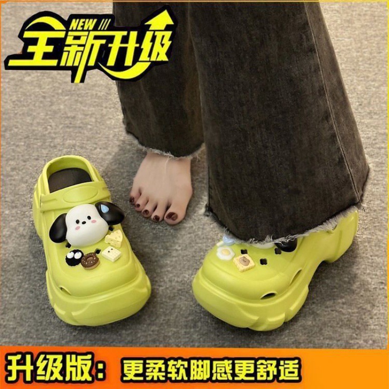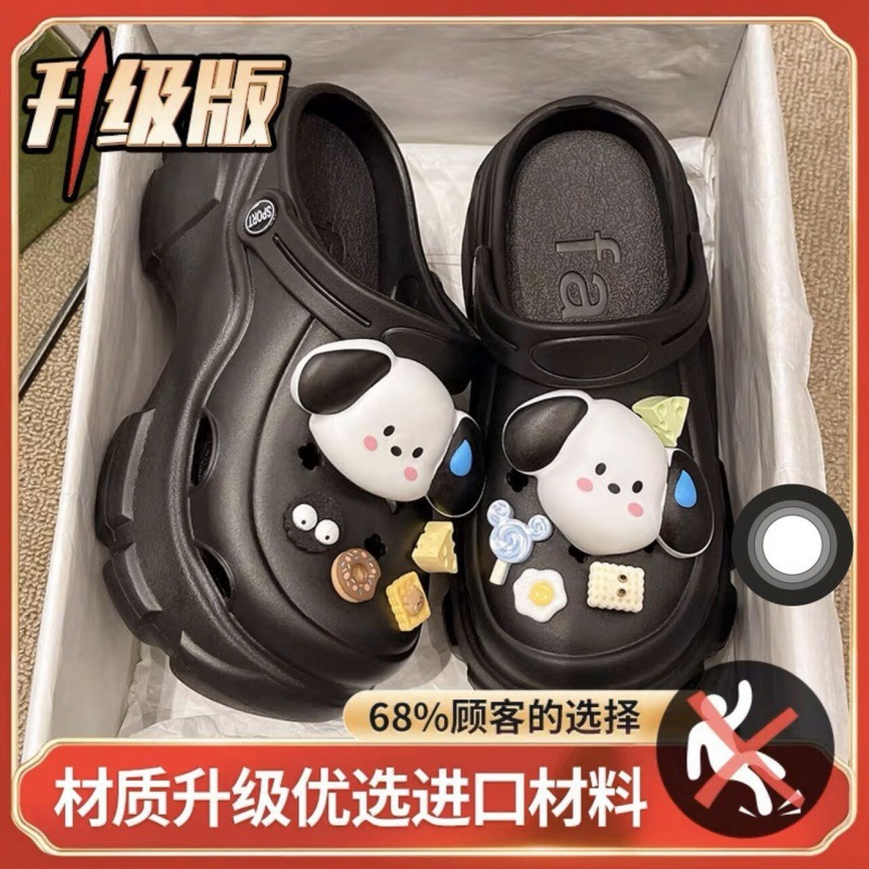 可爱厚底洞洞鞋女夏季新款增高防滑包头沙滩外穿凉拖鞋平底