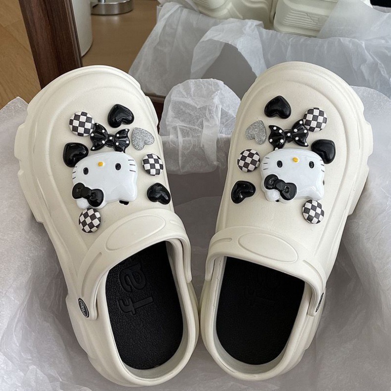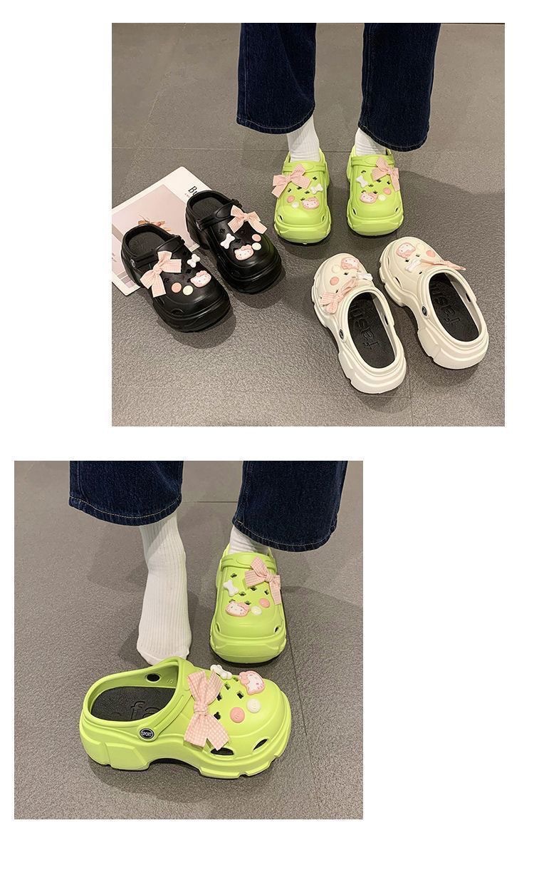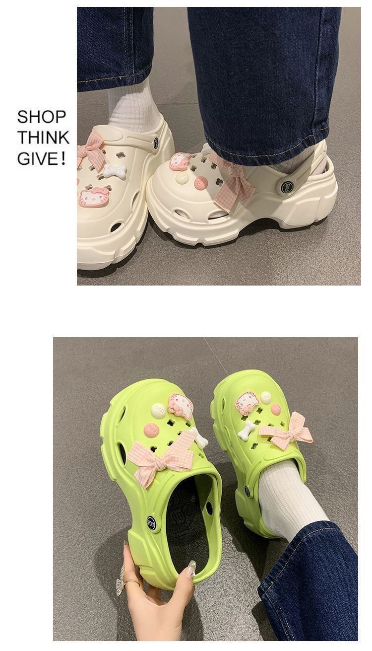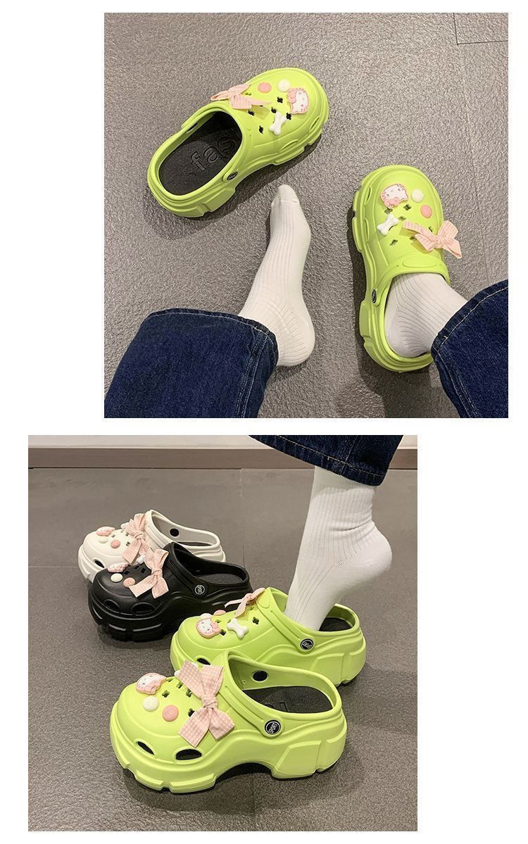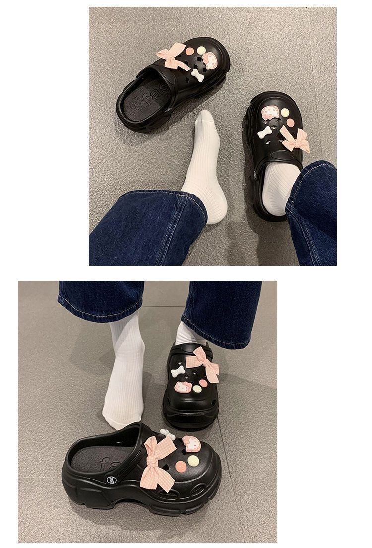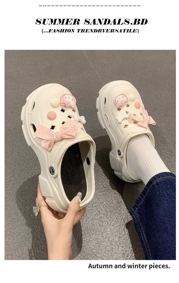 可爱厚底洞洞鞋女夏季新款增高防滑包头沙滩外穿凉拖鞋平底