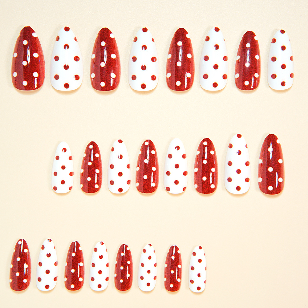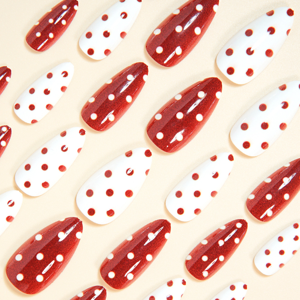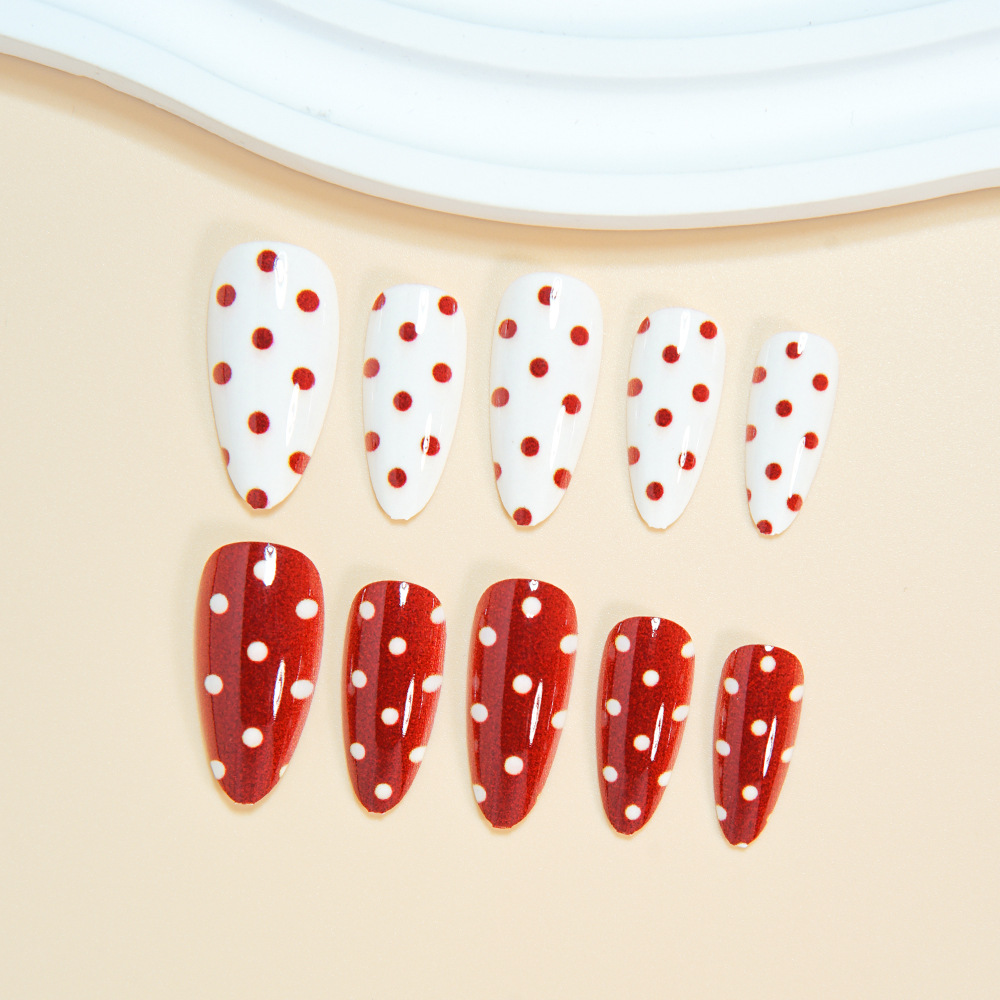 跨境热销杏仁甲红色波尔卡圆点穿戴式假指甲热销美甲穿戴甲甲片