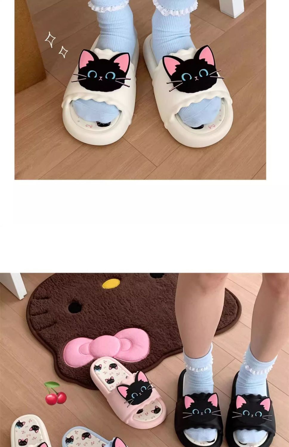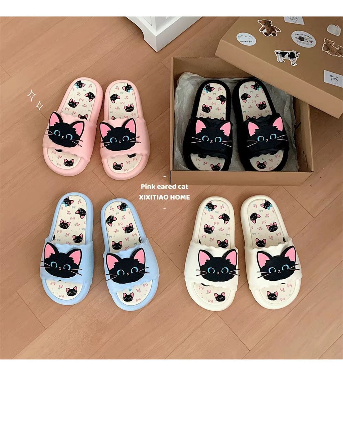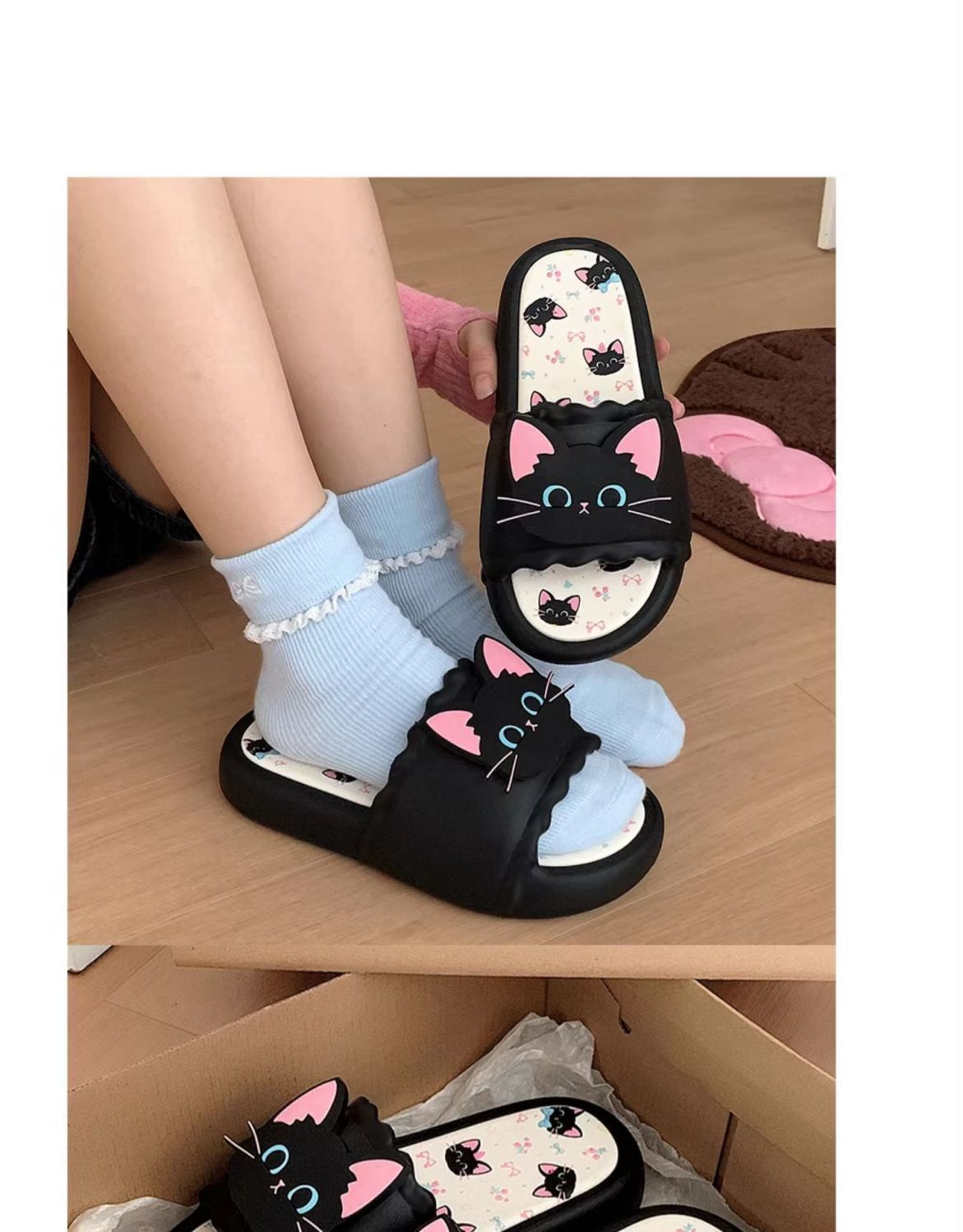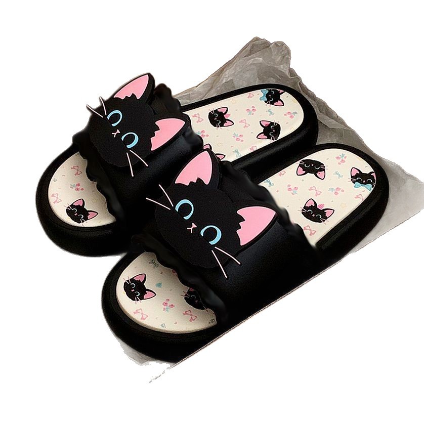 网红可爱甜酷小黑猫拖鞋女夏季外穿小众软底居家防滑寝室内一字拖
