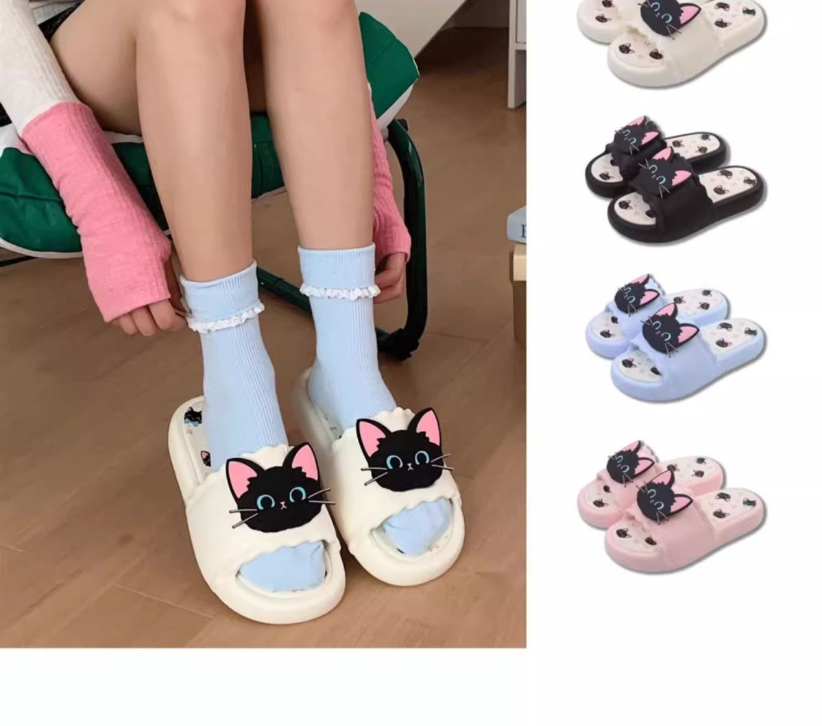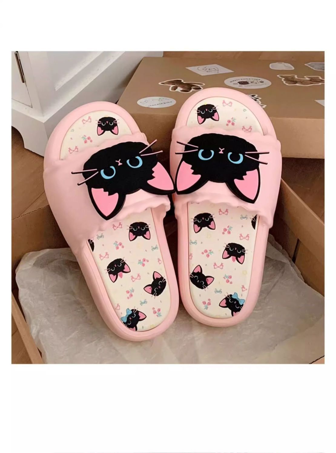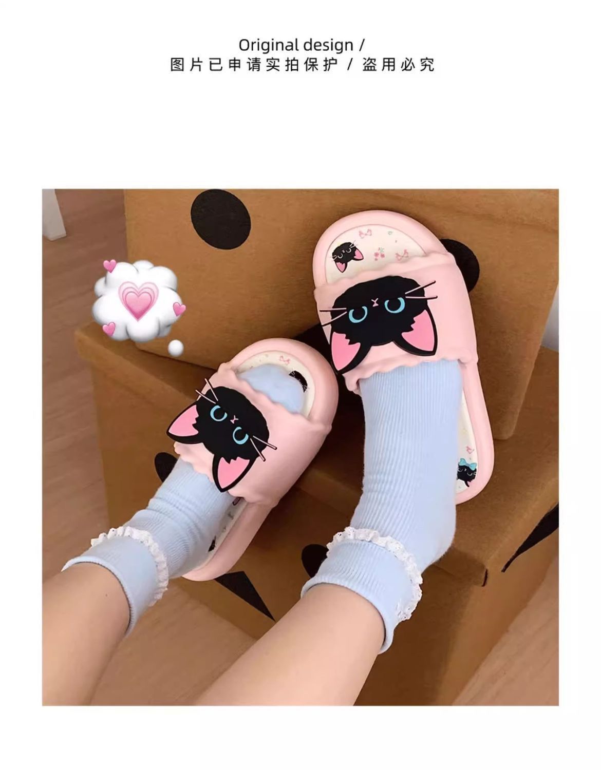 网红可爱甜酷小黑猫拖鞋女夏季外穿小众软底居家防滑寝室内一字拖