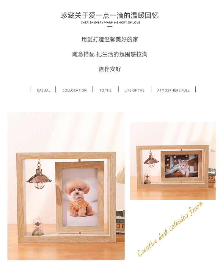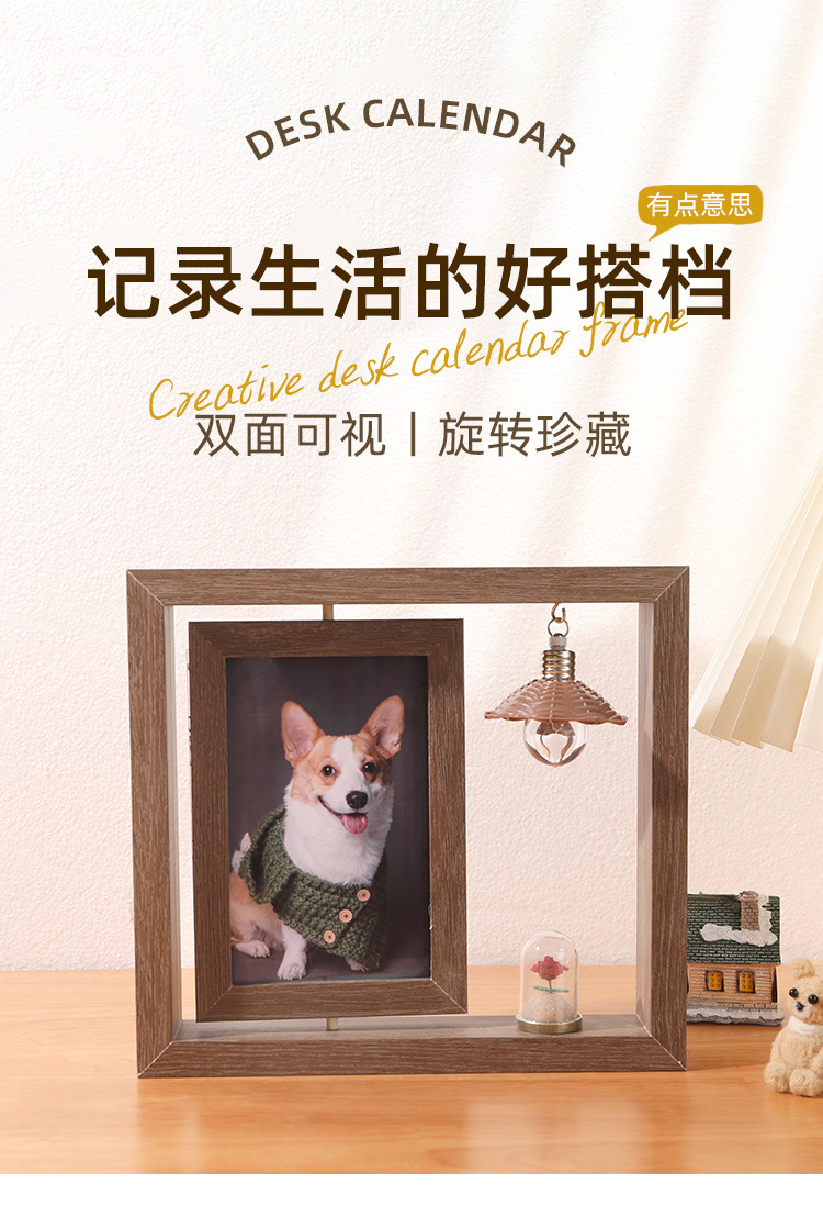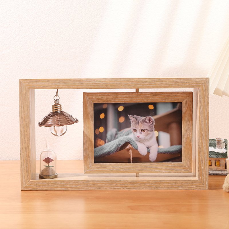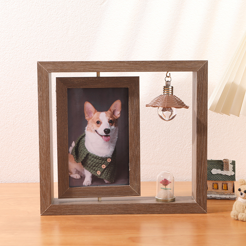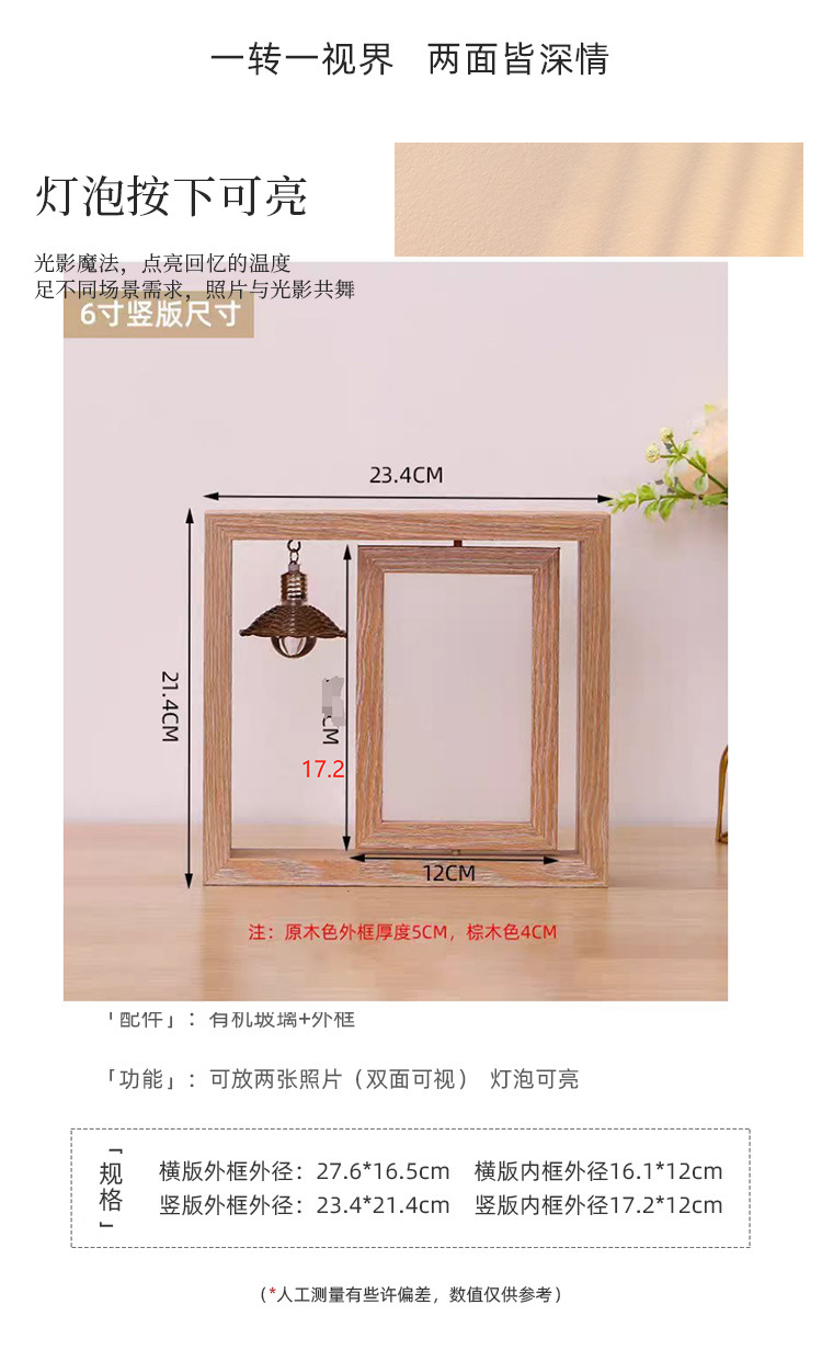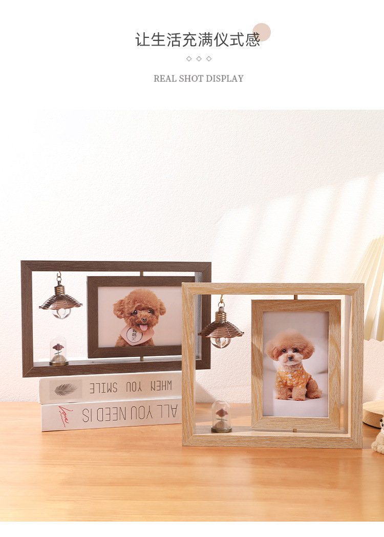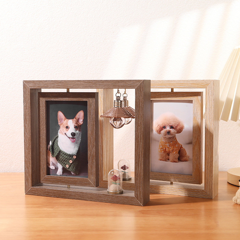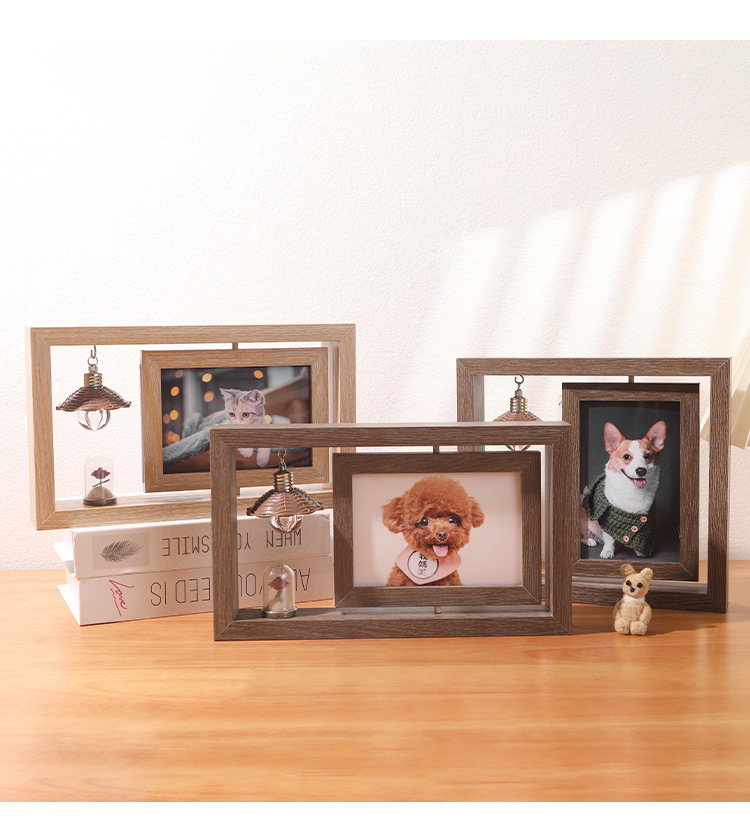 创意6寸双面可视旋转相框批发办公桌面diy复古照片摆台礼品纪念框