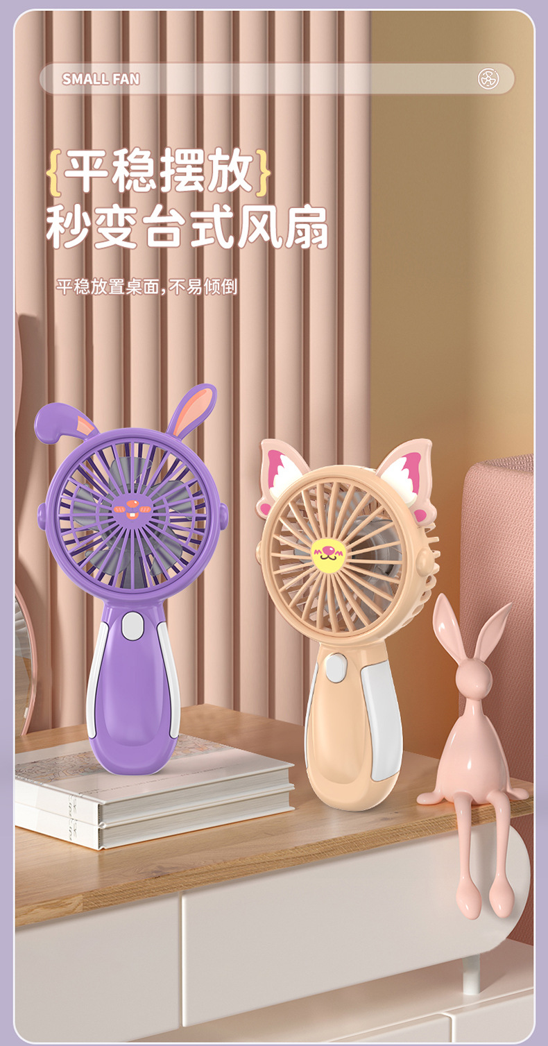 手持卡通风扇夏季家用桌面便携式USB可充电款迷你口袋小风扇批发