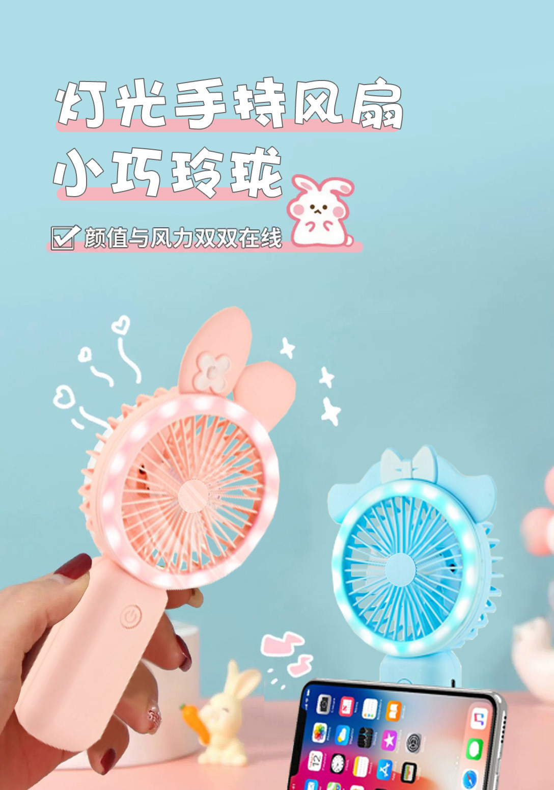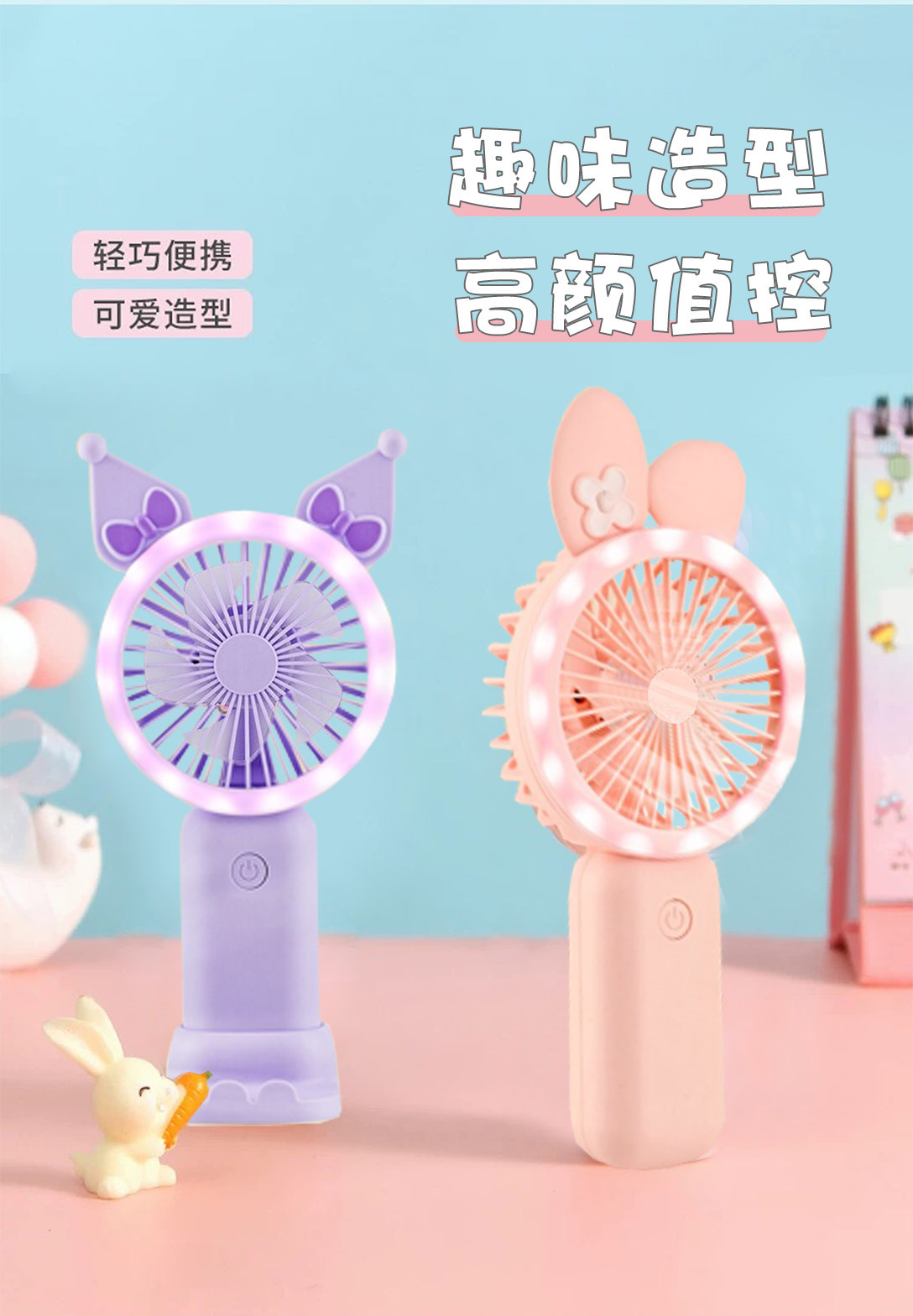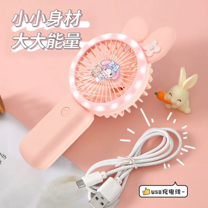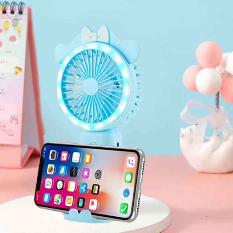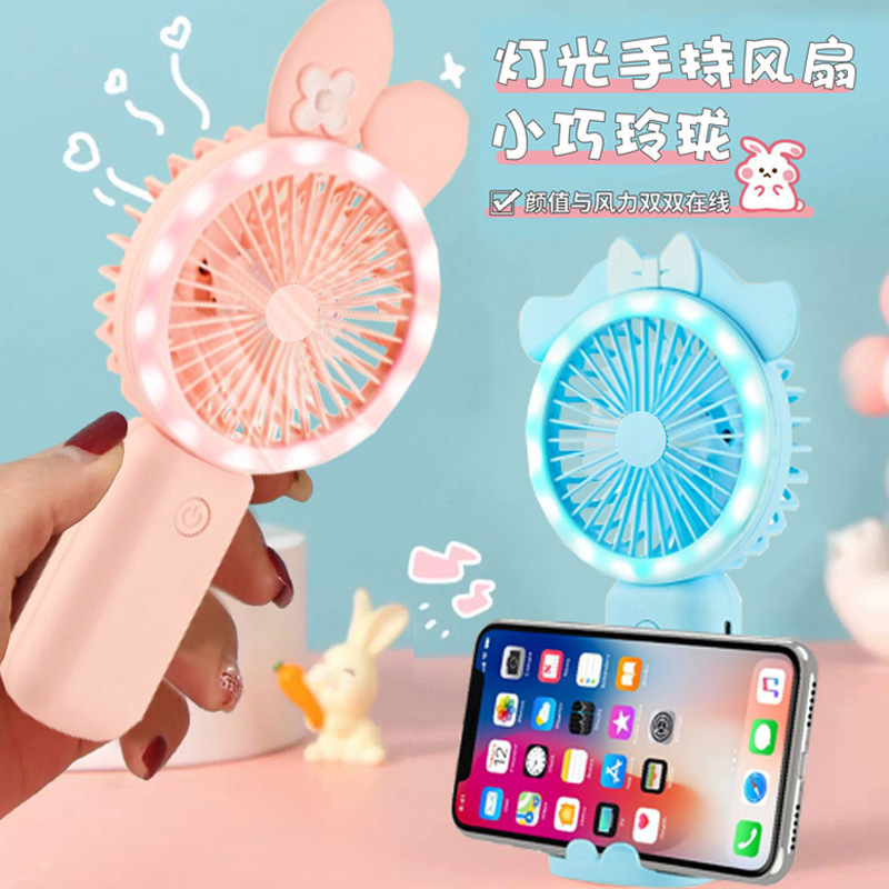 新款可爱手持小风扇usb充电迷你风扇学生便携三档带灯电风扇