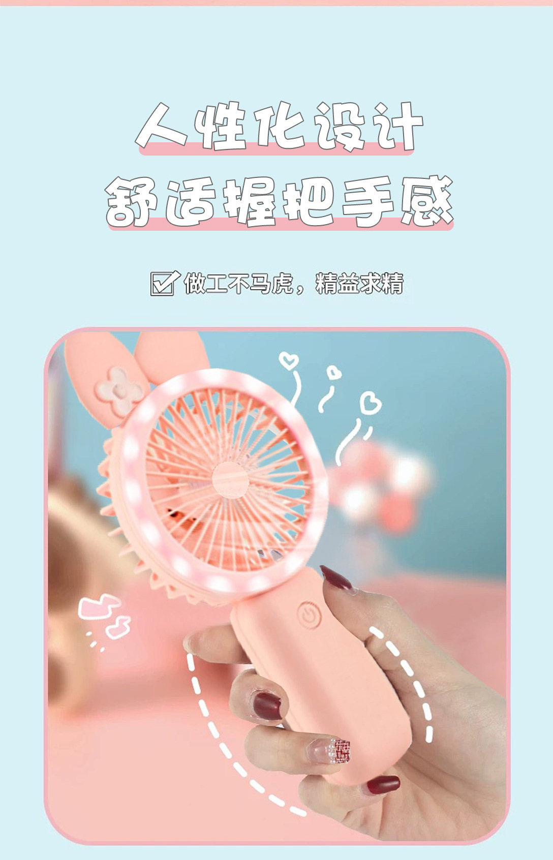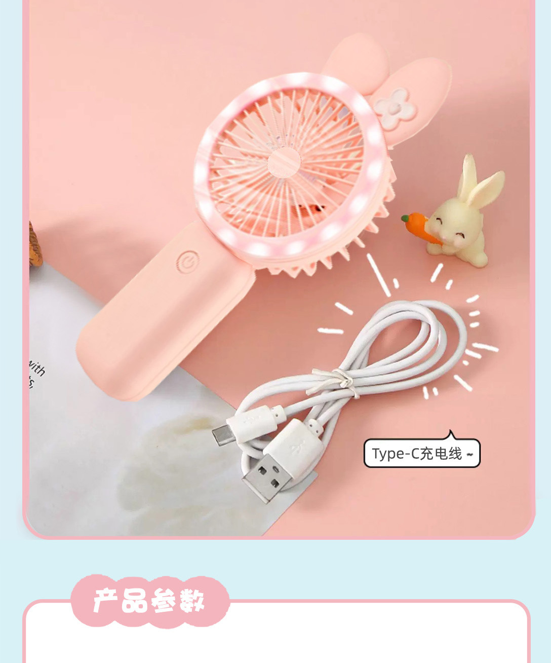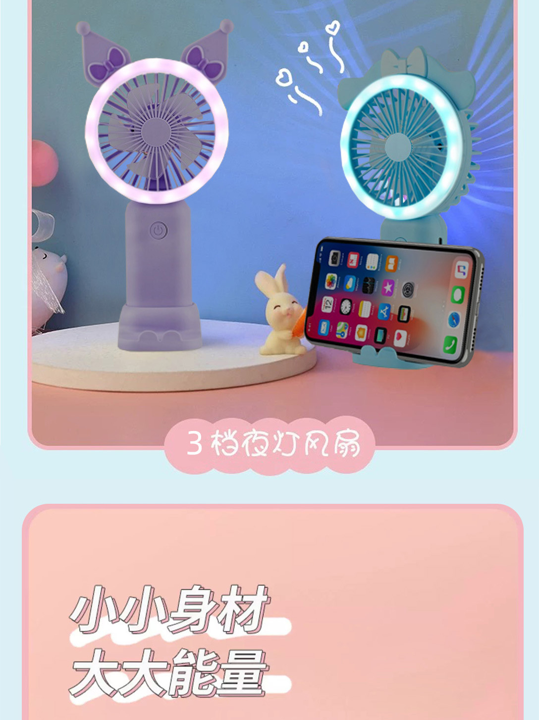 新款可爱手持小风扇usb充电迷你风扇学生便携三档带灯电风扇