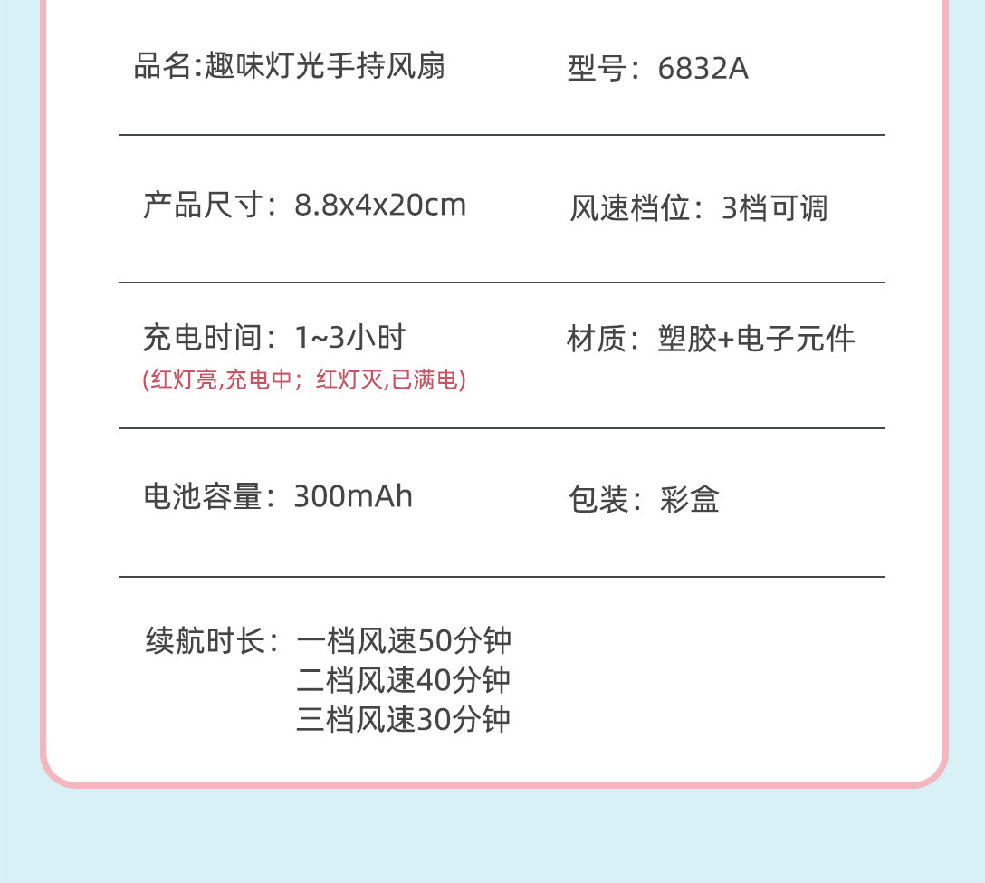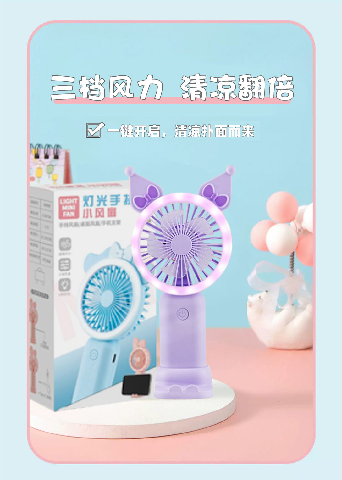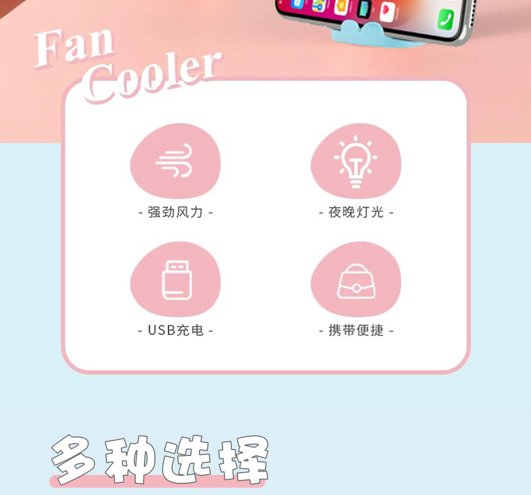 | 灯光+手持+手机支架+3档风速 | USD $1.77 | 49996 piece available |