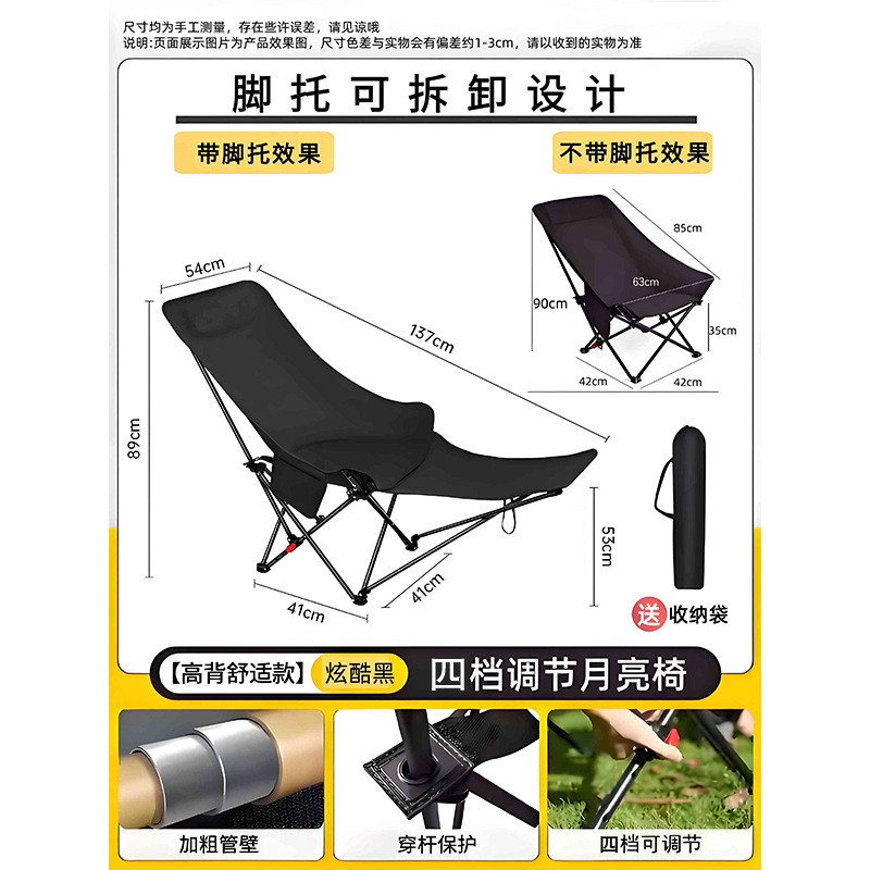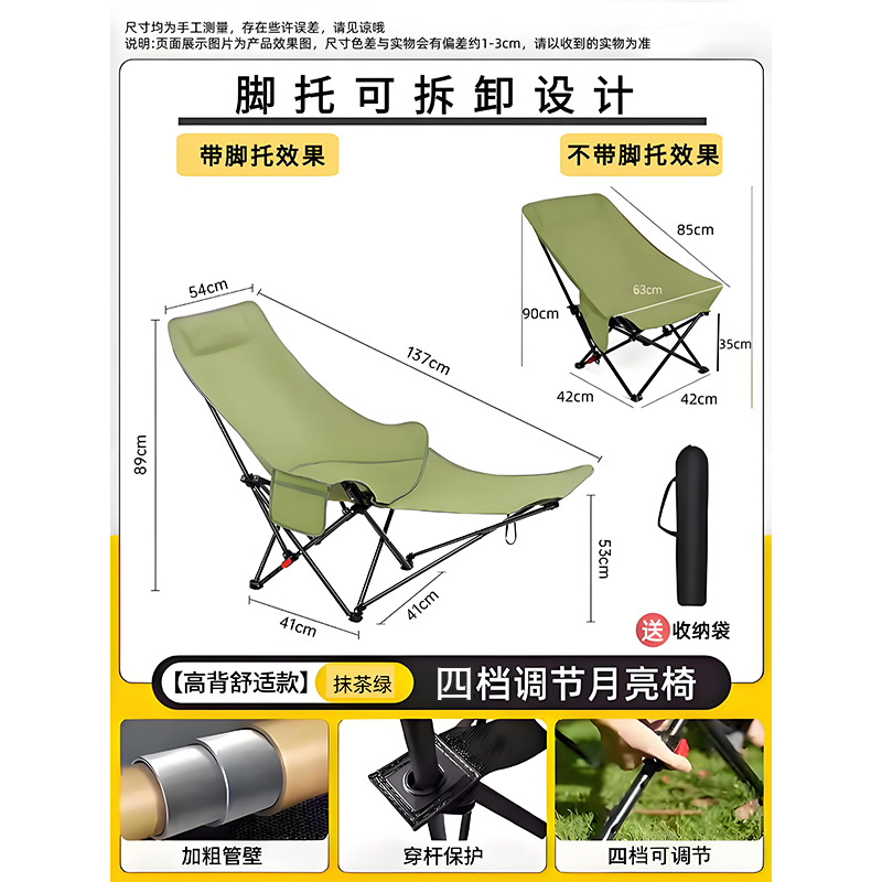 户外多档可调节折叠躺椅午休带腿托躺椅便携折叠椅露营钓鱼沙滩椅