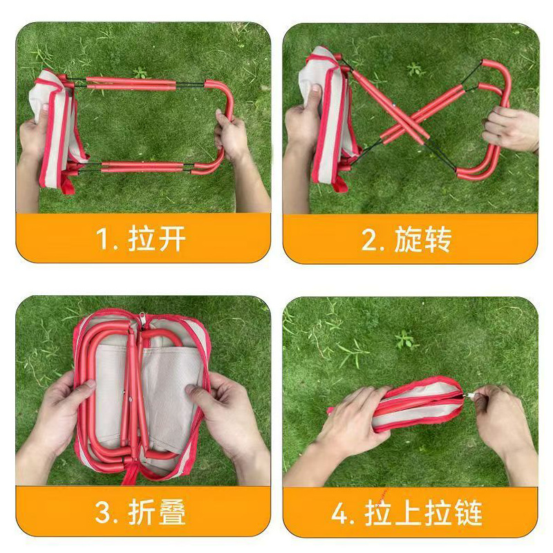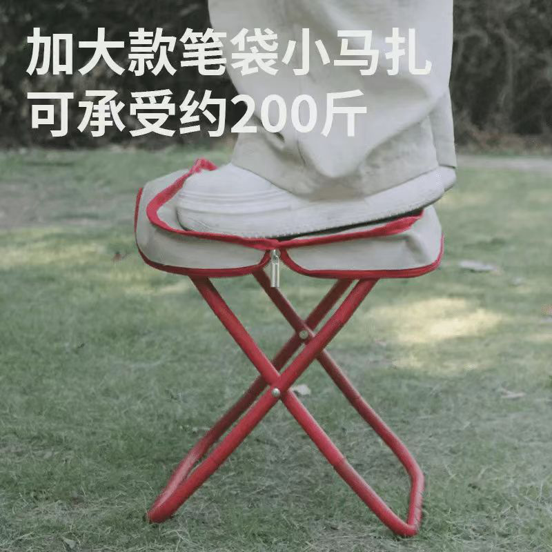 红色折叠小马扎手包折叠椅户外野餐露营加厚多功能凳子排队折叠凳