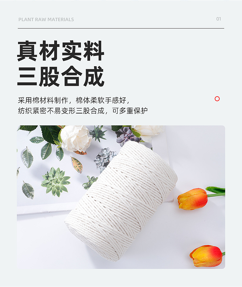 棉线绳三股棉绳手工diy编织材料装饰挂毯绳吊牌粽子捆绑绳束口绳