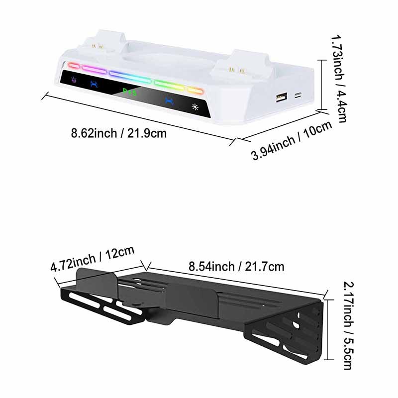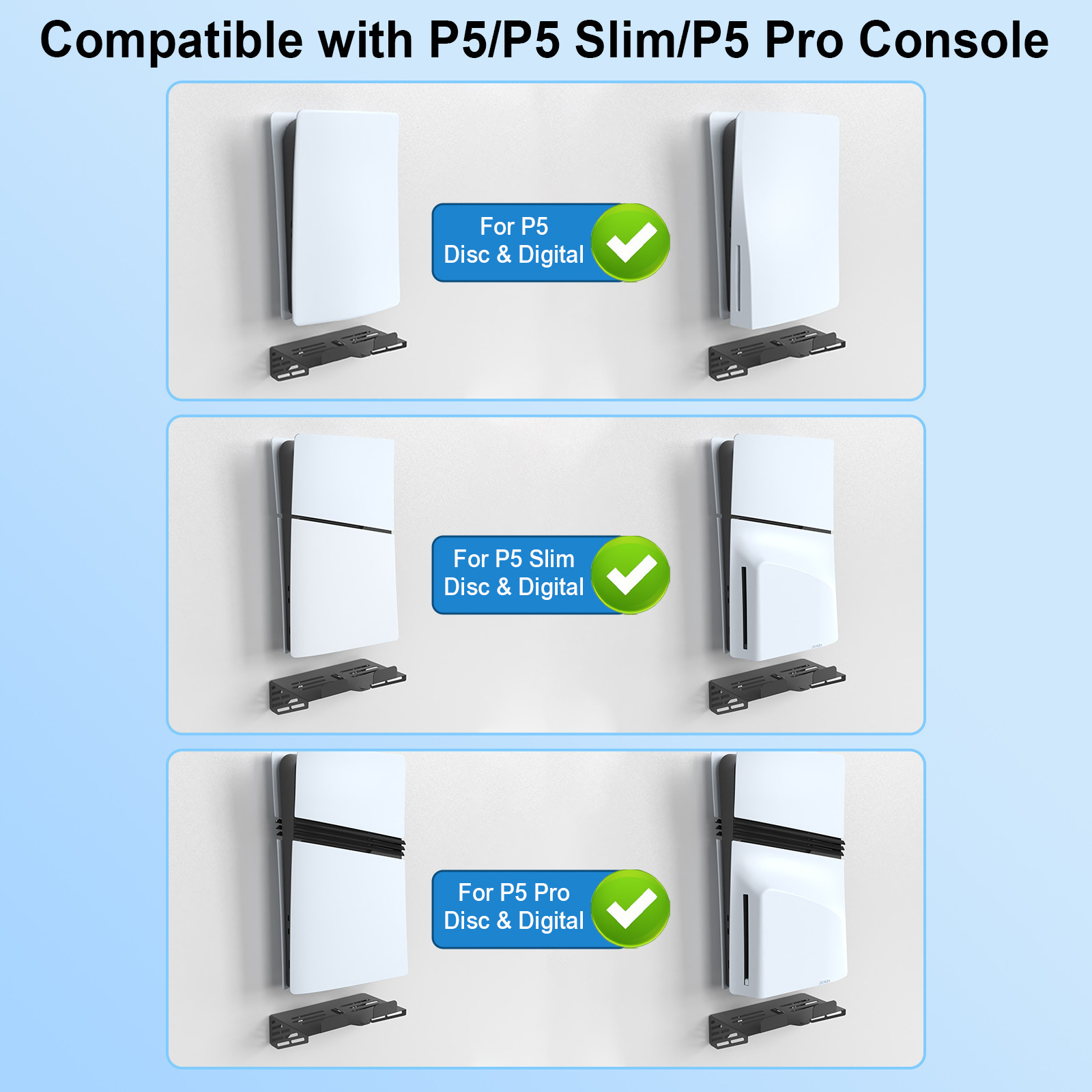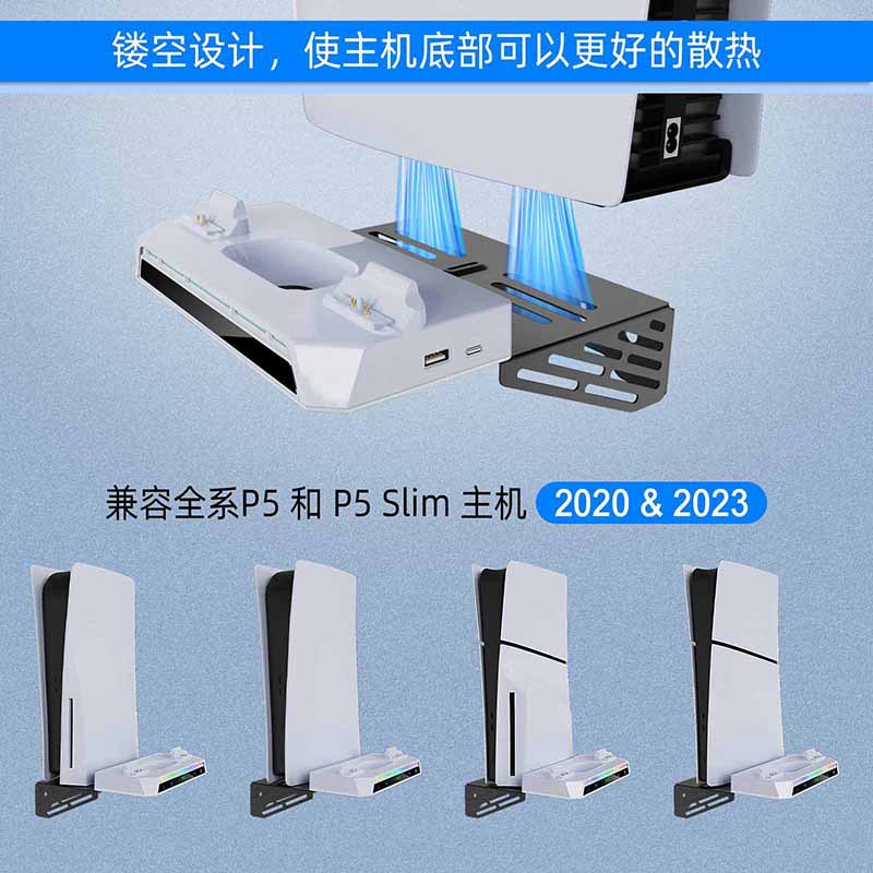 1. 本产品适用于PS5/ PS5 Slim/pro光驱版和数字版主机,可同时收纳一个主机和给两个PS5原装手柄充电