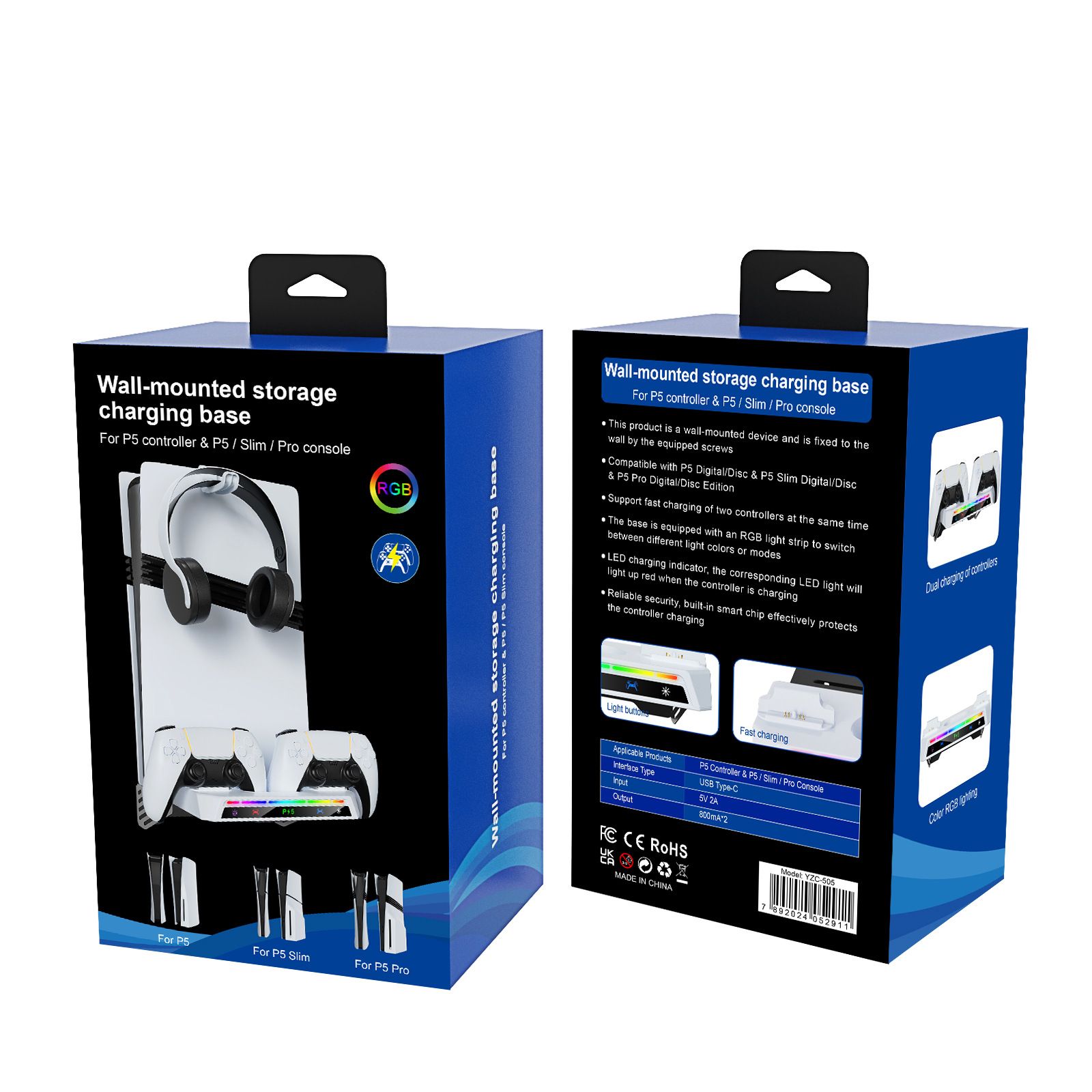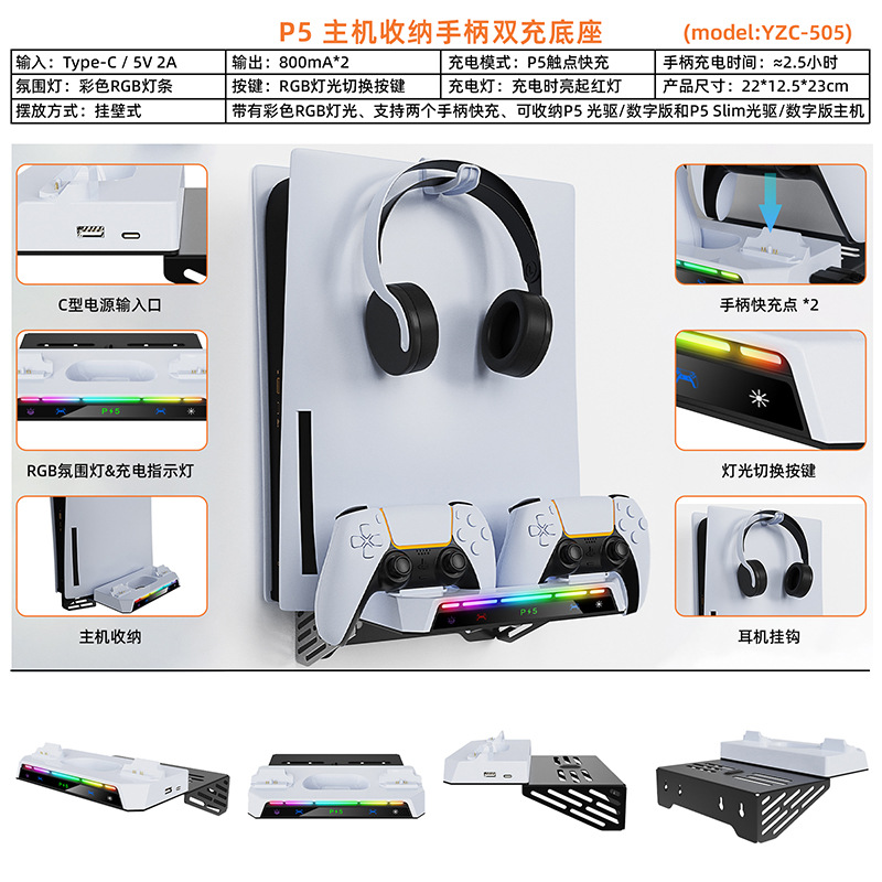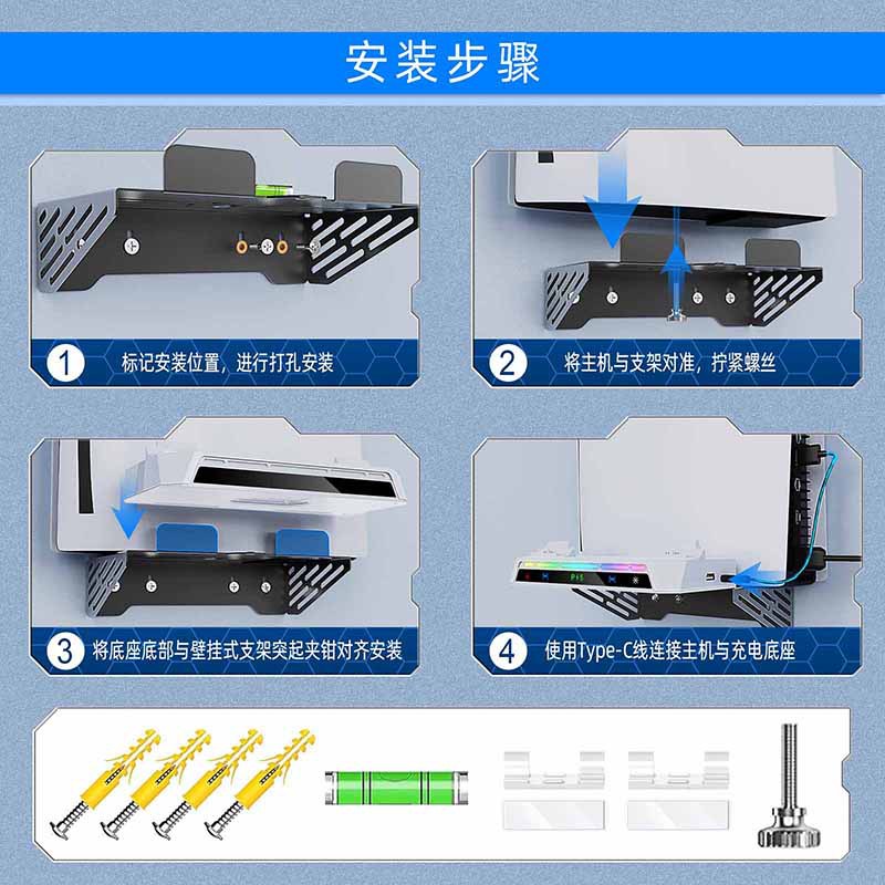PS5主机通用上墙支架精英游戏手柄充电座耳机挂架带RGB 氛围灯