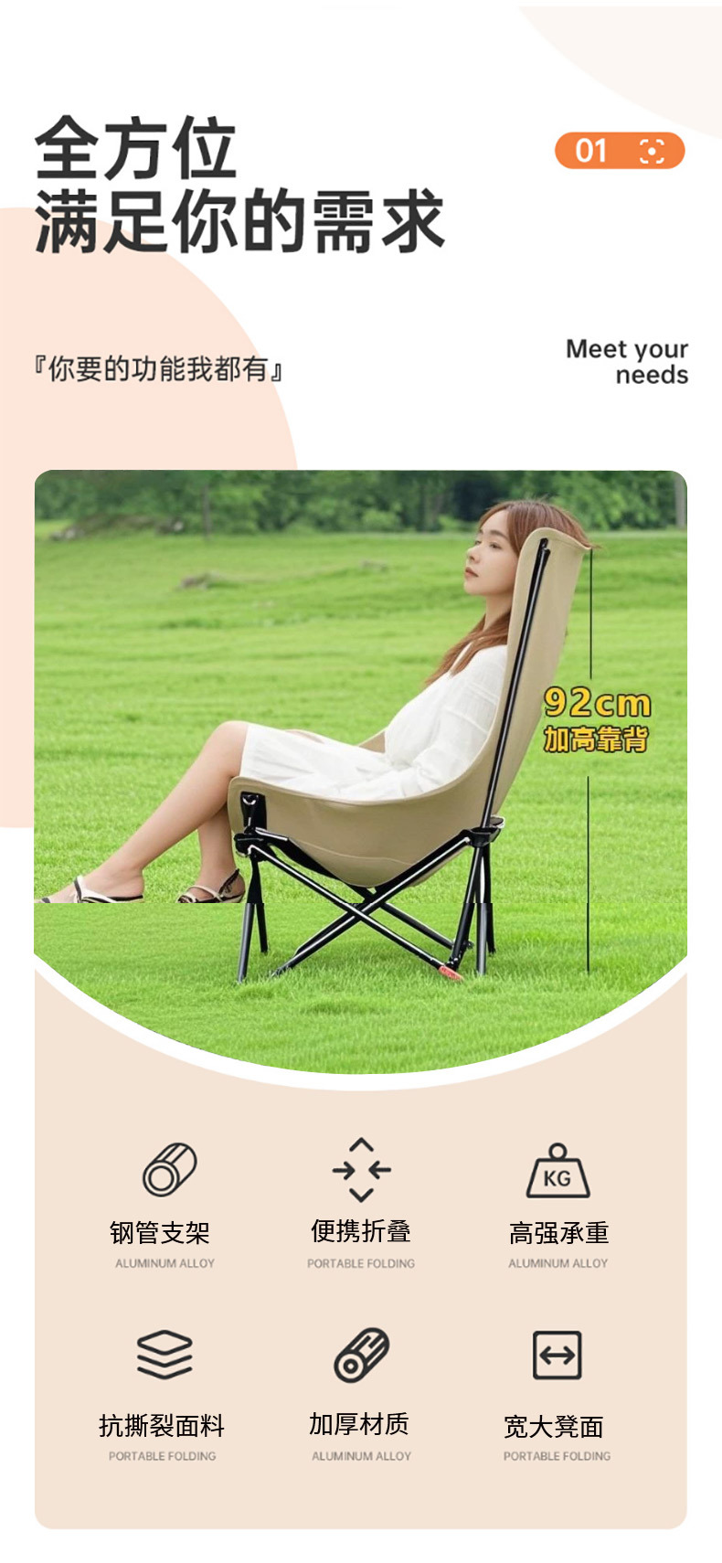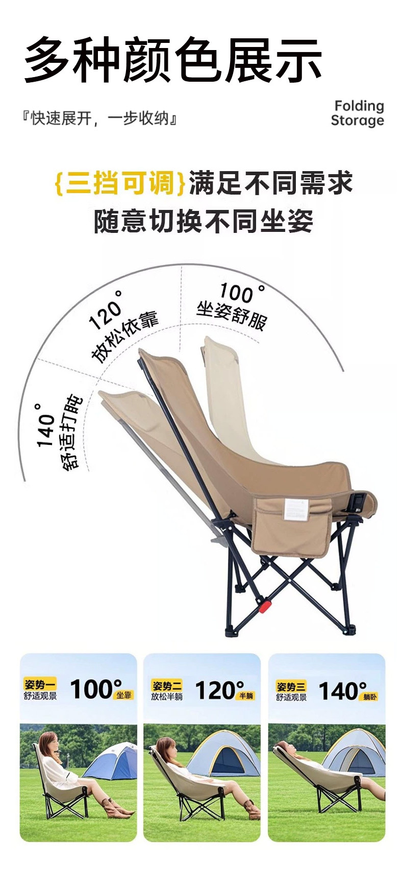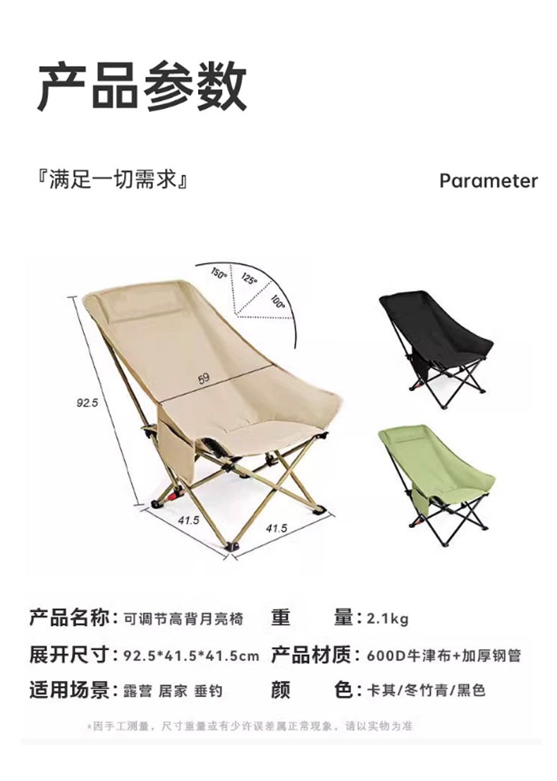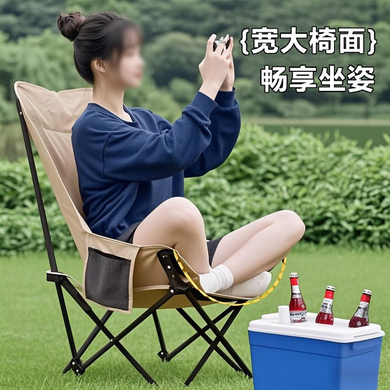户外高背月亮椅可调节折叠露营便携野餐钓鱼沙滩午休摆摊折叠椅子