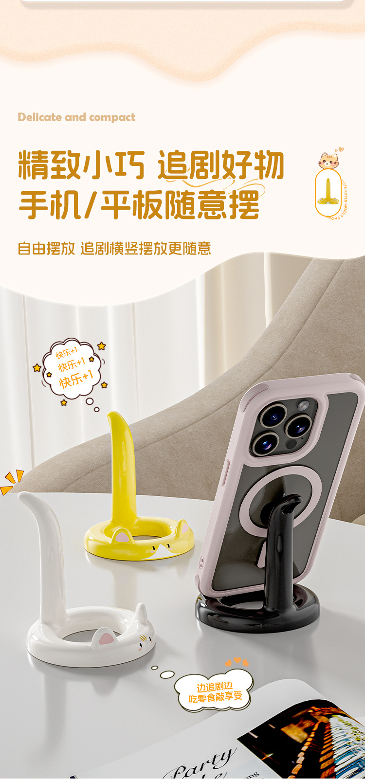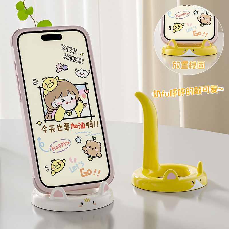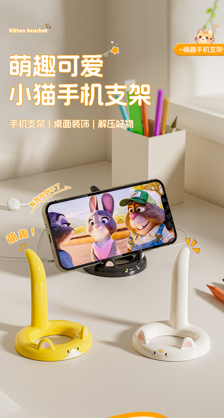 创意小猫手机支架塑料卡通可爱支架吃饭追剧神器可横竖放懒人支架