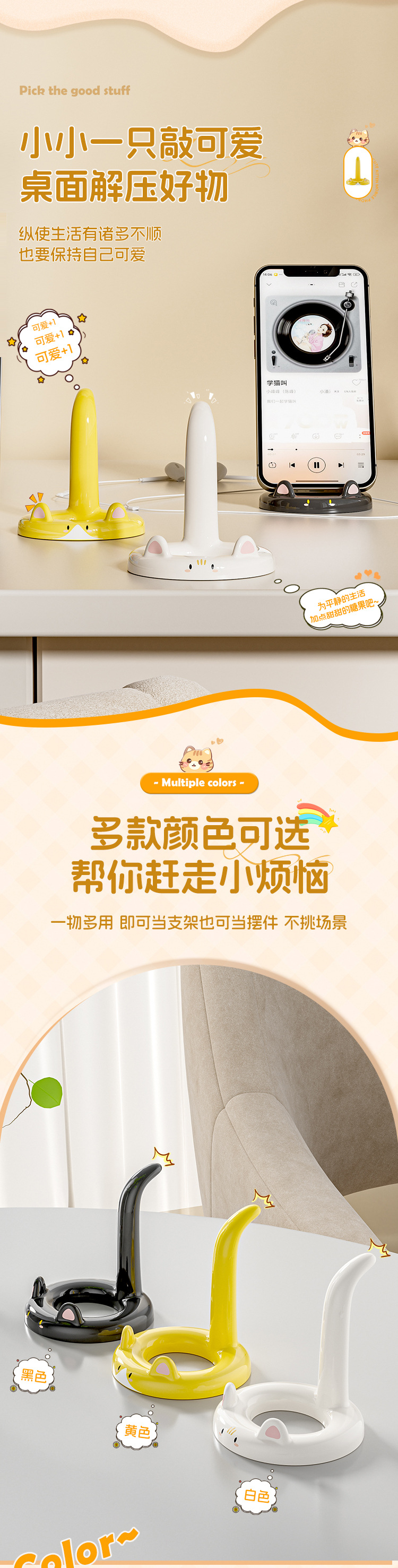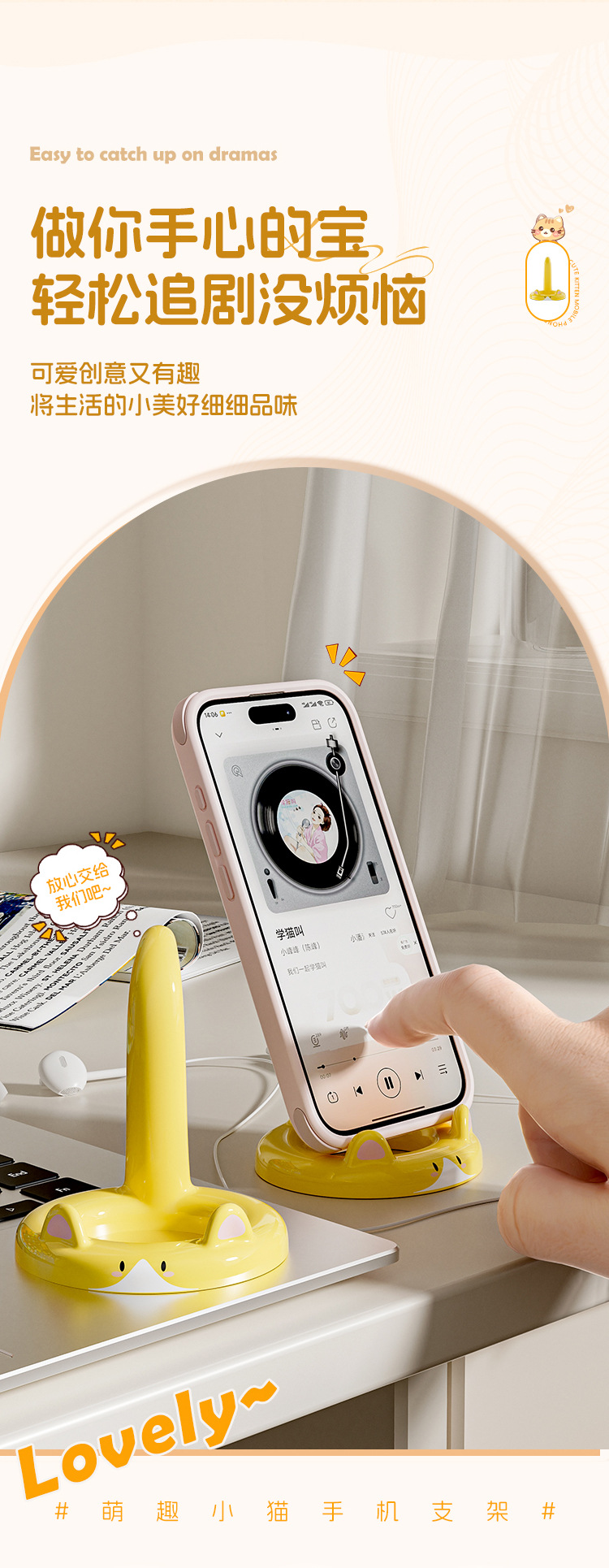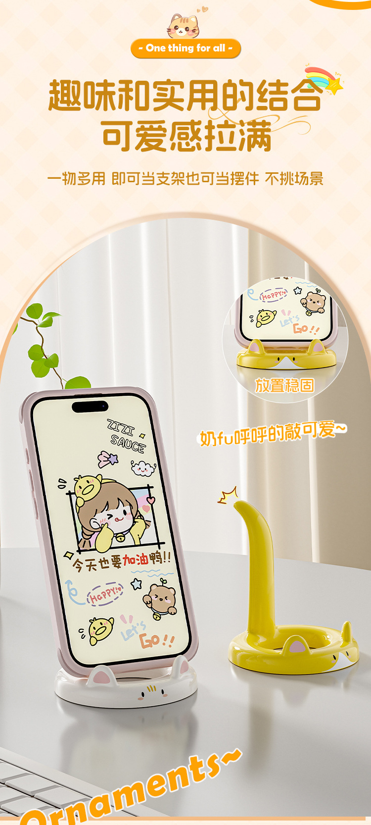 创意小猫手机支架塑料卡通可爱支架吃饭追剧神器可横竖放懒人支架