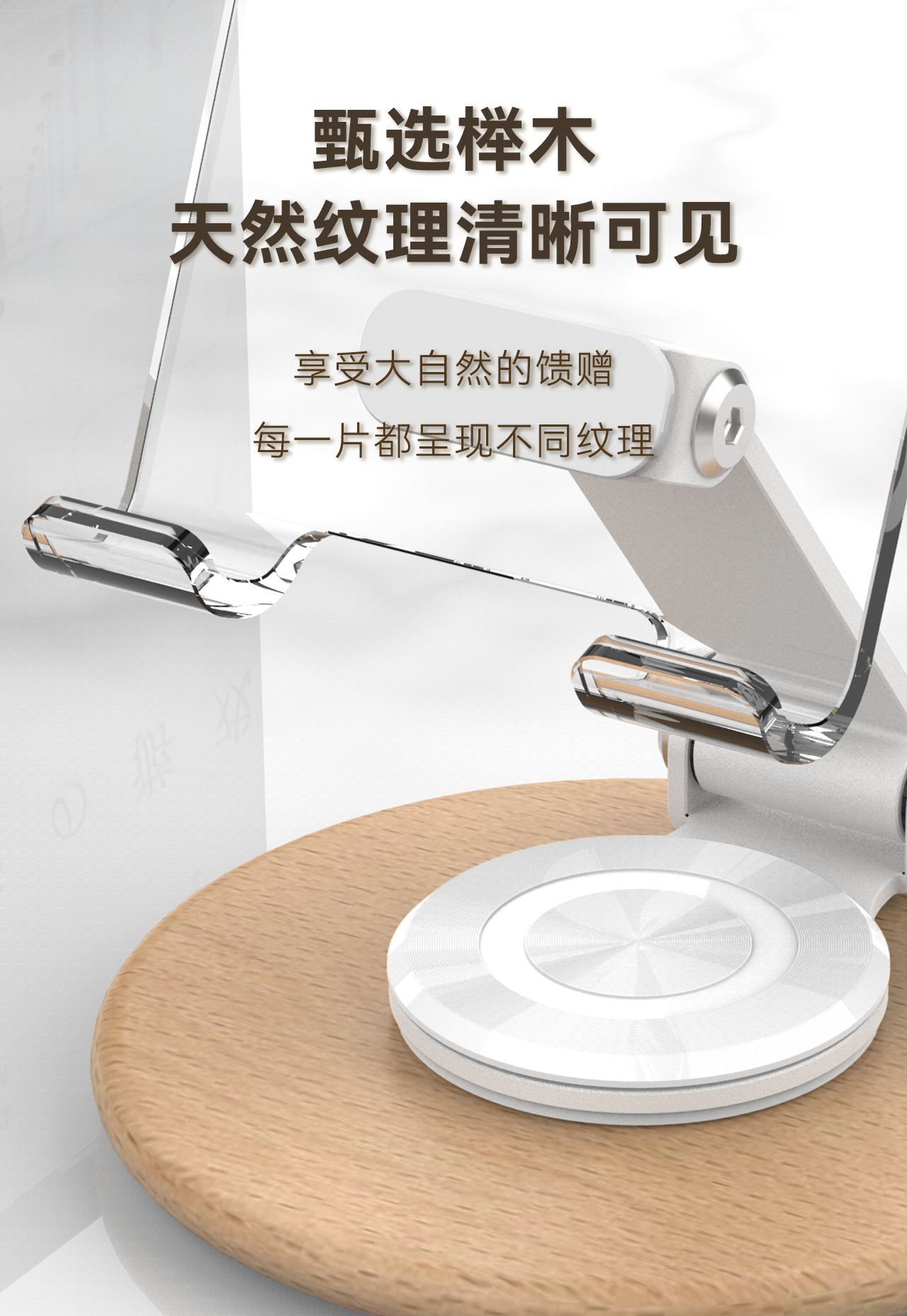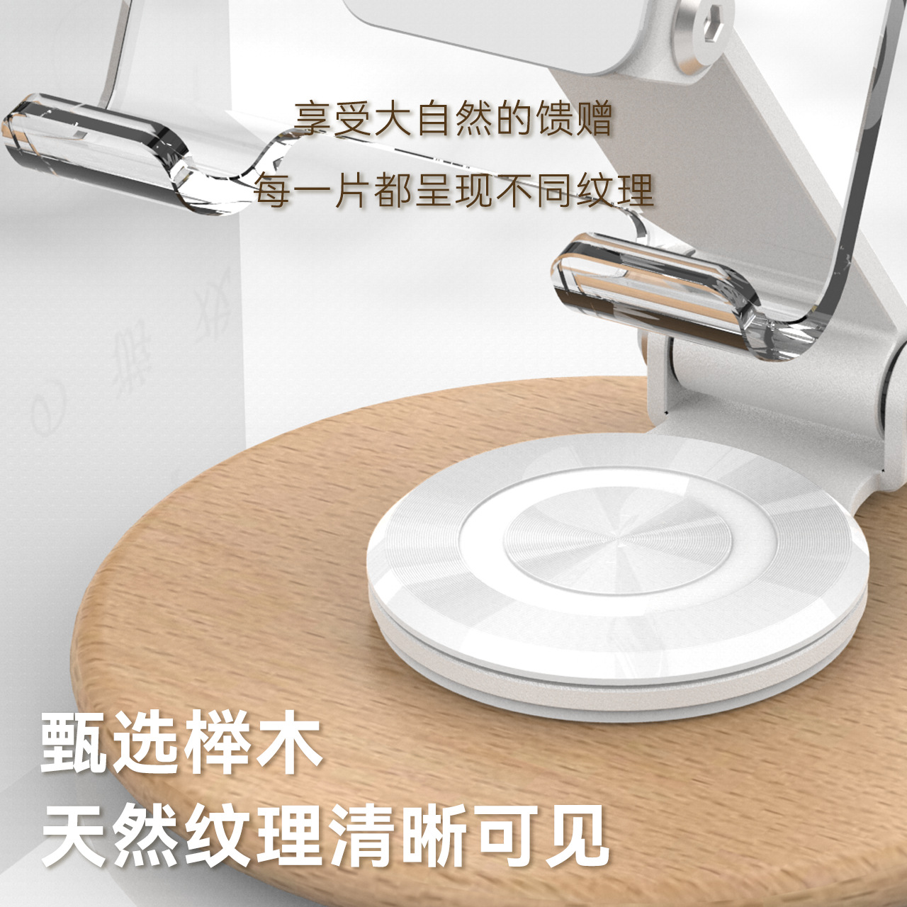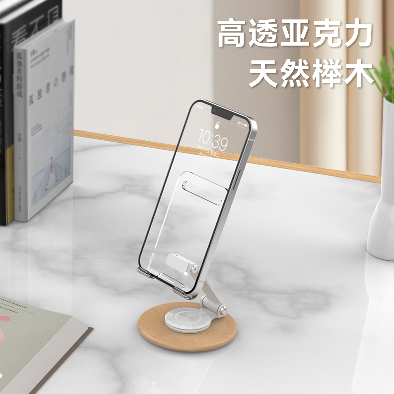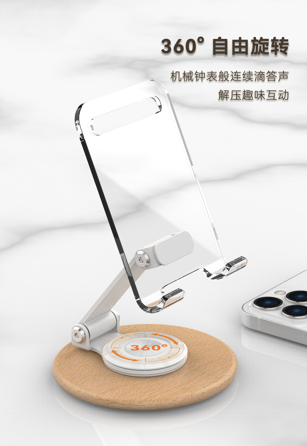 高颜值透明亚克力榉木制作360旋转手机平板支架亚马逊手机支架