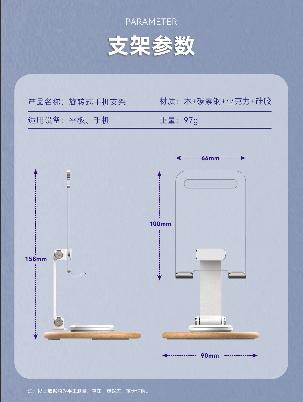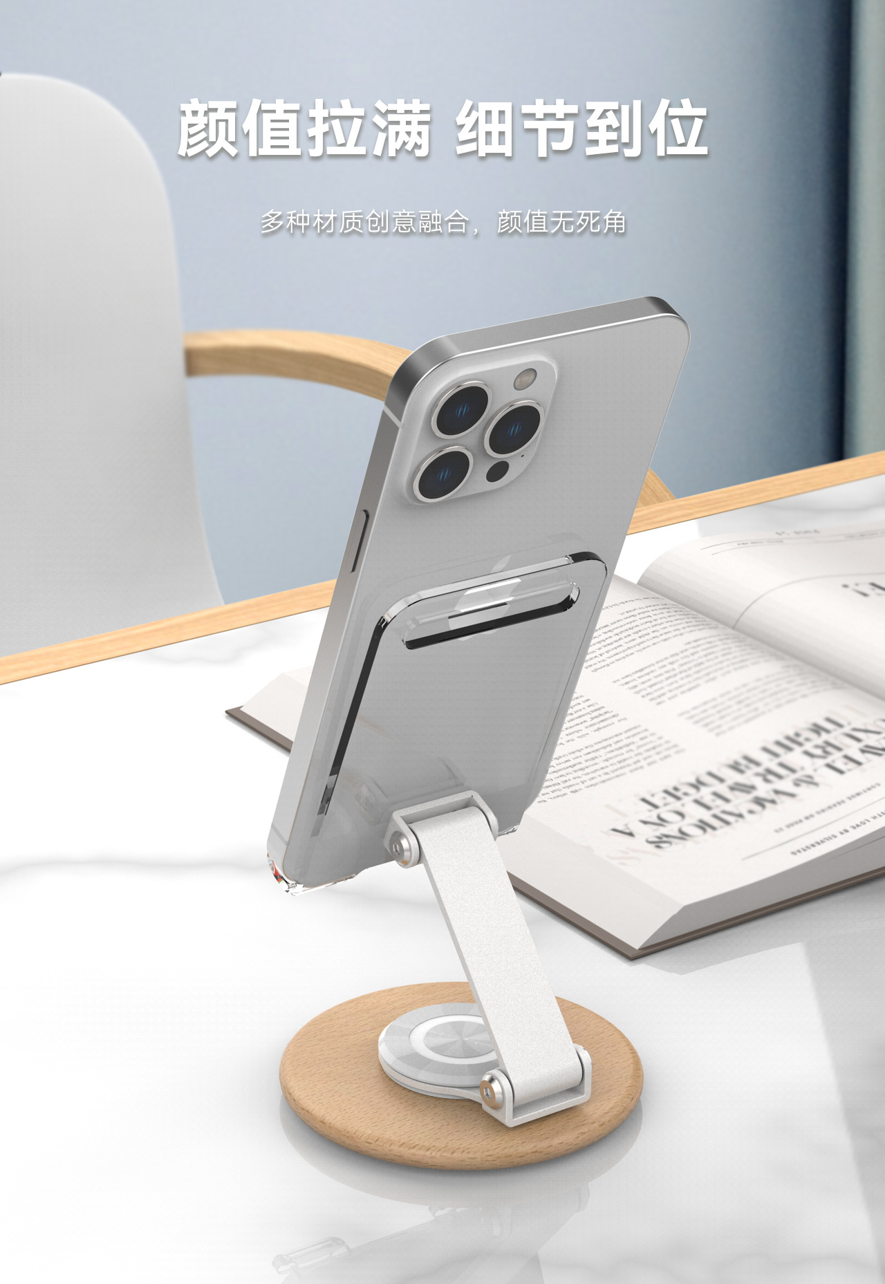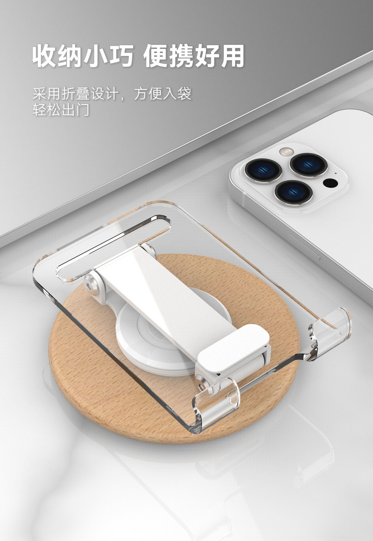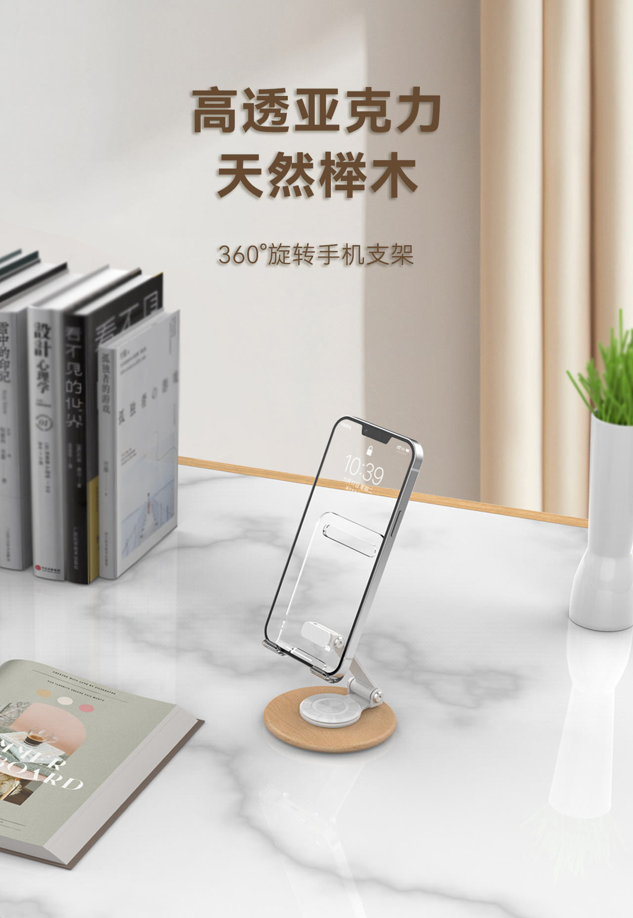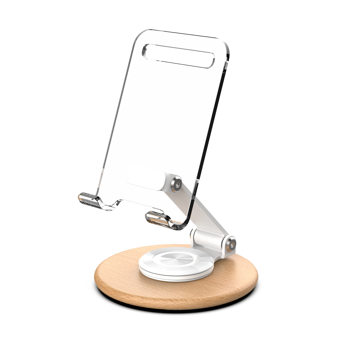 高颜值透明亚克力榉木制作360旋转手机平板支架亚马逊手机支架