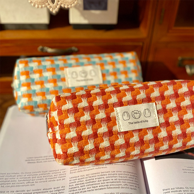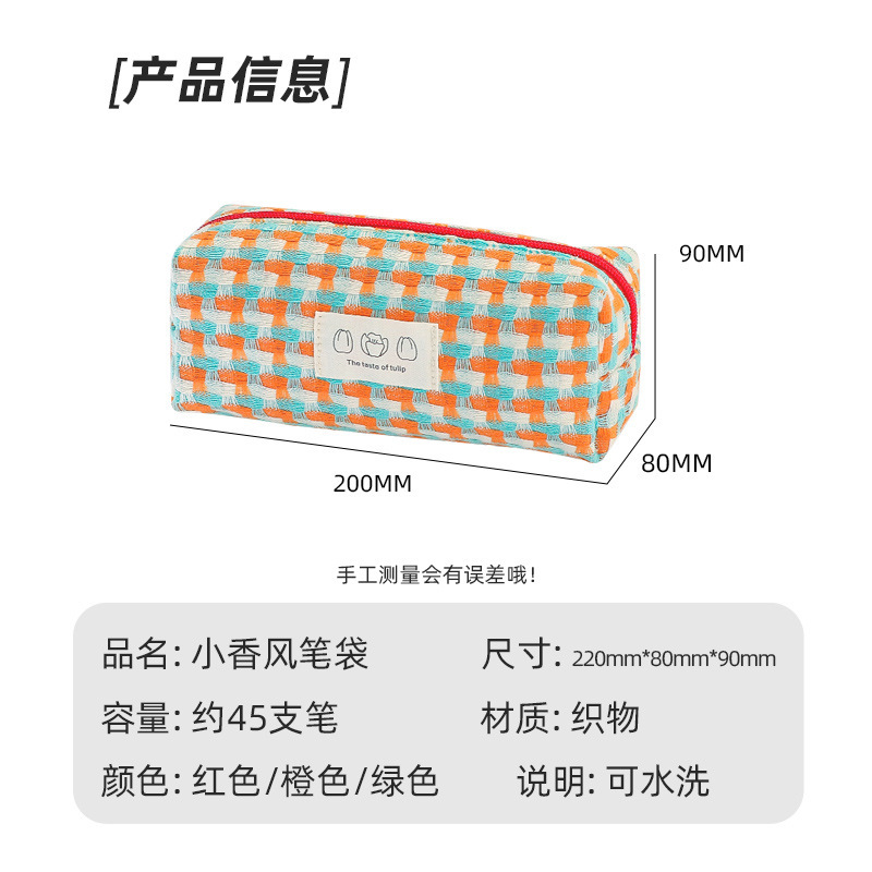 日系ins彩虹编织笔袋简约耐脏大容量文具收纳包学生少女小众笔盒