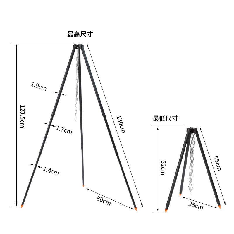户外大号篝火架便携吊锅支架三角架篝火野营用品烧烤架营火三脚架